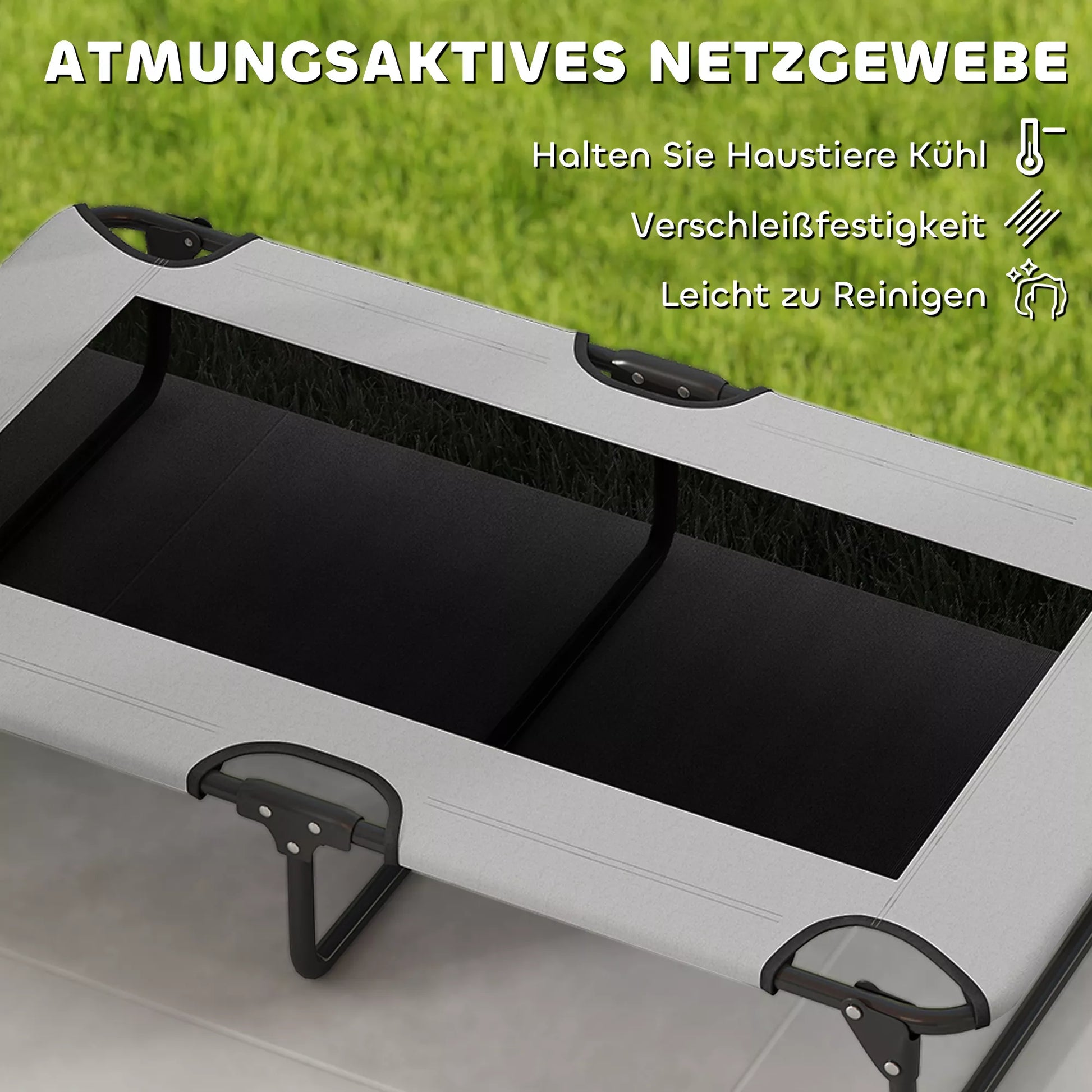 Nešiojama paaukštinta šunų lova, pakeltas naminių gyvūnėlių gultas su kvėpuojančiu tinkleliu, dideliems šunims, šviesiai pilka