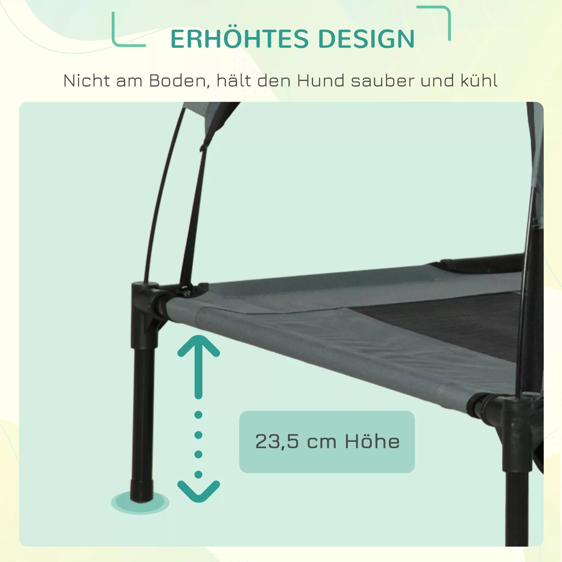 Suteikite savo augintiniui geriausią poilsį su mūsų stilinga augintinio lova, kuria pasirūpinsite jūs! Paaukštinta šunų gulimoji vieta atremta į keturis milteliais dengtus metalinius vamzdžius, aplink kuriuos apjuostas kvėpuojantis tinklinis audinys. Stogelis suteikia jūsų augintiniui malonų pavėsį net ir vasarą, jį galima patogiai pastatyti. Stabili konstrukcija apsaugo nuo siūbavimo ir vertimosi, todėl jūsų mylimas augintinis galės ramiai miegoti.