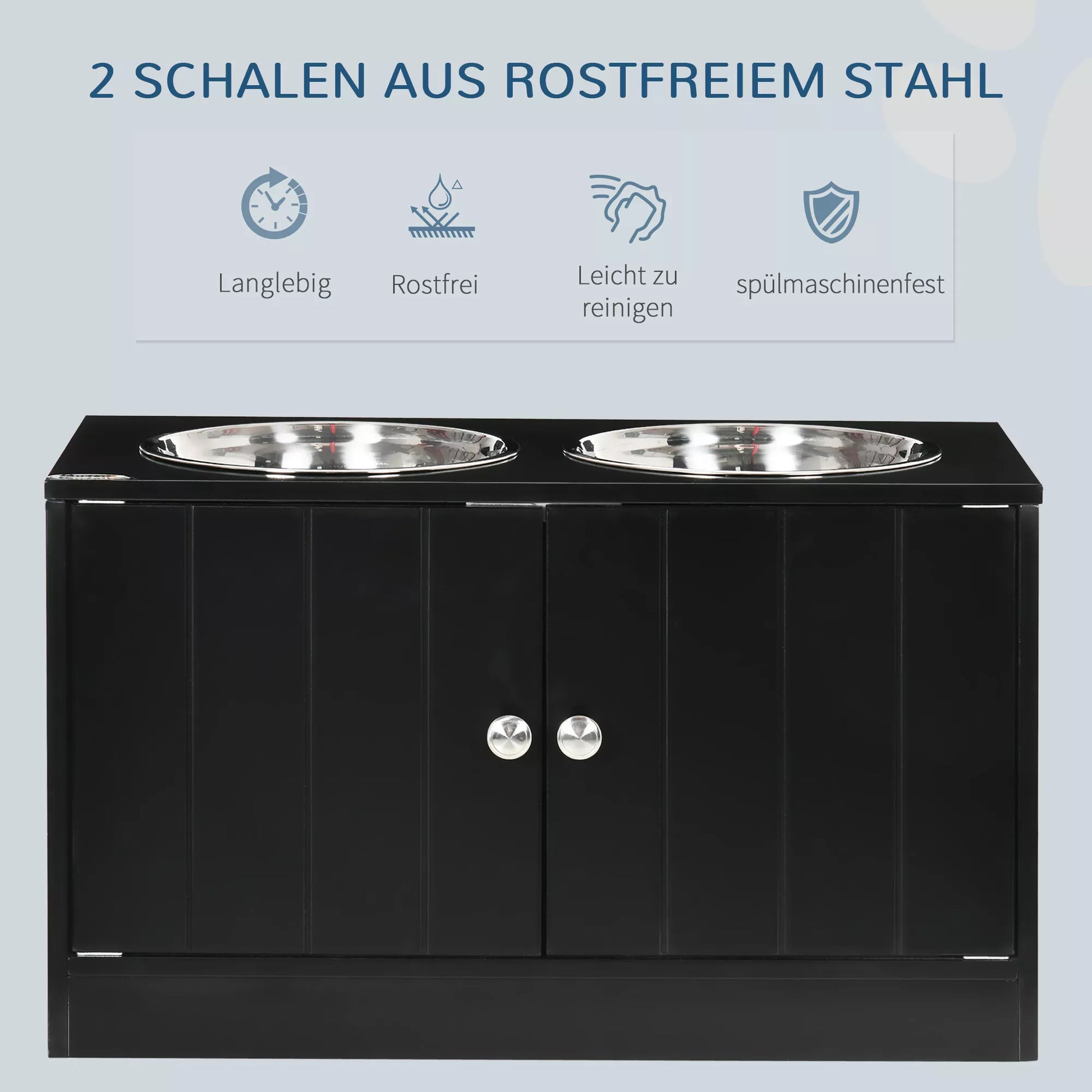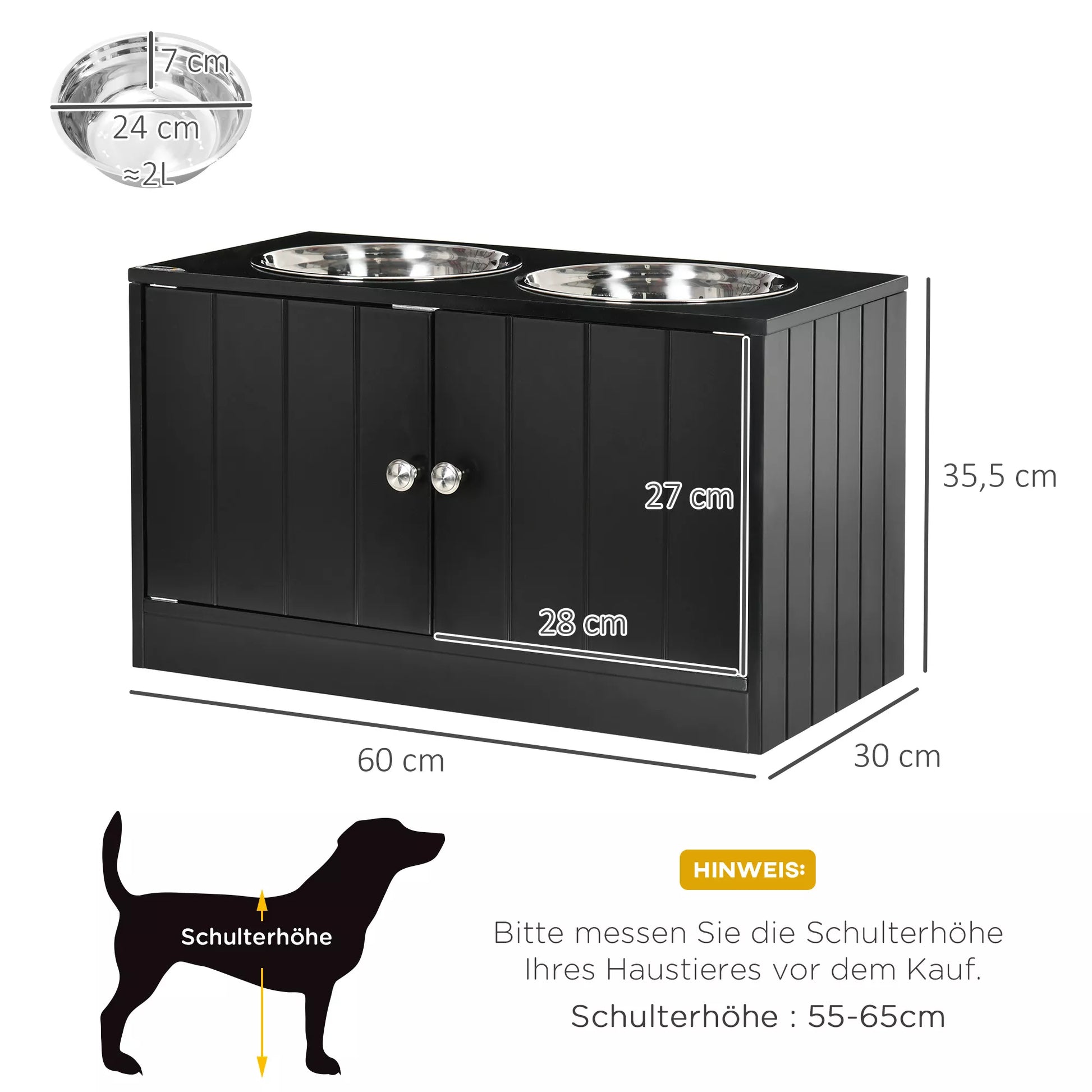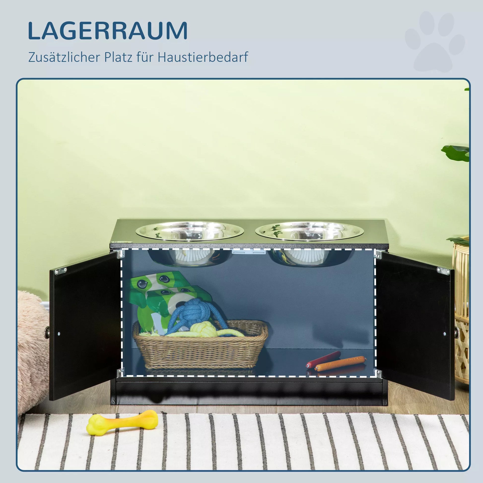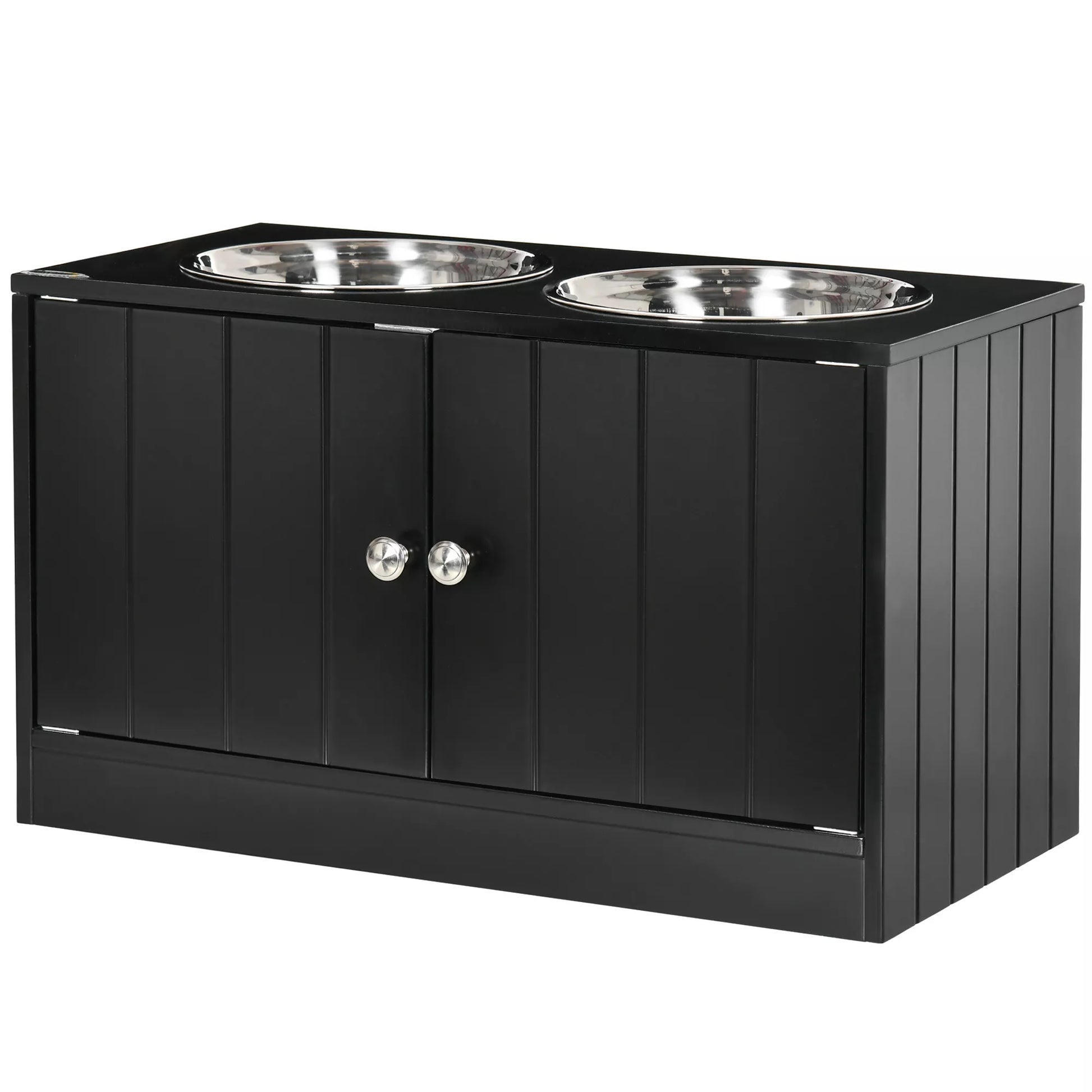 Paaukštinta šėrimo stotis su 2 nerūdijančio plieno dubenėliais ir 44 L talpos daiktadėže, magnetinėmis durelėmis, dideliems šunims, juoda