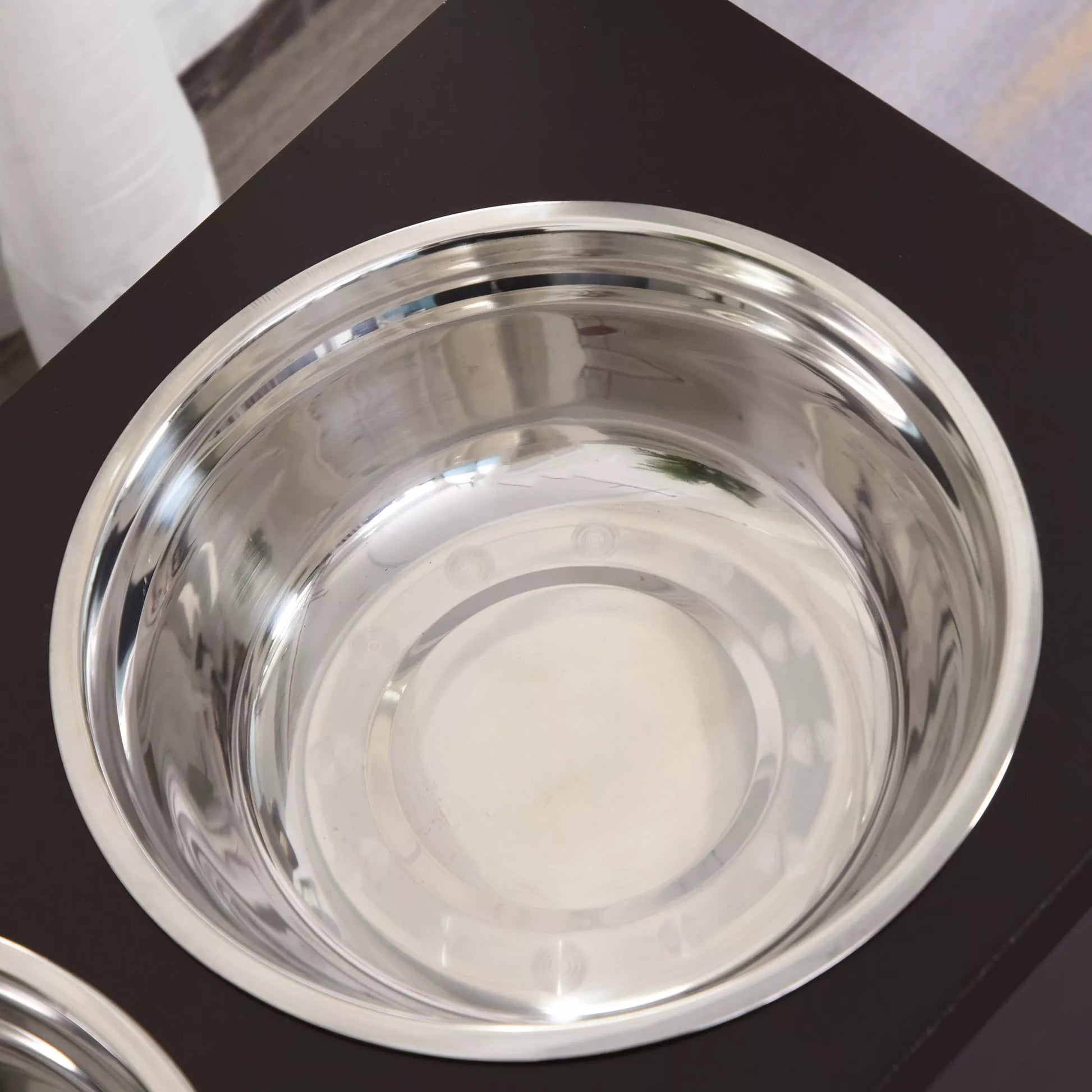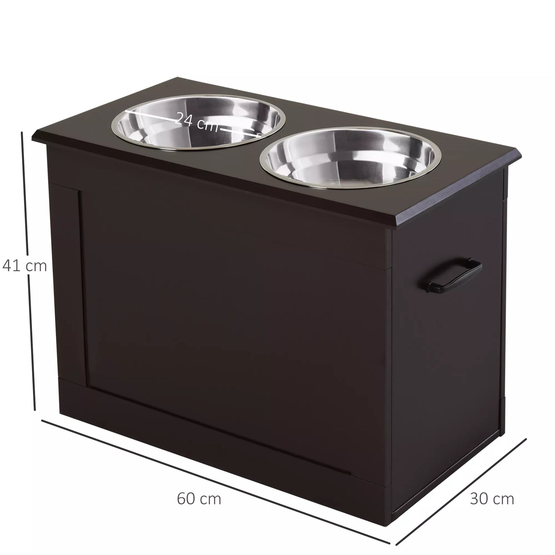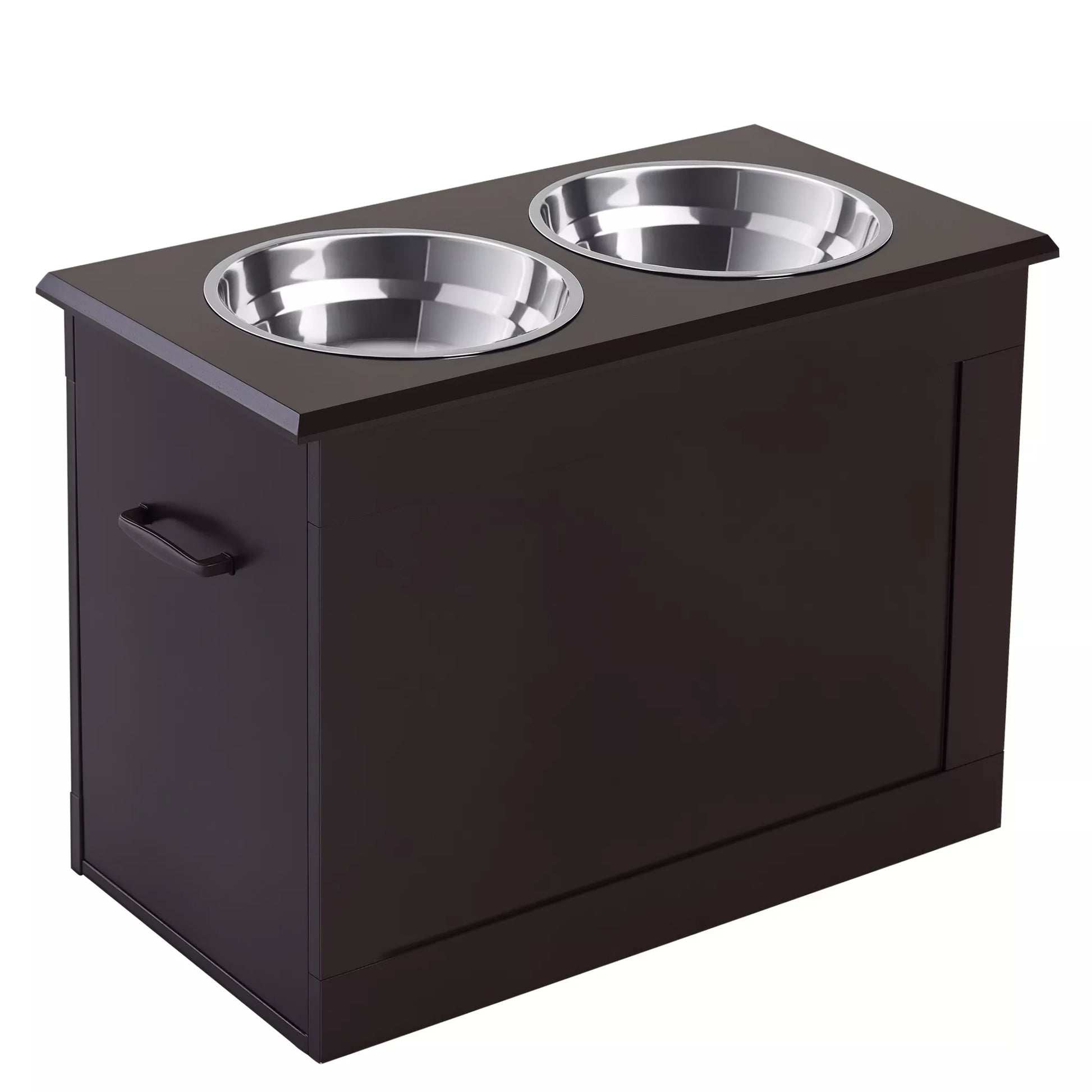 Maitinimo stotelė, 2 nerūdijančio plieno dubenėliai, paslėpta laikymo vieta, 60 cm x 30 cm x 41 cm, Juoda + Sidabrinė