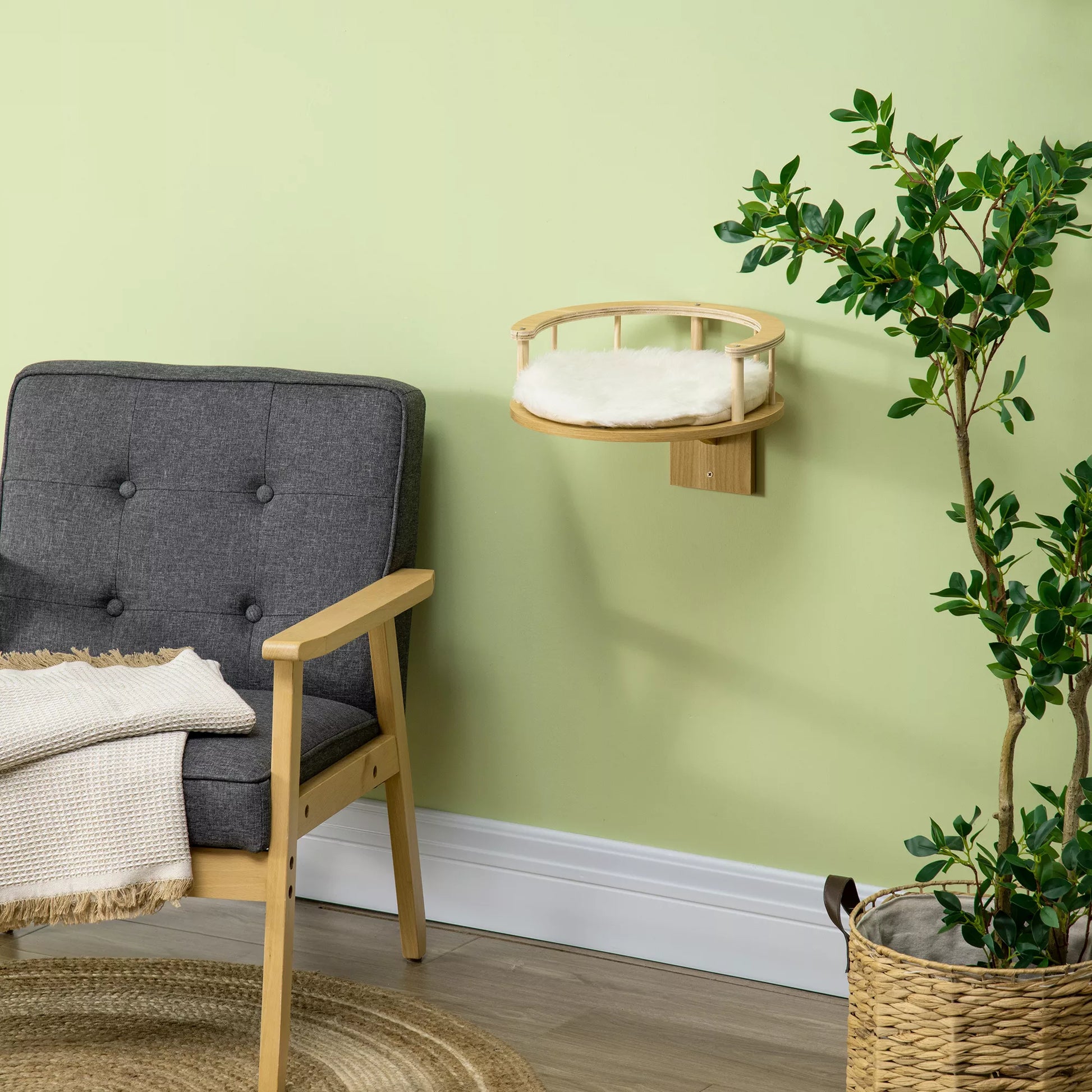 Sieninis katės gultas su apsauginiu krašteliu, pagalvėlė gulėjimui, skirtas tvirtinti prie sienos, ąžuolo ir kreminės baltos spalvos, 34 x 34 x 10,5 cm