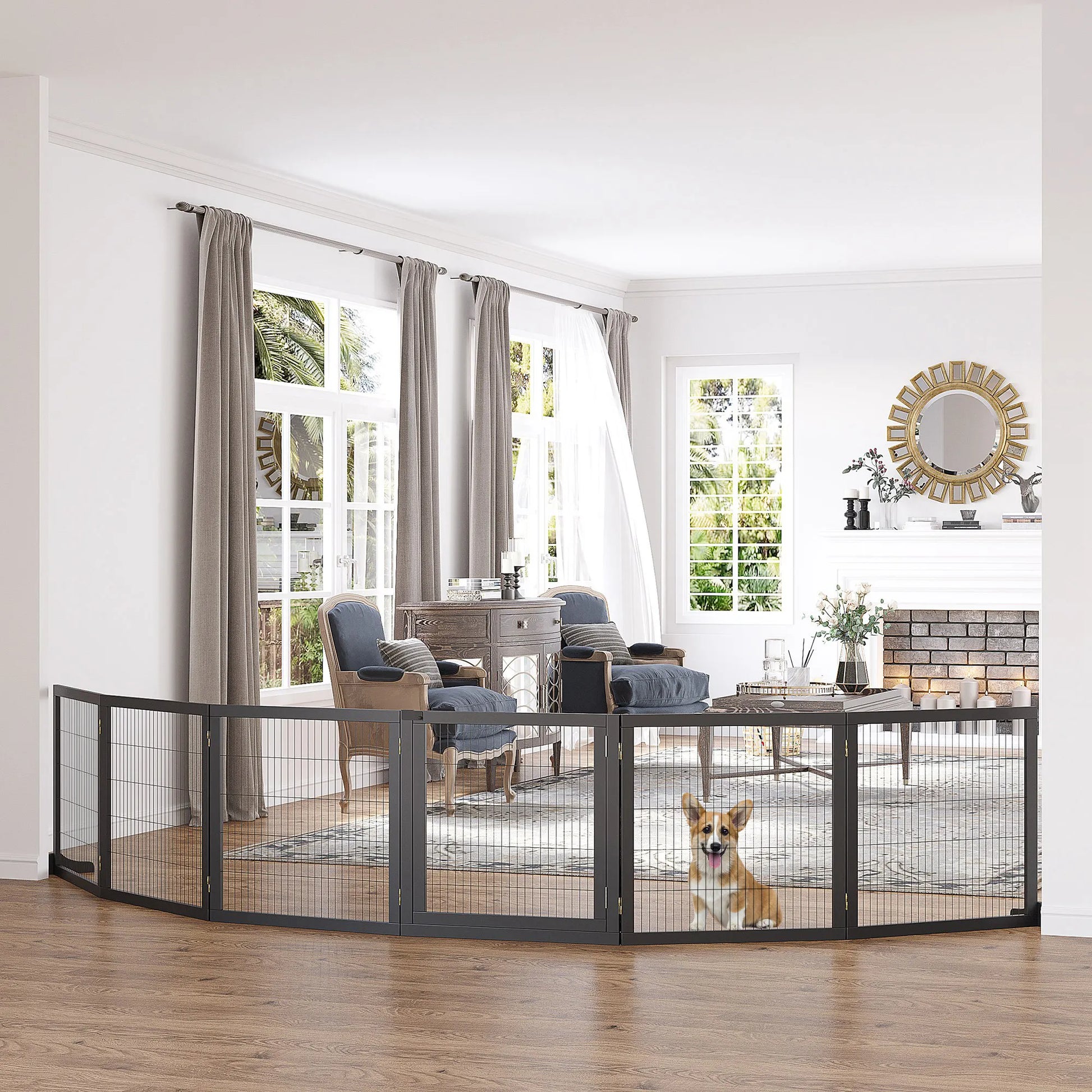 Ši medinė tvorelė yra saugus ir efektyvus būdas laikyti jūsų augintinius vienoje vietoje, tuo pačiu suteikiant jūsų namams dekoratyvinį akcentą. Ši reguliuojama tvorelė su šešiais atskirais skydais, sujungtais tvirtais vyriais, gali būti sulankstyta arba pastatyta laisvai stovinčia. Platūs atraminiai pagrindai galuose užtikrina didelį stabilumą. Stilinga medinė tvorelė tiks bet kurioje jūsų namų erdvėje.
