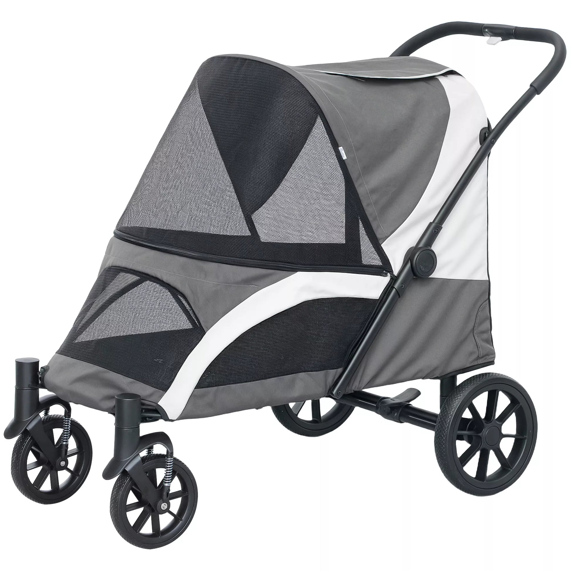 Šunų vežimėlis, sulankstomas vežimėlis dideliems šunims, 4 ratų augintinio vežimėlis, saugos diržai, stabdžiai, tamsiai pilkas