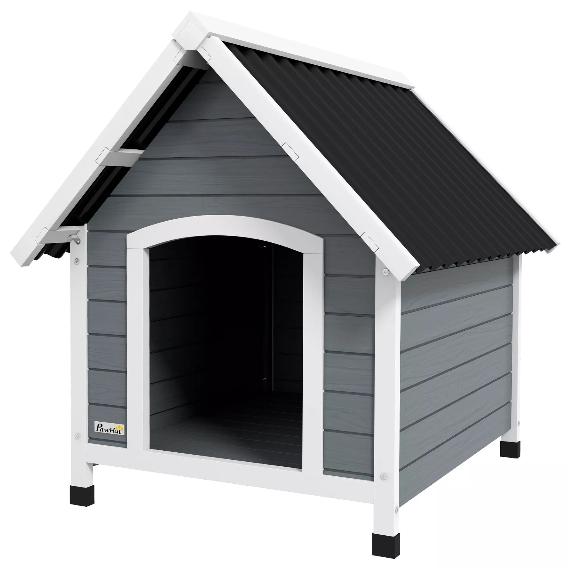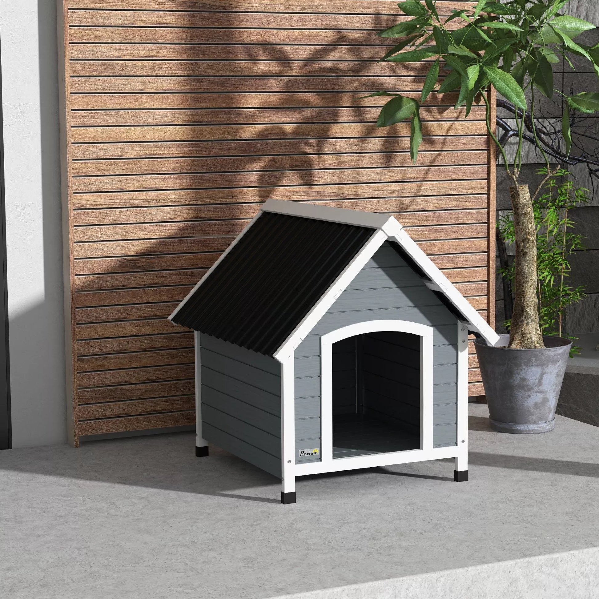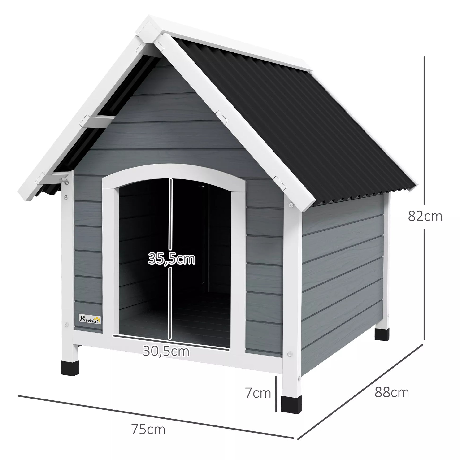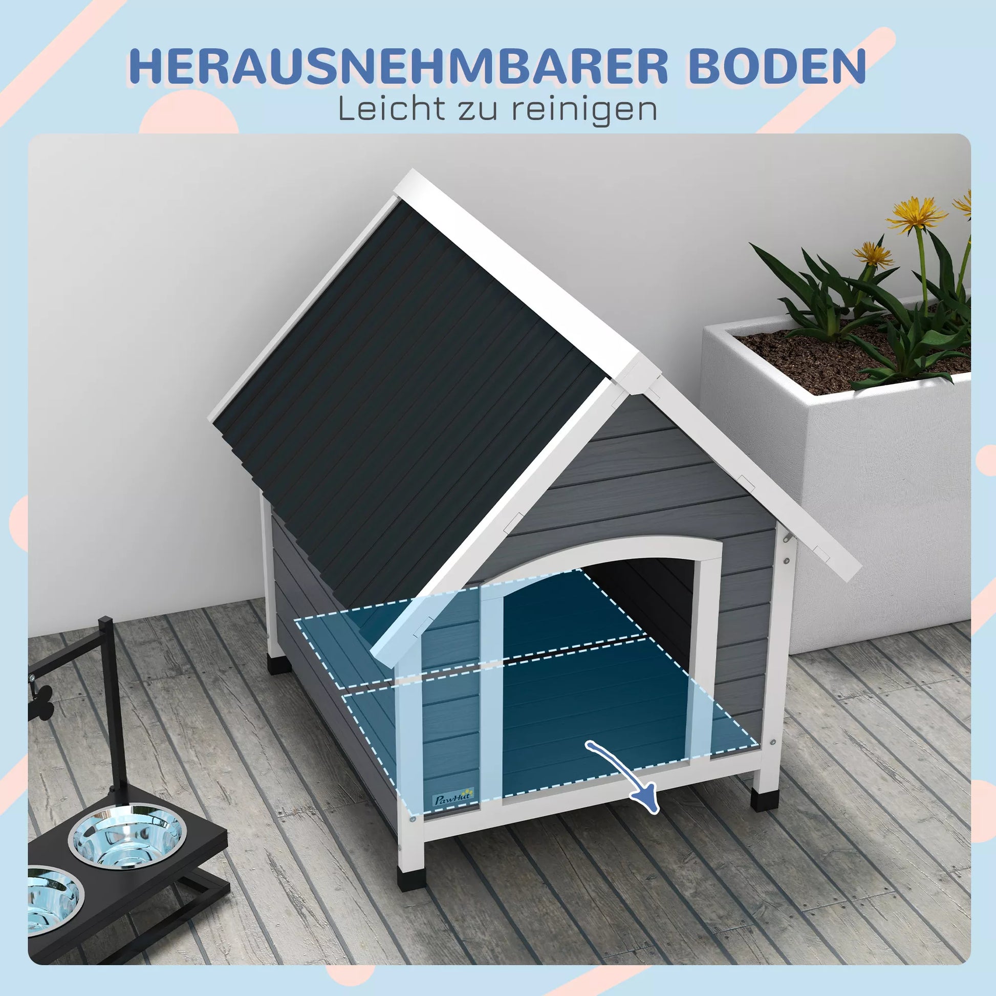 Šunų namelis, atsparus oro sąlygoms, su išimamu dugnu, pagamintas iš eglės medienos, 75x88x82 cm, pilka/juoda