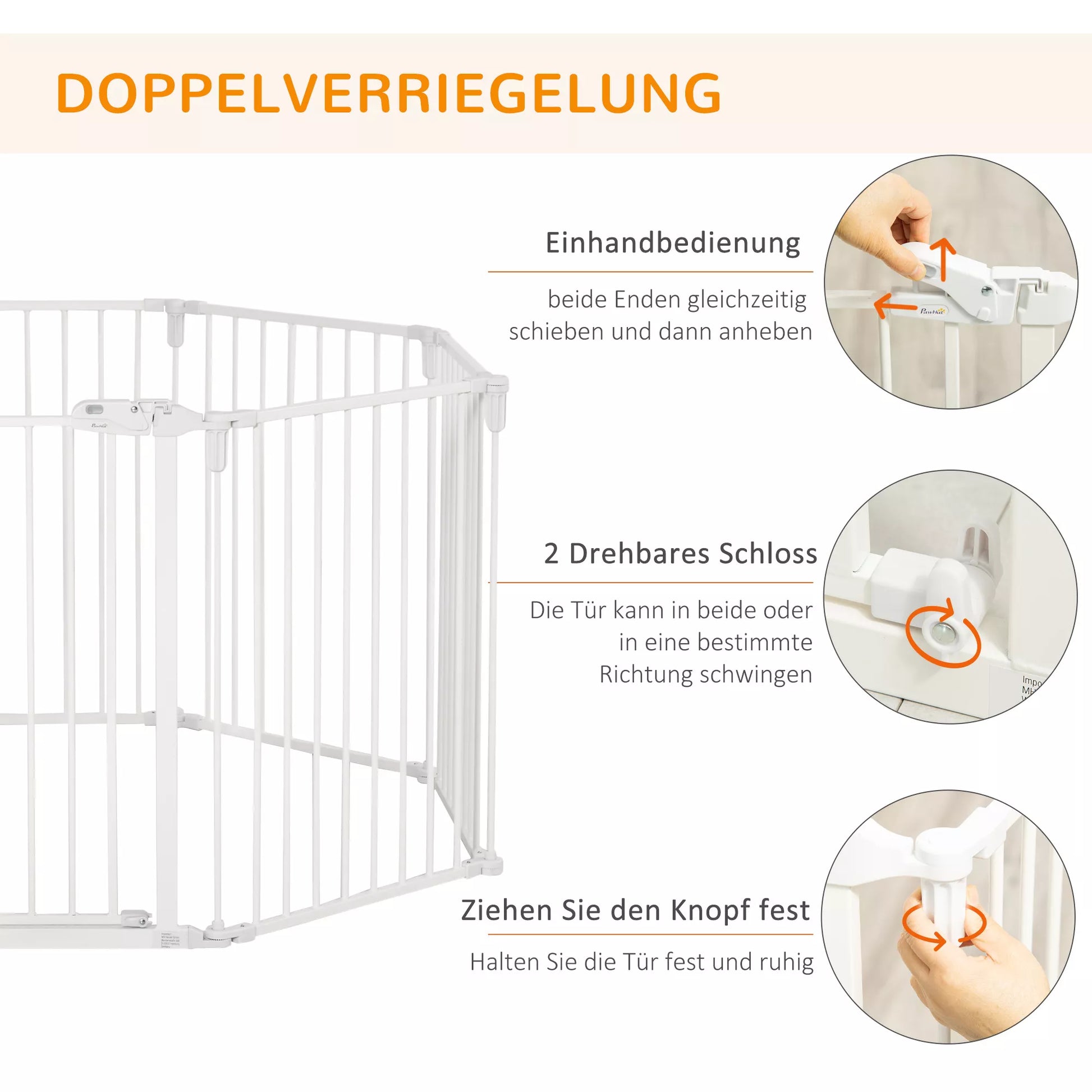 Šios naminių gyvūnėlių durų grotelės sukurtos, siekiant suteikti jūsų pūkuotiems draugams saugią ir patogią erdvę. Jas galima naudoti kaip aptvarą, apsauginį vartelį, atitvarą prie židinio ar kalėdinės eglutės. Galite jas surinkti įvairiomis formomis, kad atitiktumėte skirtingus jūsų poreikius. Dėl sulankstomo dizaino šias atitvarines groteles lengva transportuoti ir laikyti, kai jos nenaudojamos.