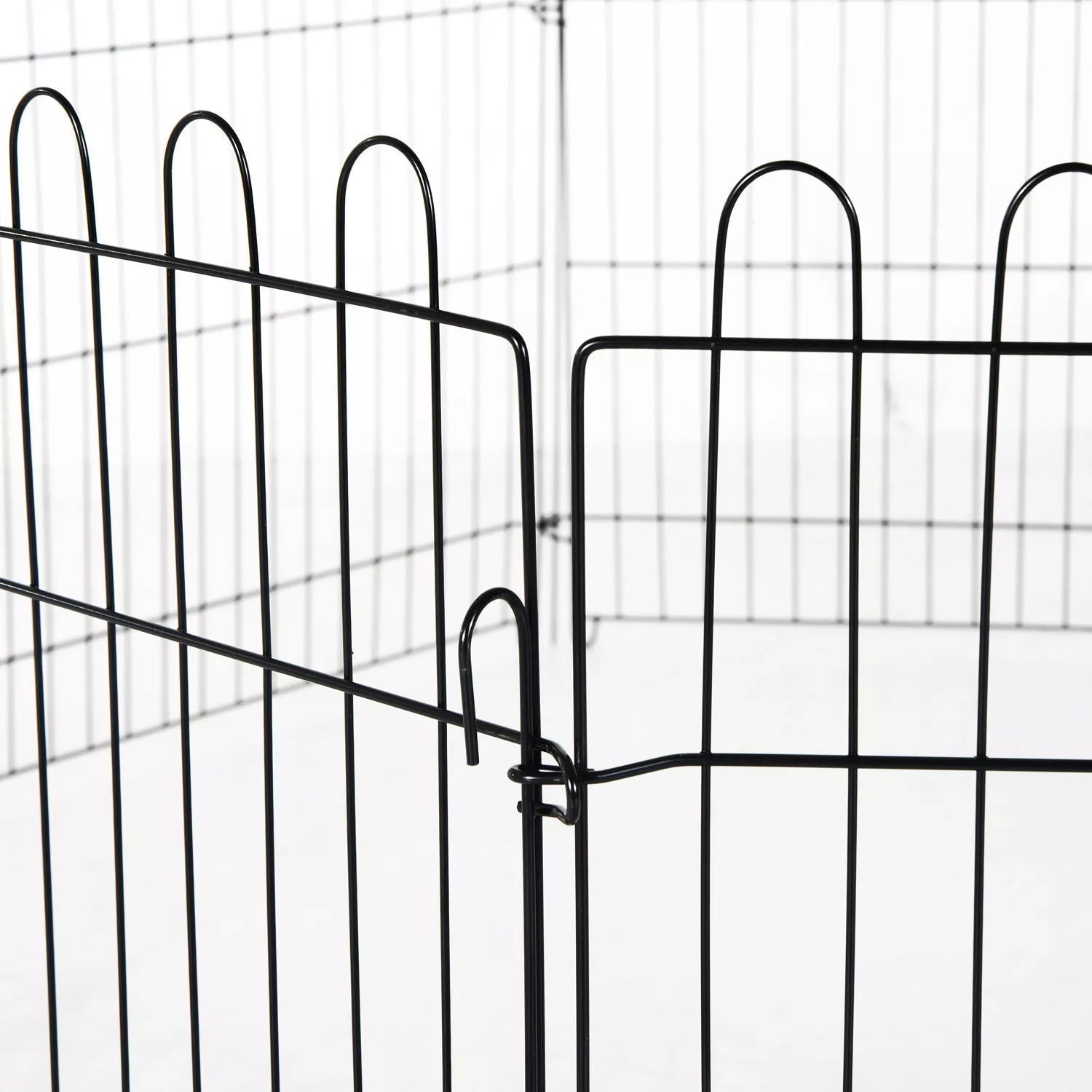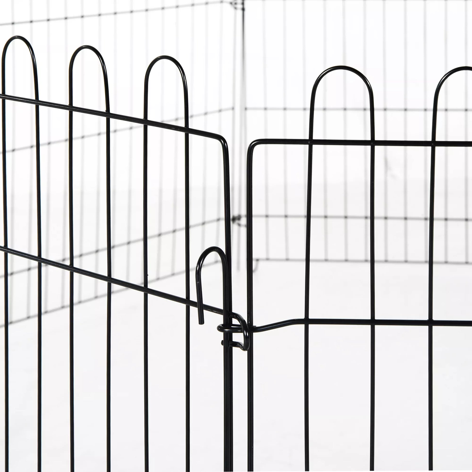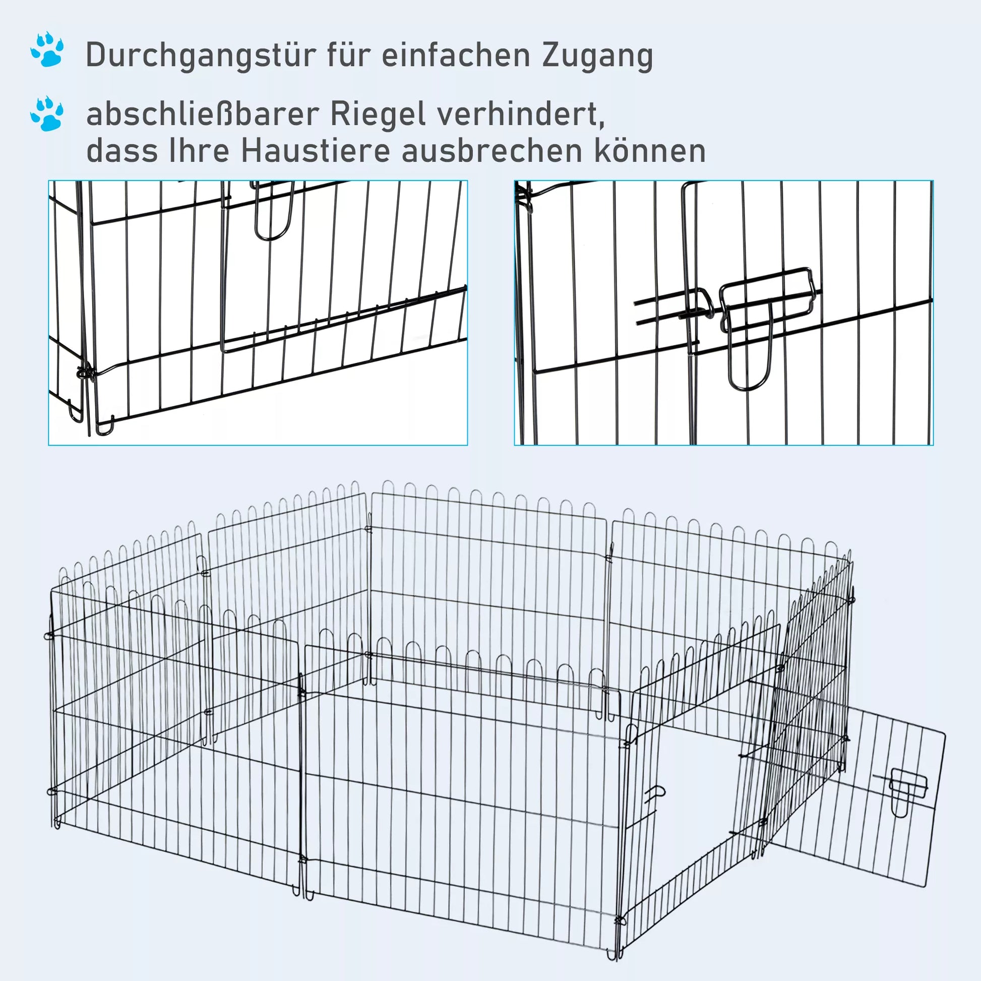 Šis praktiškas šuniukų aptvaras suteikia Jūsų augintiniams saugią ir atskirtą erdvę lakstyti, žaisti ir ilsėtis. Aptvaras tinka šunims, katėms, vištoms, mini kiaulėms, triušiams ir kitiems smulkiems gyvūnams. Jį sudaro 8 metaliniai tinklai, sujungti metalinėmis jungtimis. Kiekvienas tinklas gali būti tvirtinamas prie žemės specialiomis kuoliukais. Durelės turi saugų užraktą, neleidžiantį augintiniams pabėgti.