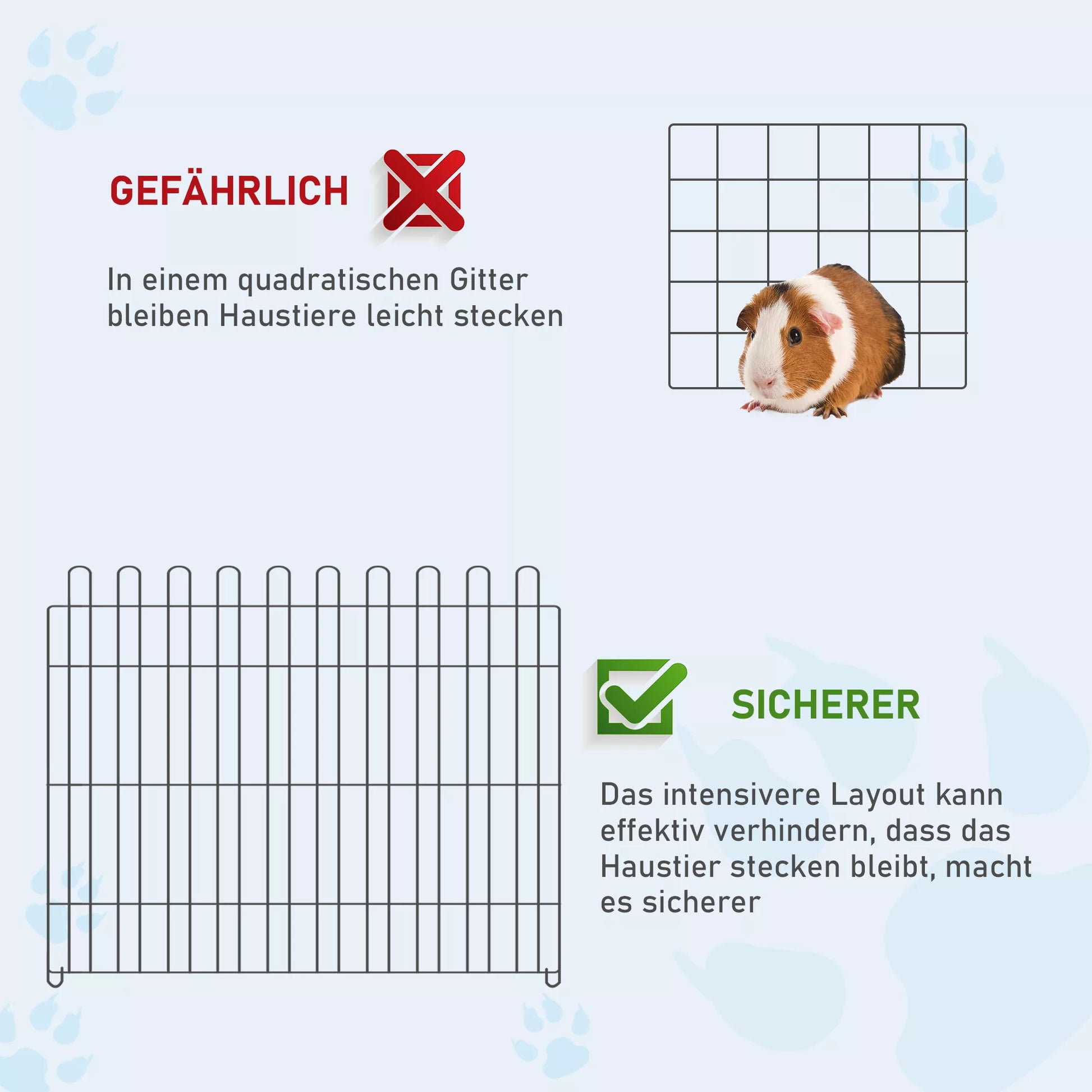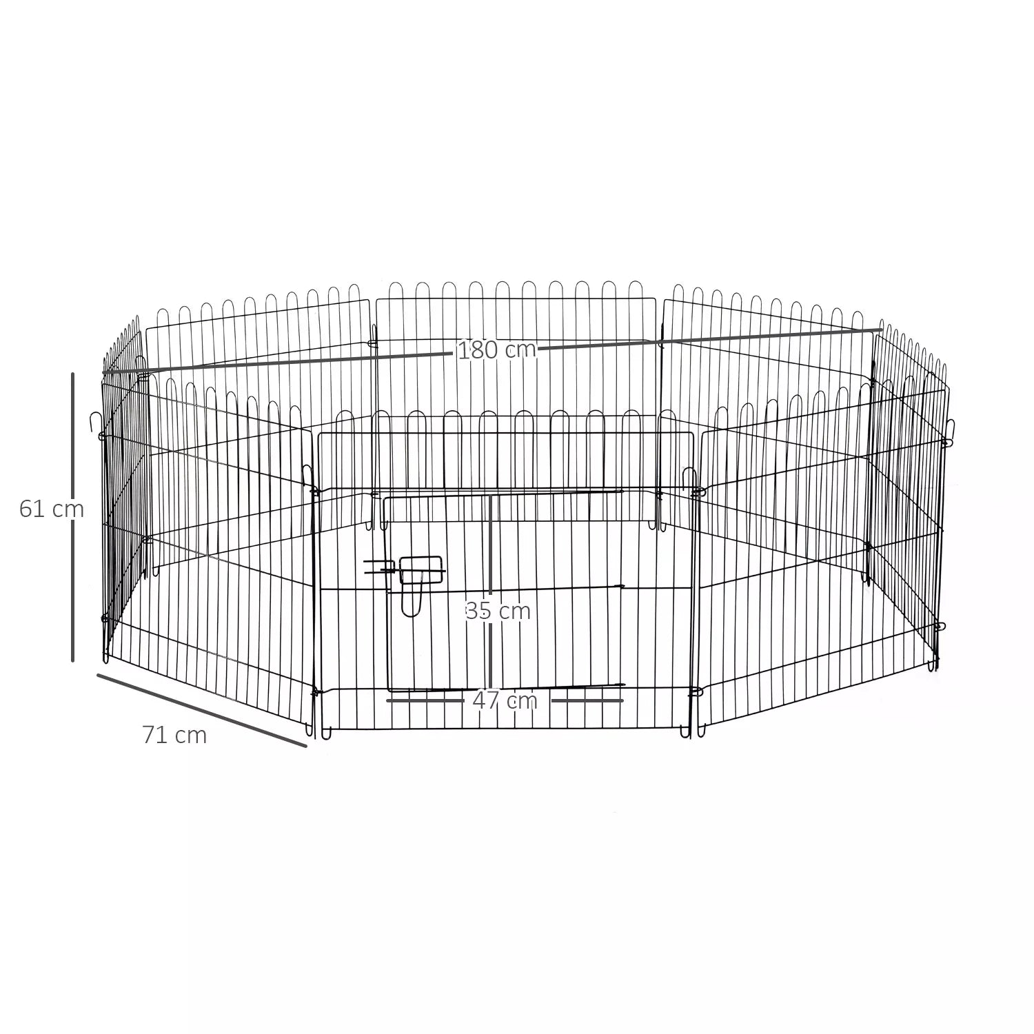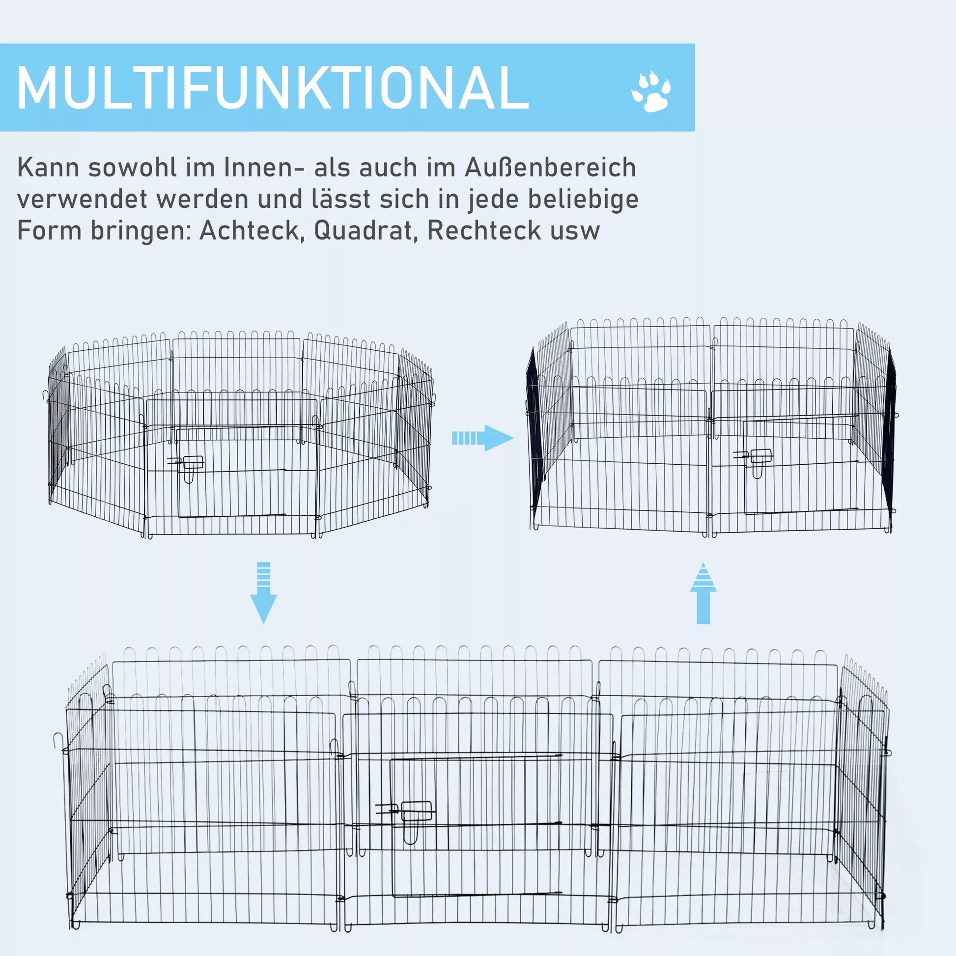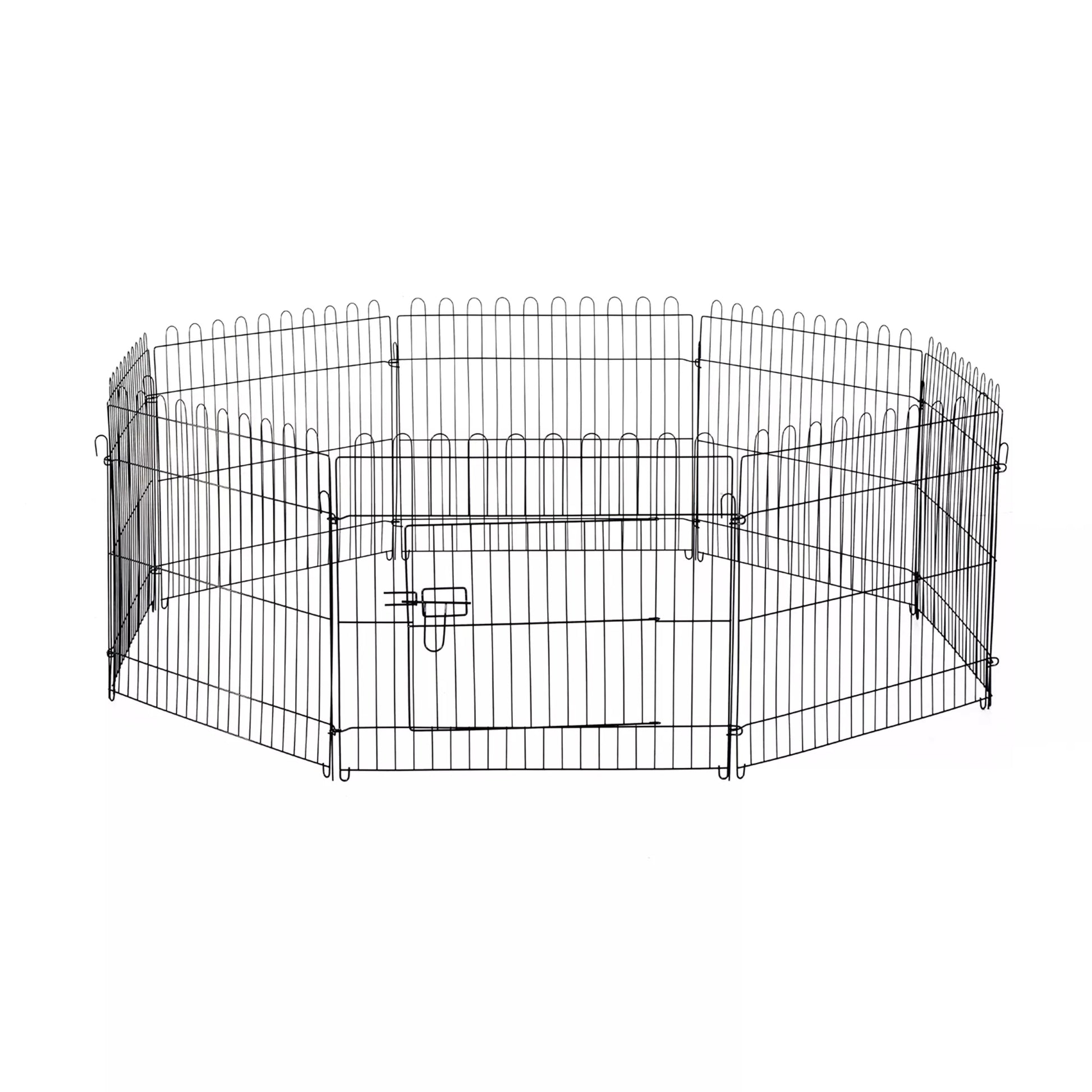 Šis praktiškas šuniukų aptvaras suteikia Jūsų augintiniams saugią ir atskirtą erdvę lakstyti, žaisti ir ilsėtis. Aptvaras tinka šunims, katėms, vištoms, mini kiaulėms, triušiams ir kitiems smulkiems gyvūnams. Jį sudaro 8 metaliniai tinklai, sujungti metalinėmis jungtimis. Kiekvienas tinklas gali būti tvirtinamas prie žemės specialiomis kuoliukais. Durelės turi saugų užraktą, neleidžiantį augintiniams pabėgti.