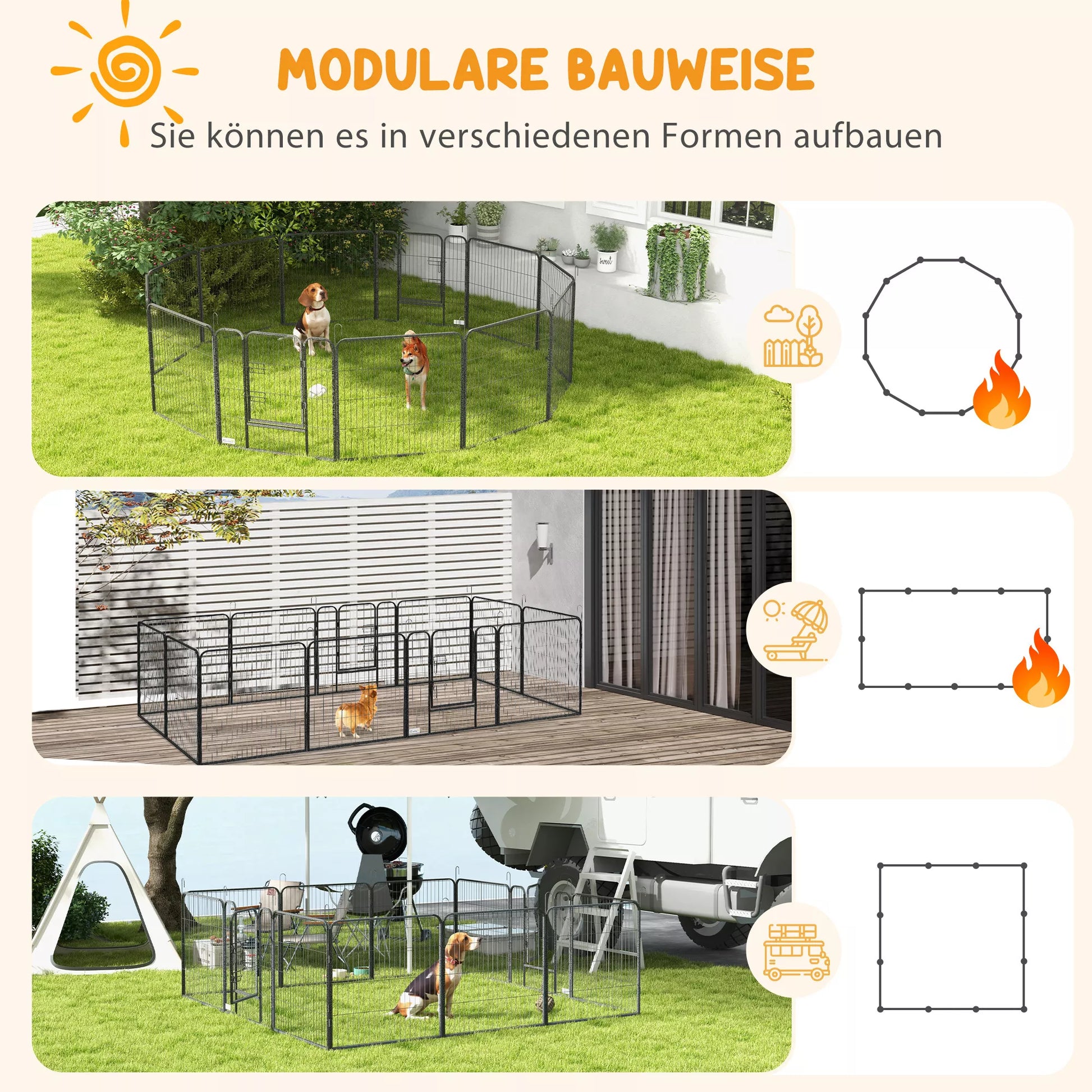Atraskite universalią šunų aptvarą! Sudaryta iš 12 reguliuojamų panelių, ją galima lanksčiai pritaikyti pagal jūsų poreikius. Nesvarbu, ar kaip erdvi aptvara, ar padalyta į dvi dalis, ji leidžia atskirti skirtingus augintinius. Dvi praėjimo durys ir saugus užraktas užtikrina aukščiausią saugumą. Jūsų augintinis galės atsipalaiduoti ir judėti erdviose patalpose.
