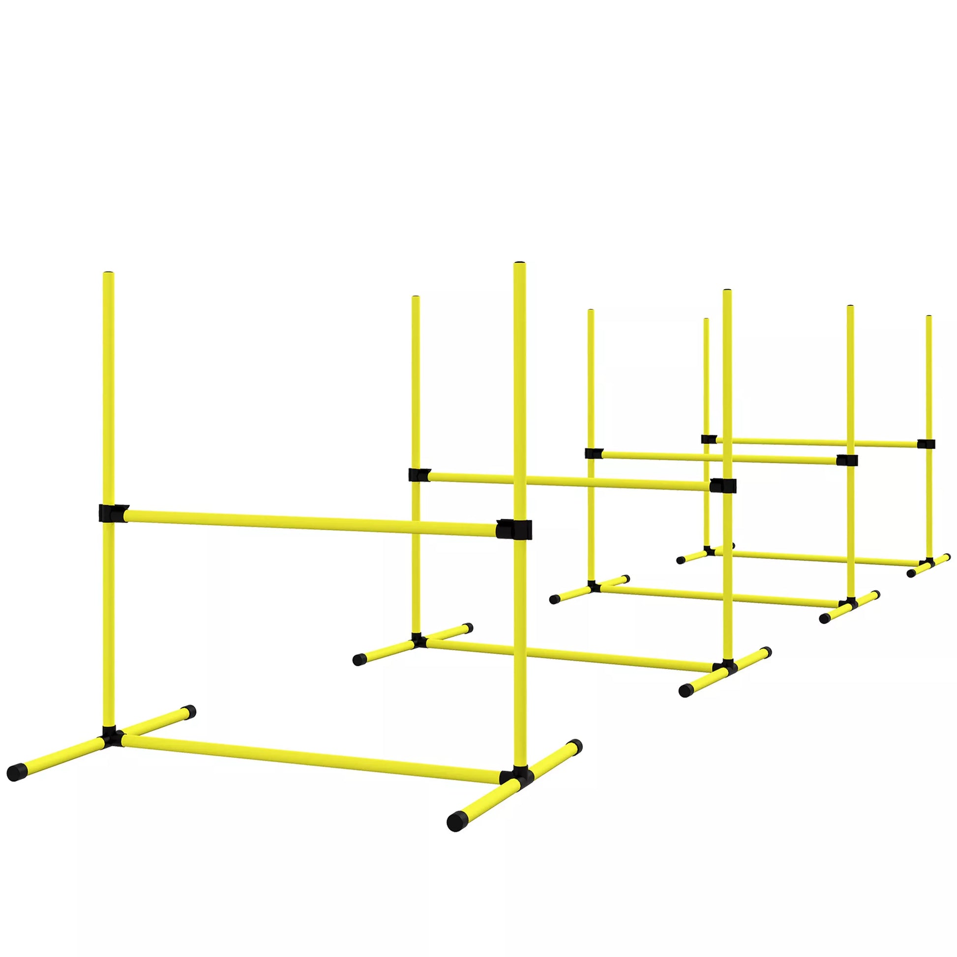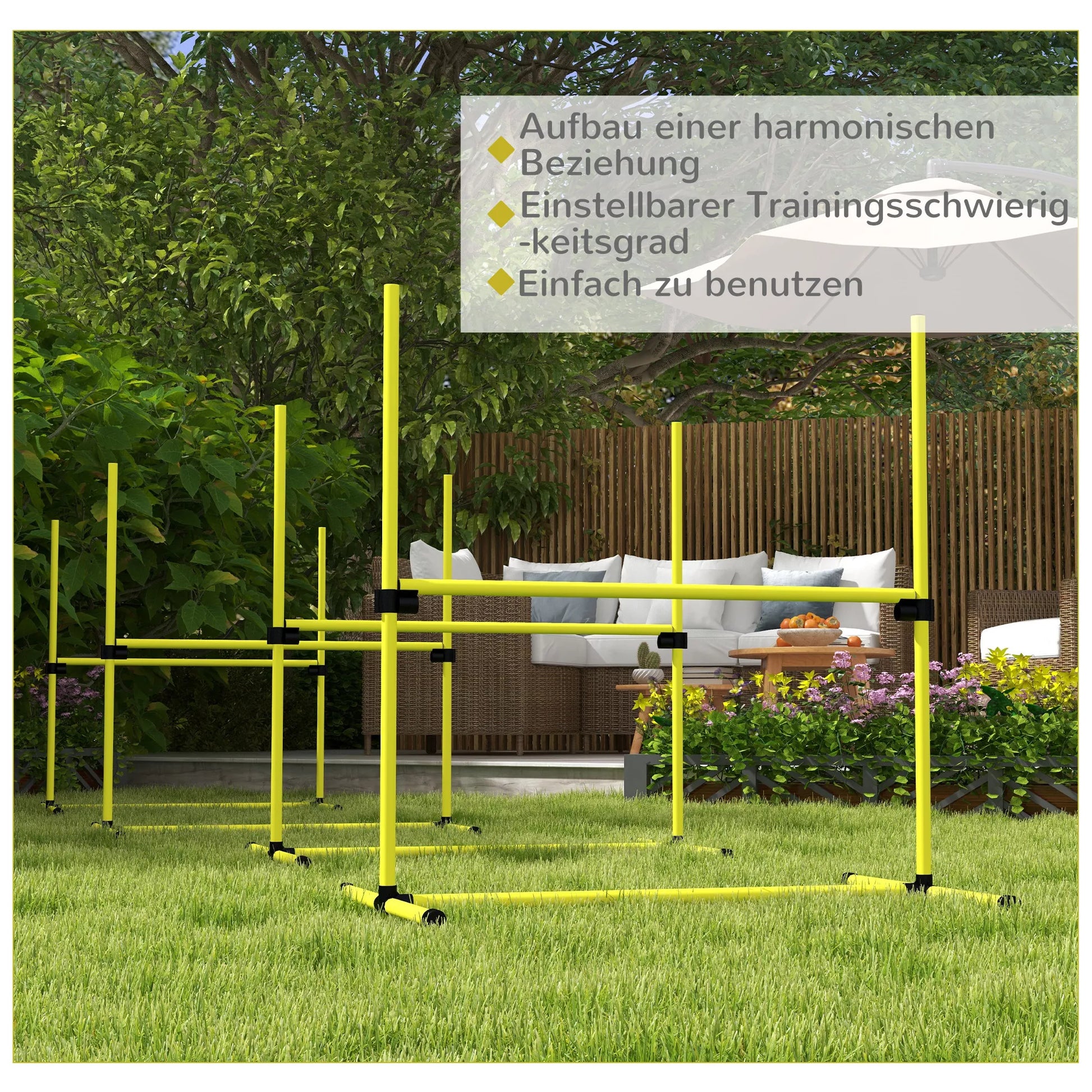 - ✔ 4 x barjerų rinkinys, skirtas treniruoti šuns judrumą