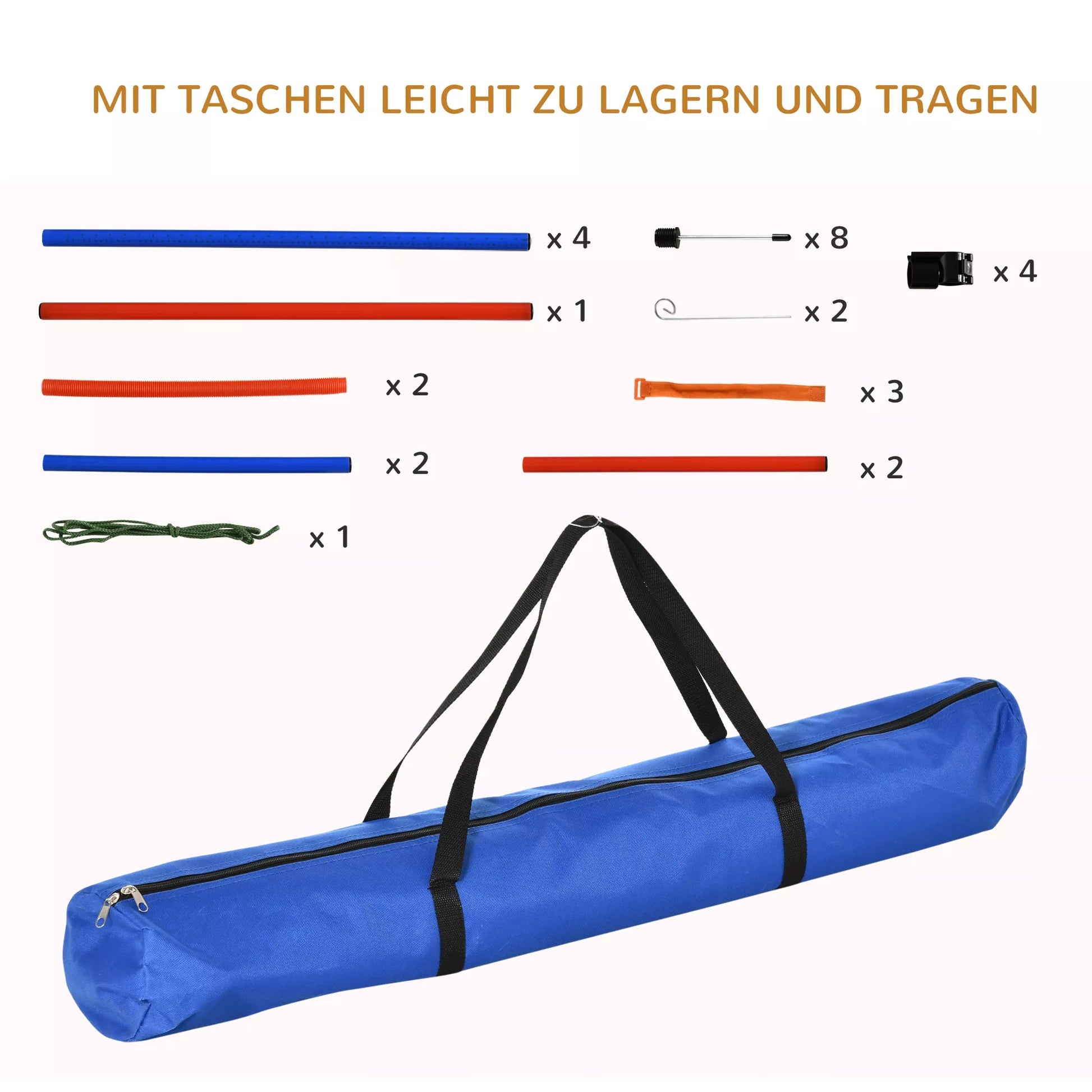 Šunų agiliti treniruočių įranga, agiliti treniruočių rinkinys, šunų agiliti rinkinys, slalomo barjerų ir šokinėjimo lankas šunims, 3in1 šunų sporto treniruočių aikštelė, Mėlyna+Raudona