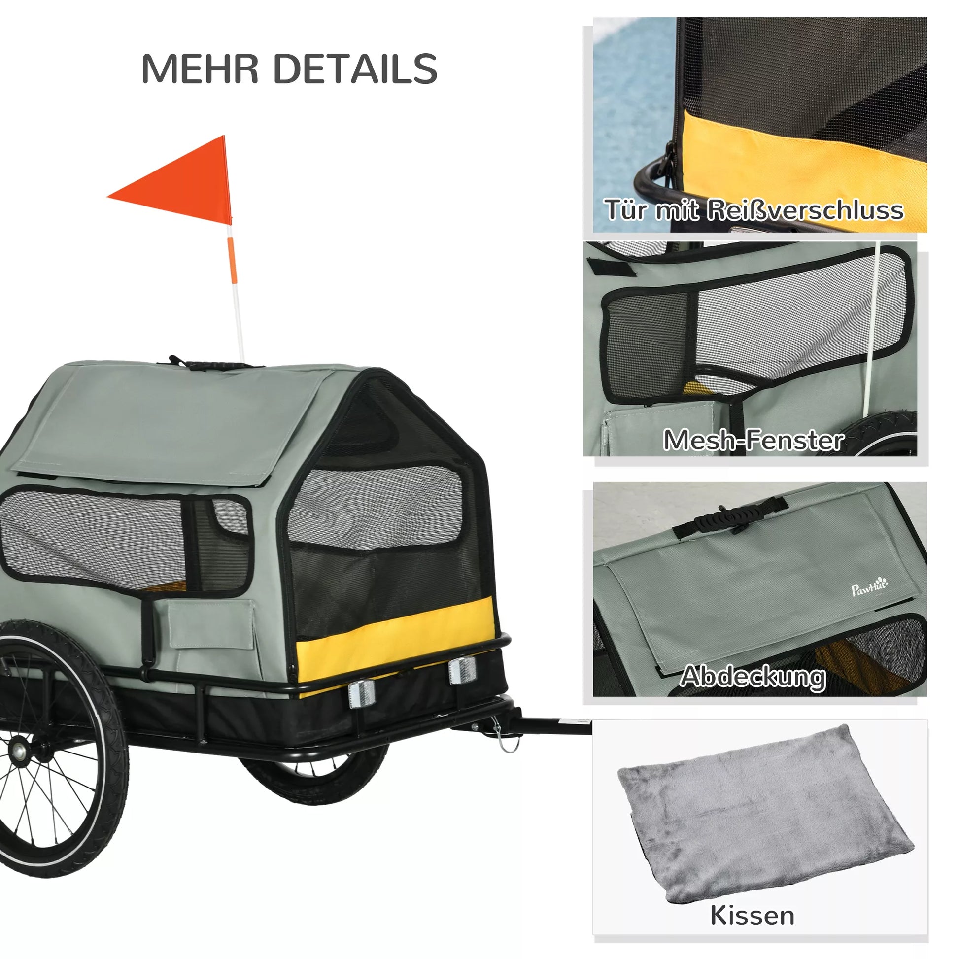 Nešdami augintinio svorį ant pečių ar nugaros, judėsite lėčiau ir greičiau pavargsite, nes reikės daugiau nešti, tačiau su ratiniu augintinio priekabos vežimėliu už jūsų vėl jausitės laisvi. Šis 3-in-1 dizainas gali būti naudojamas kaip priekaba augintiniams, bet taip pat gali būti tvirtinamas prie dviračių. Jame yra saugos elementai, tokie kaip vėliavėlė ir atšvaitai, geresniam matomumui ir gerai apsaugai užtikrinti.