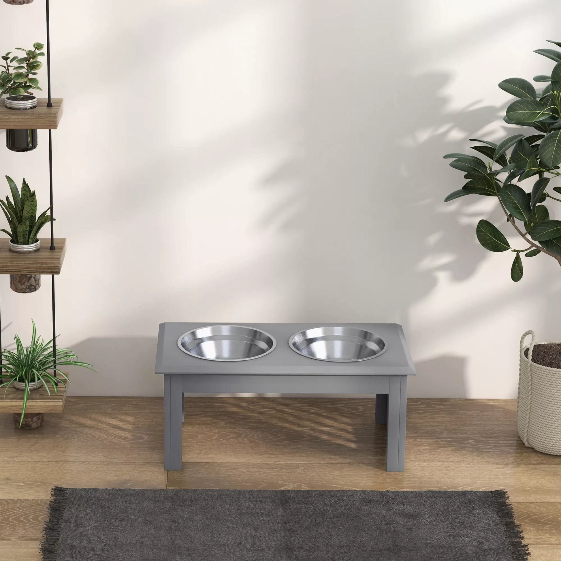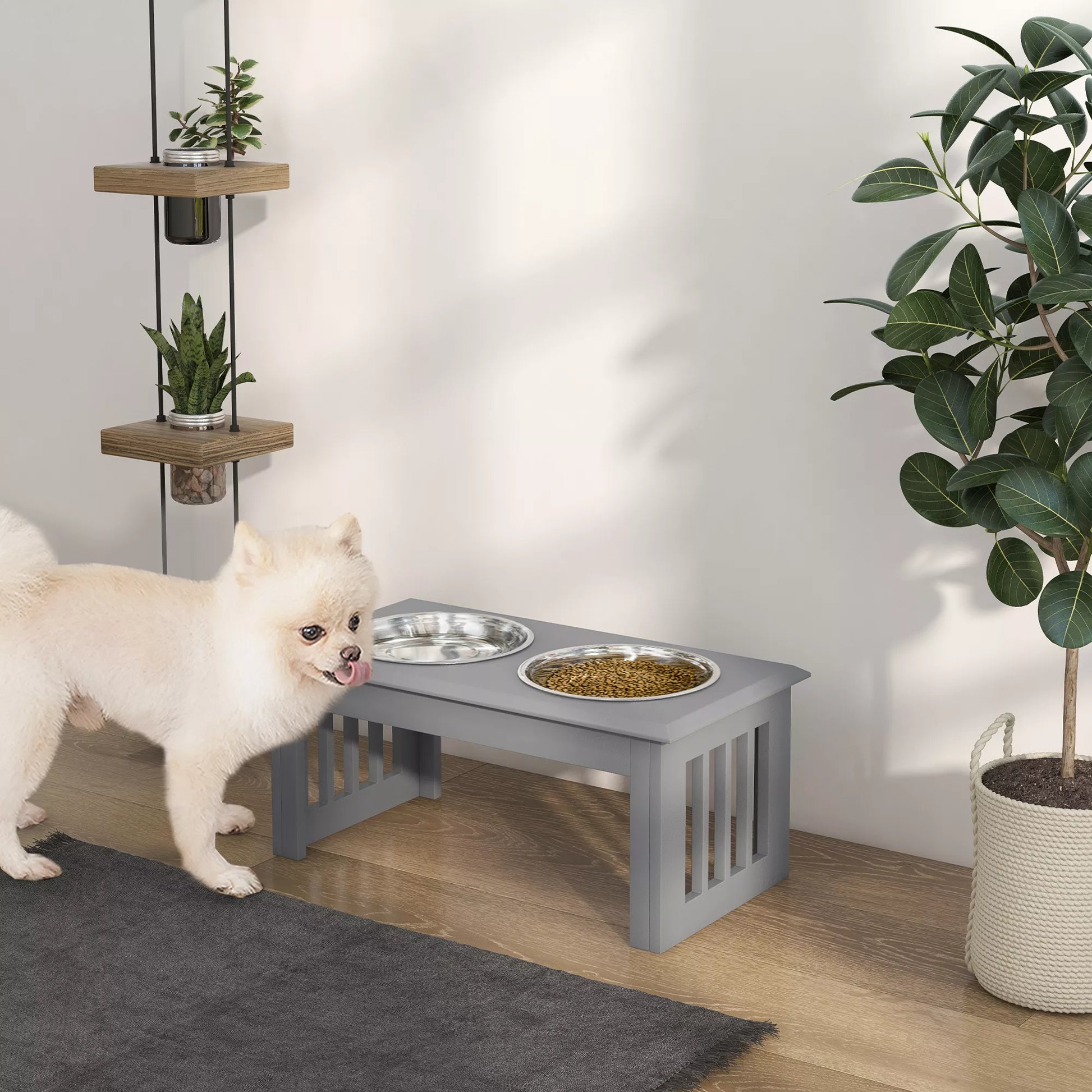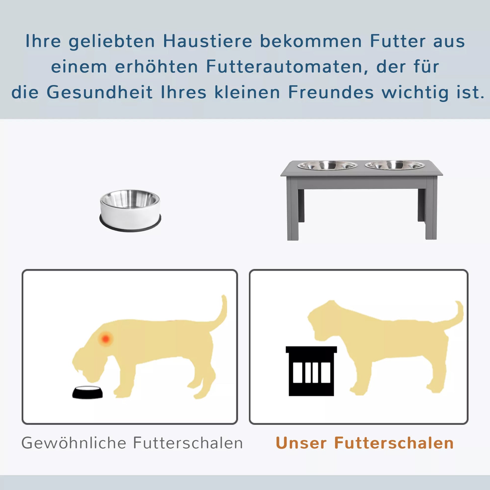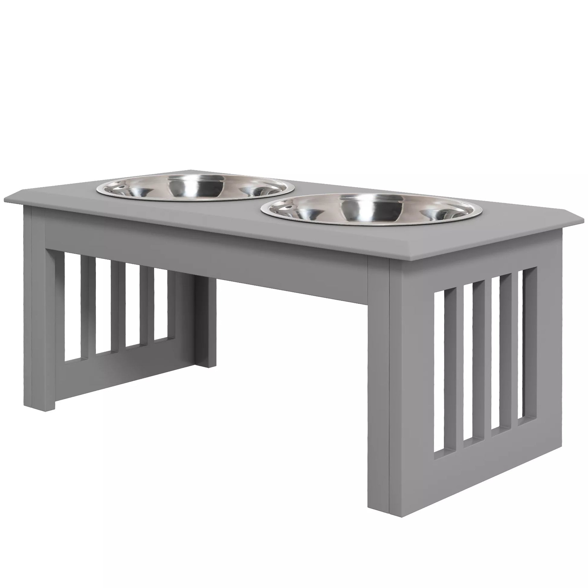 Šunų maitinimo stotelė, 2 nerūdijančio plieno dubenėliai, neslystantis, 58,4x30,5x25,4cm, Pilkas