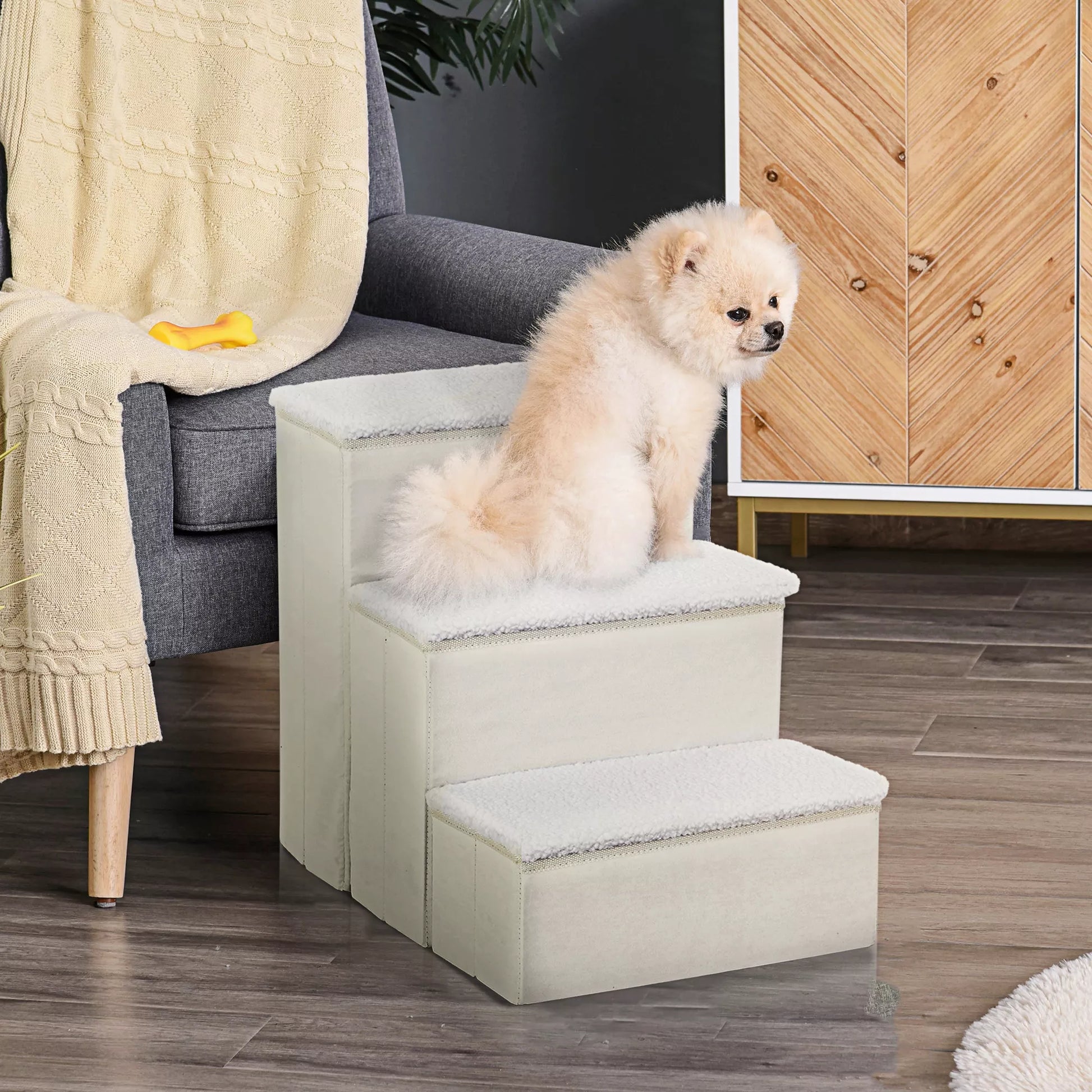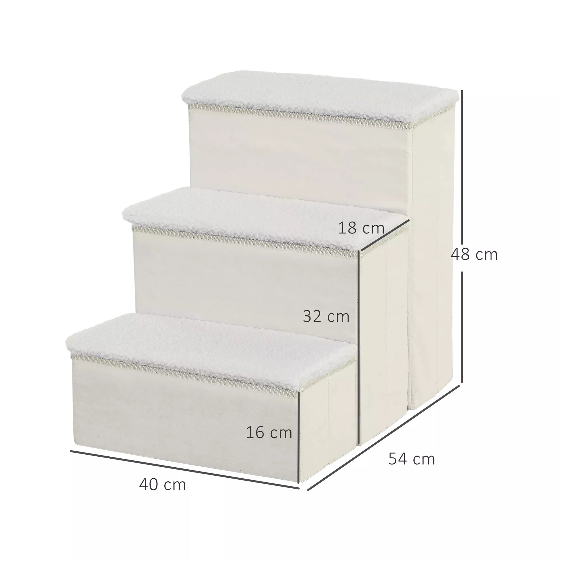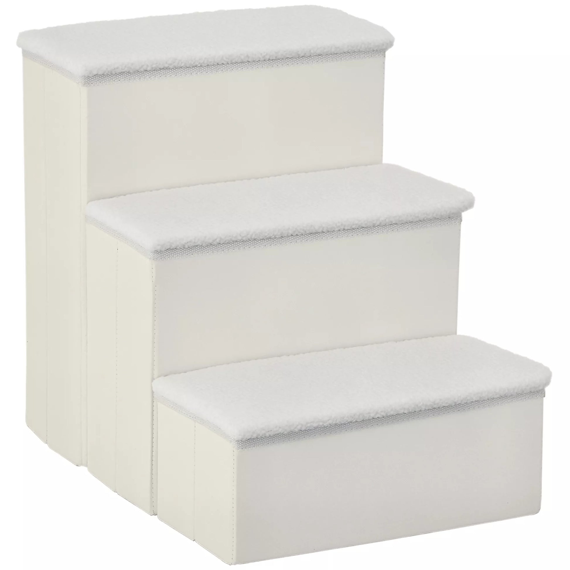 Šunų laipteliai 3 pakopų 48 cm aukščio, sulankstomi augintinių laipteliai mažiems ir seniems gyvūnams, kačių ir šunų rampa, įlipimo pagalba į lovą, sofą, čiužinį ir automobilį, balti