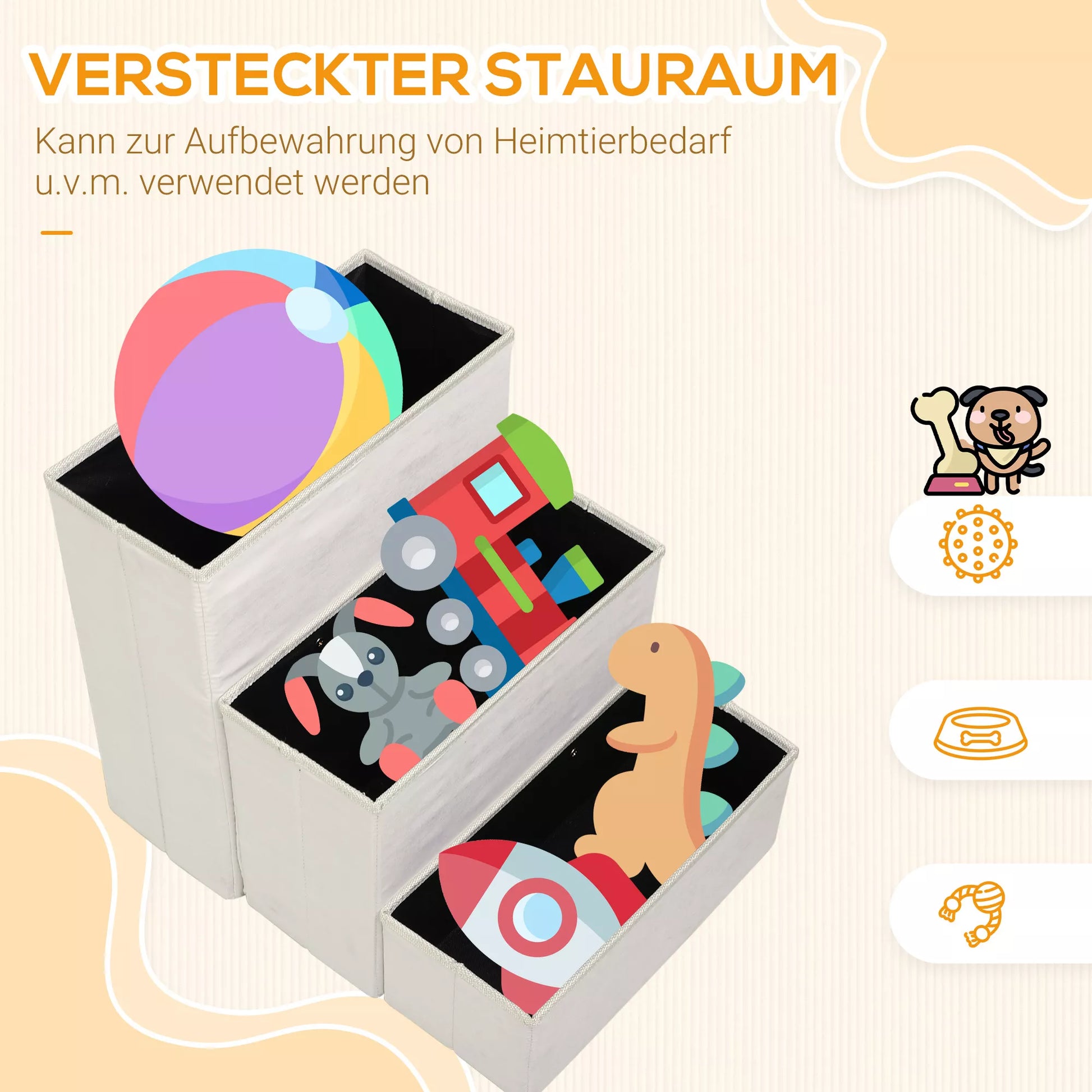 Da vyresni naminių gyvūnėlių dažnai vargina judėjimo sunkumai. Šios trijų pakopų gyvūnėlių laipteliai gali padėti. Jų dėka, pavyzdžiui, seni ar labai maži šunys gali lengvai užlipti ant sofos ar įlipti į automobilį. Po pakopomis taip pat yra daug vietos daiktams susidėti, kur galėsite laikyti bet kokius reikmenis savo augintiniams. Sulankstomas dizainas užtikrina, kad gyvūnėlių laipteliai būtų lengvai išardomi ir sandėliuojami. Ypač minkštas, ilgo plauko audinio užvalkalas greitai pavers laiptelius jūsų augintinių mėgstamiausia vieta.