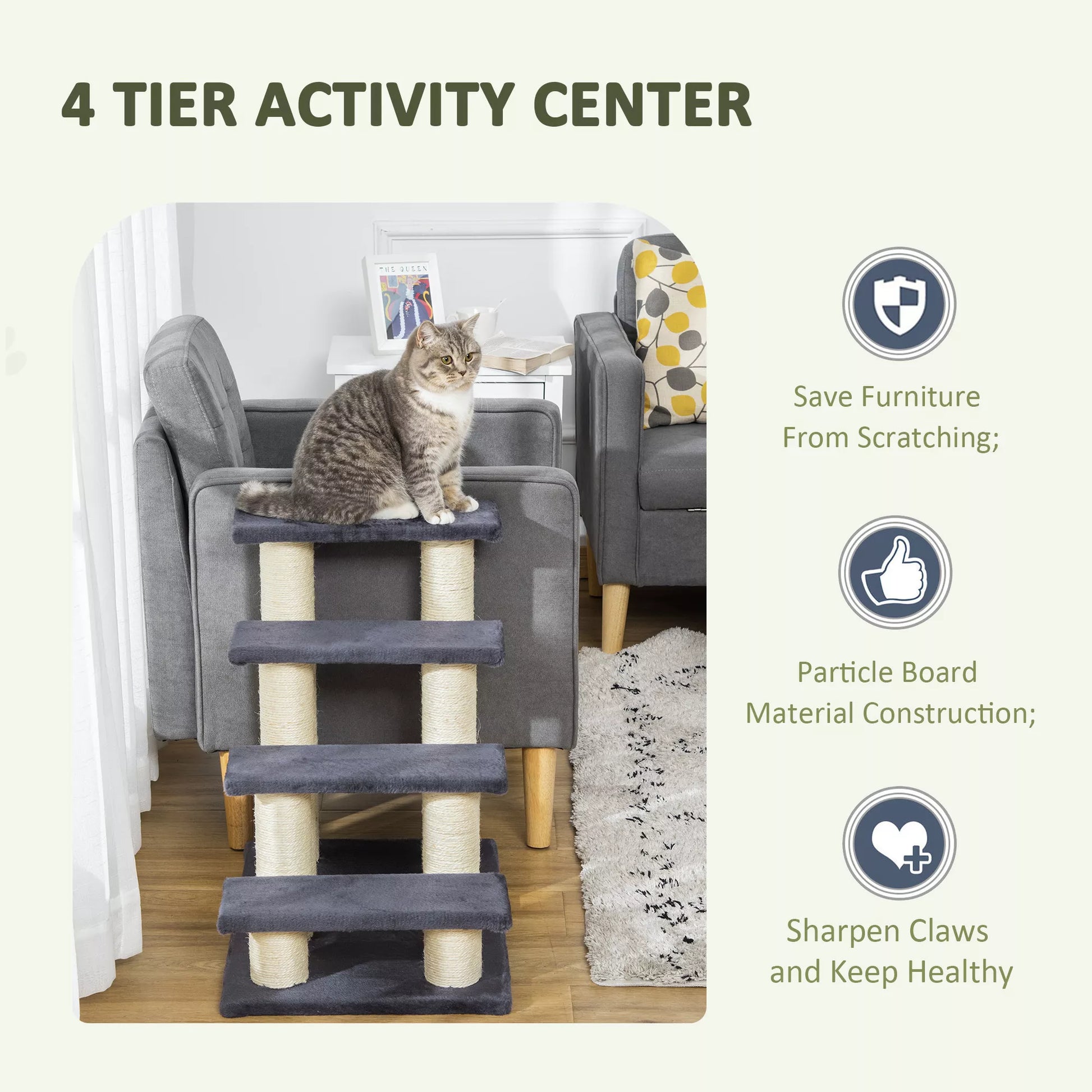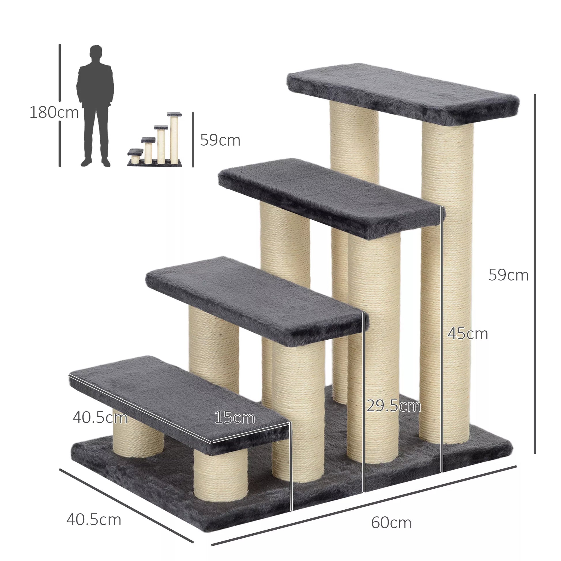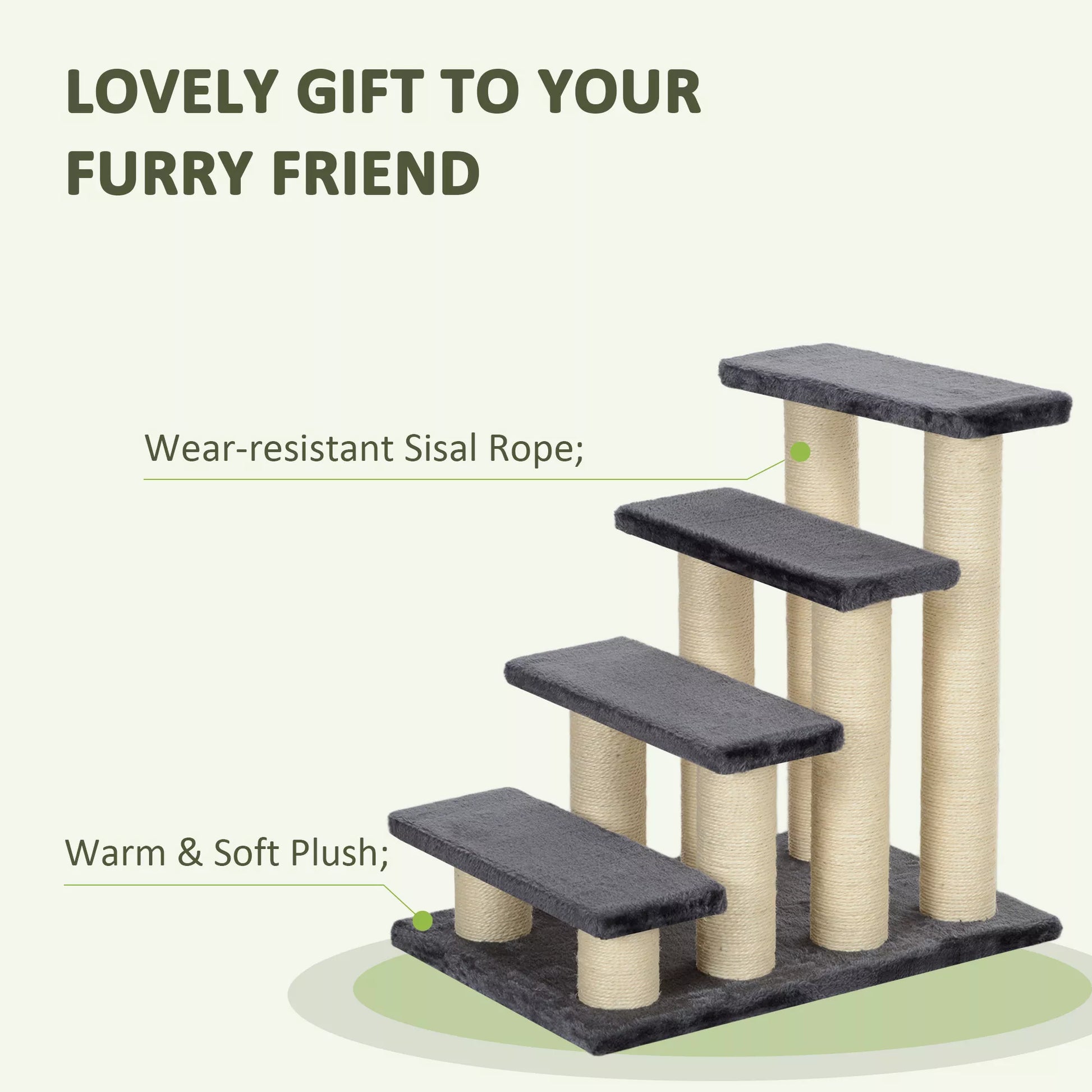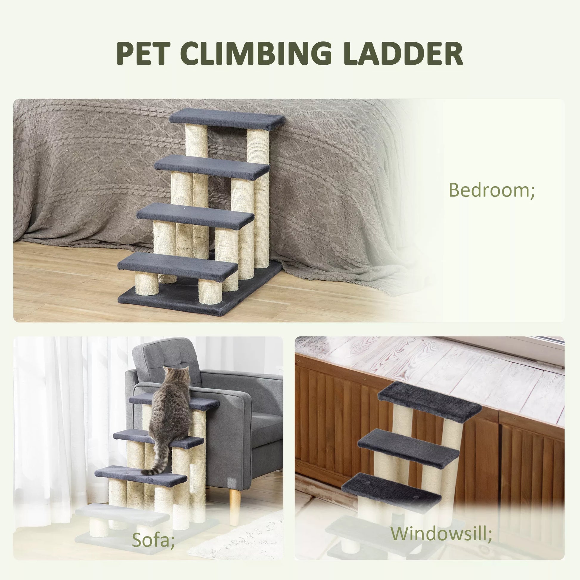 Šunų laipteliai su 4 pakopomis, 59 cm aukščio, naminių gyvūnėlių laipteliai katėms ir šunims, šunų rampa, kačių laipteliai, įlipimo pagalba į lovą, sofą, kušetę, pilkos spalvos