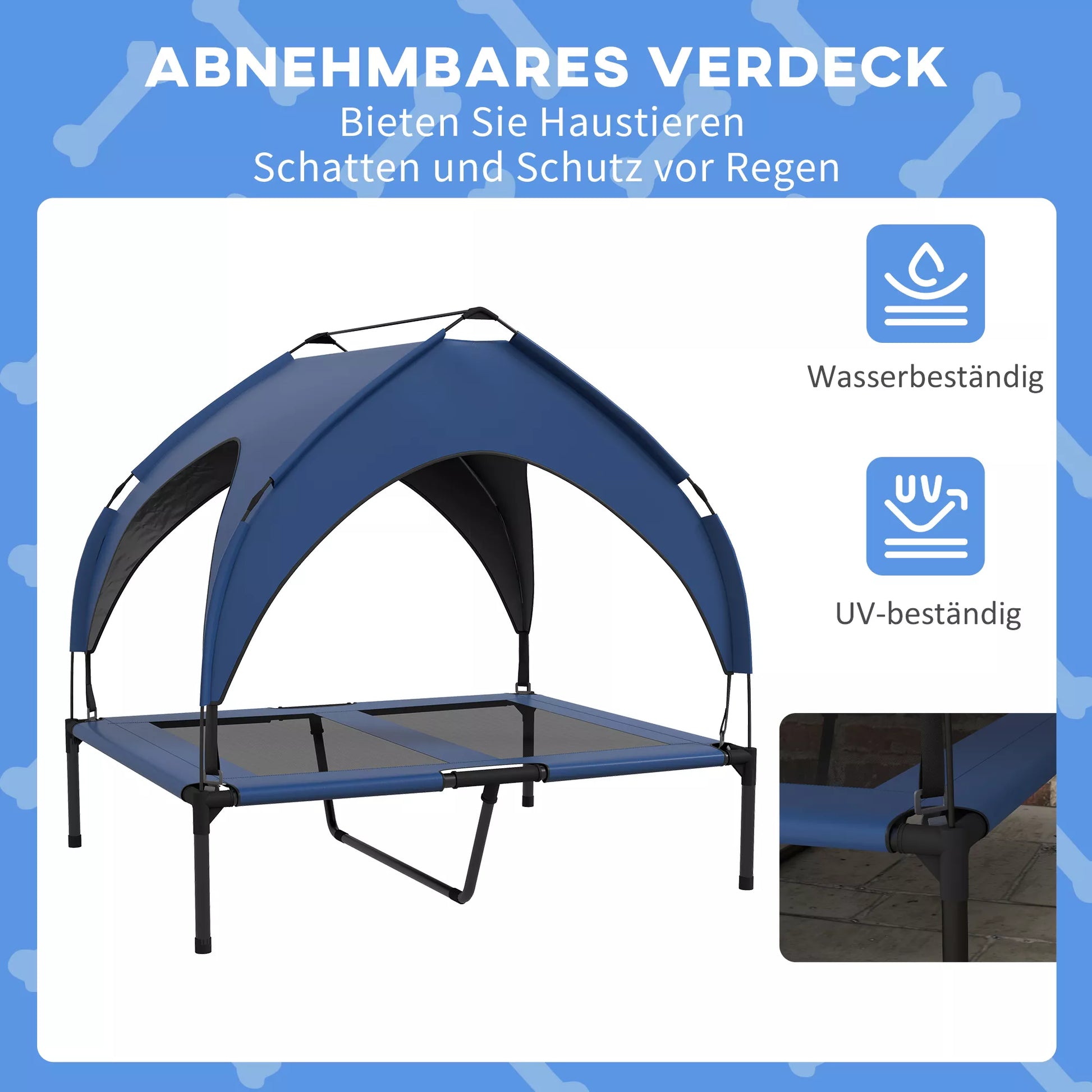 Šunų lova su stogeliu, kvėpuojanti, atstumianti vandenį, iki 30 kg, 91 x 76 x 89 cm, tamsiai mėlyna