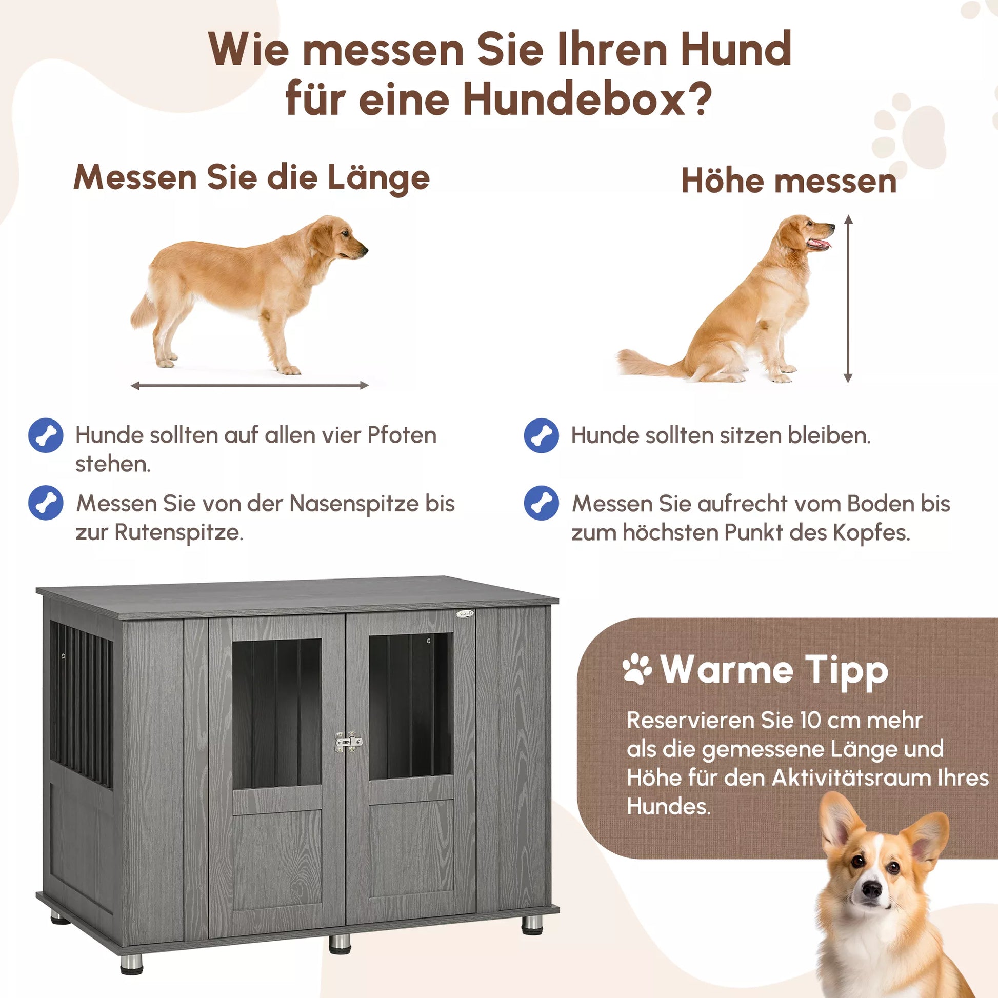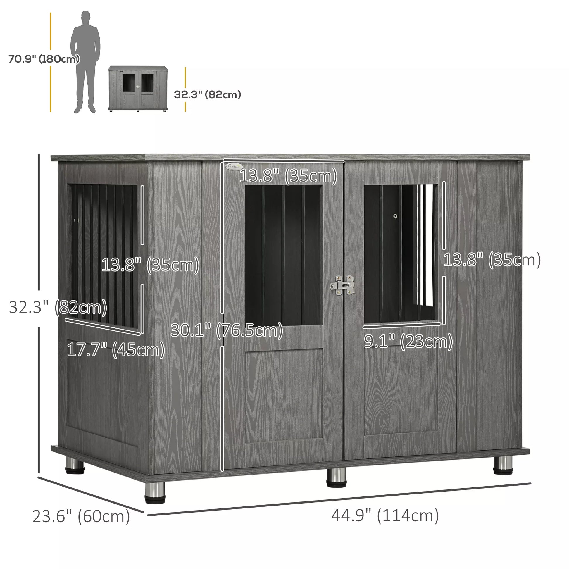 Šunų narvas / dėžė, 2 durys, su užraktu, 116 cm x 60 cm x 87 cm, Pilkas