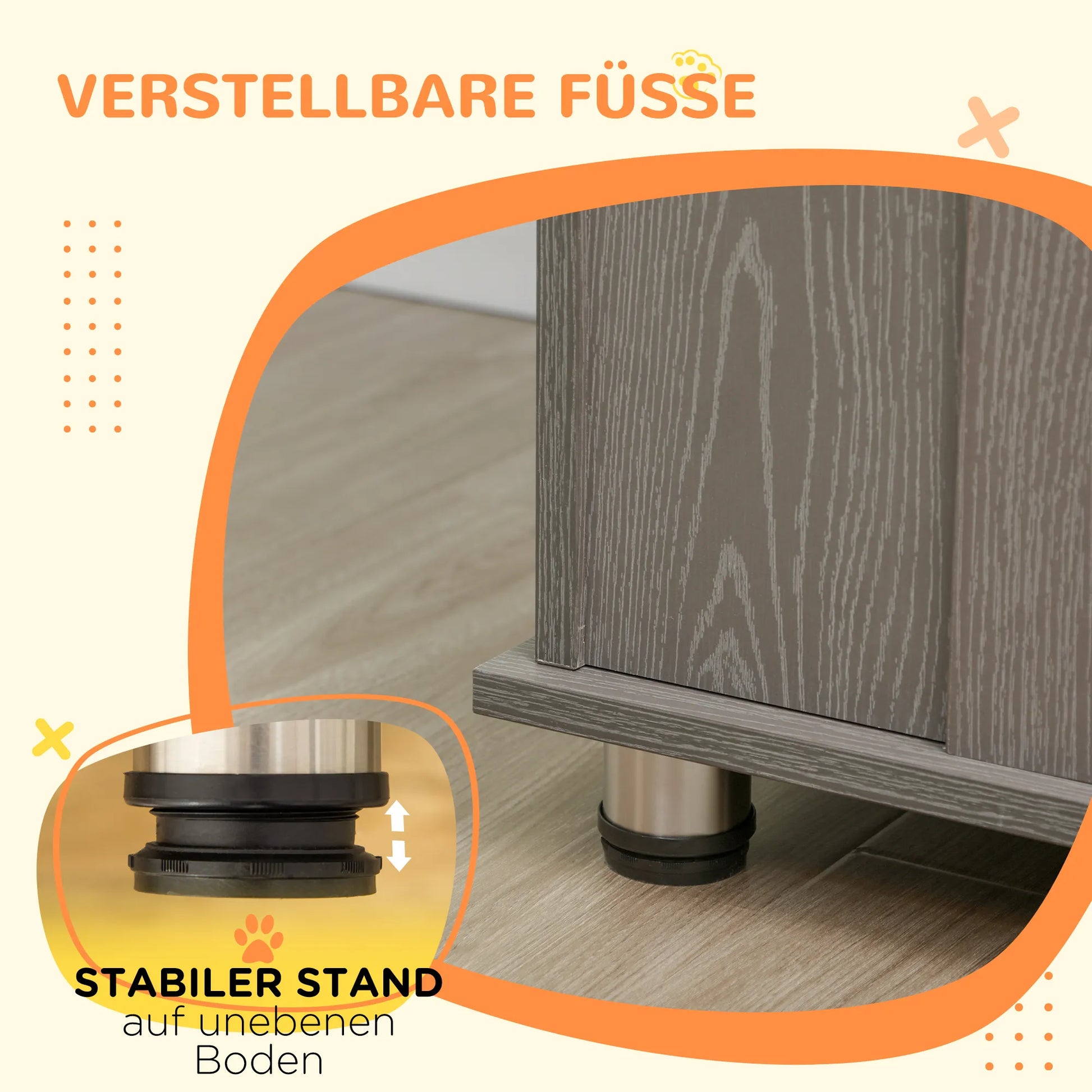 Šis šunų gardas yra patogi ir saugi jūsų šuns poilsio vieta. Plieniniai strypai languose užtikrina gerą vėdinimą, o paaukštintos grindys neleidžia prasiskverbti drėgmei. Magnetinės durys su skląsčiais užtikrina, kad augintinis liktų saugus ir apsaugotas viduje. Jūs galite išeiti iš kambario žinodami, kad jūsų šunys yra saugūs. Modernus naminių gyvūnėlių gardas, sukurtas apsaugoti jūsų augintinius ir tuo pačiu suteikti stiliaus jūsų namams.