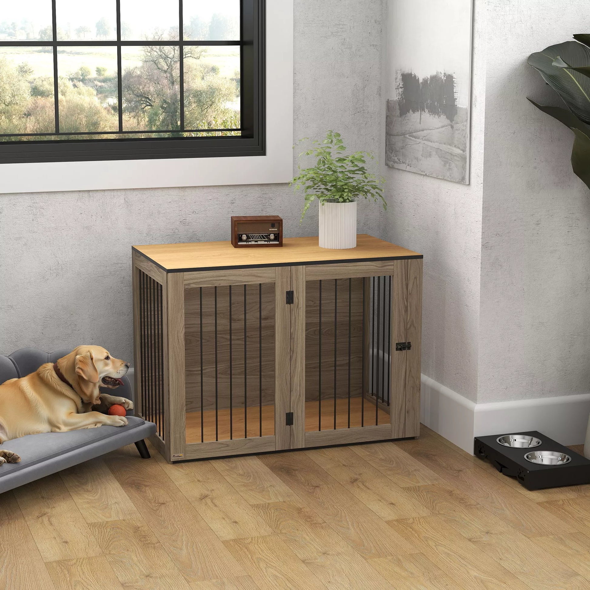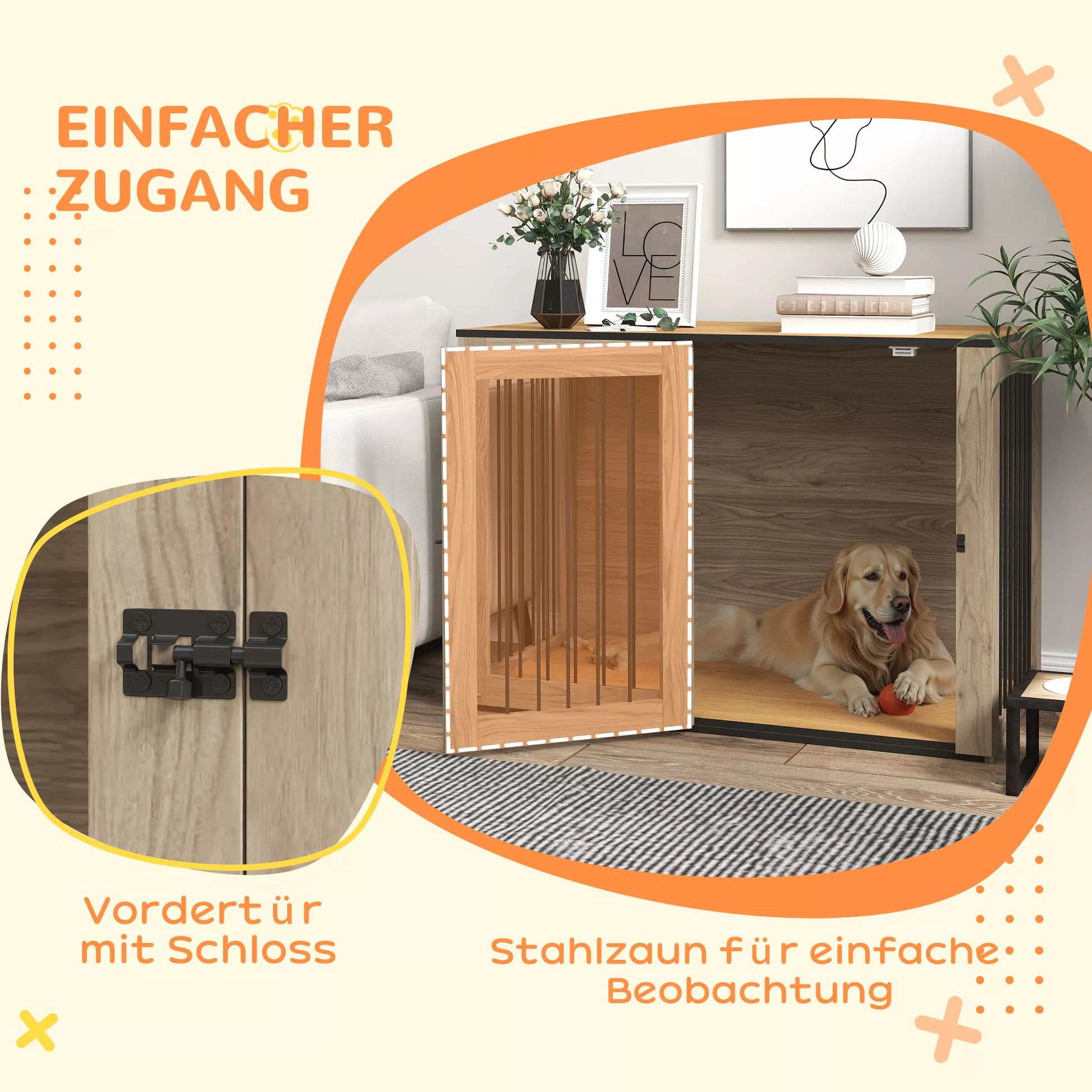 Šunų dėžė, naminių gyvūnų dėžė dideliems šunims, šunų būda, vidaus, 106 x 60 x 76 cm, ąžuolas