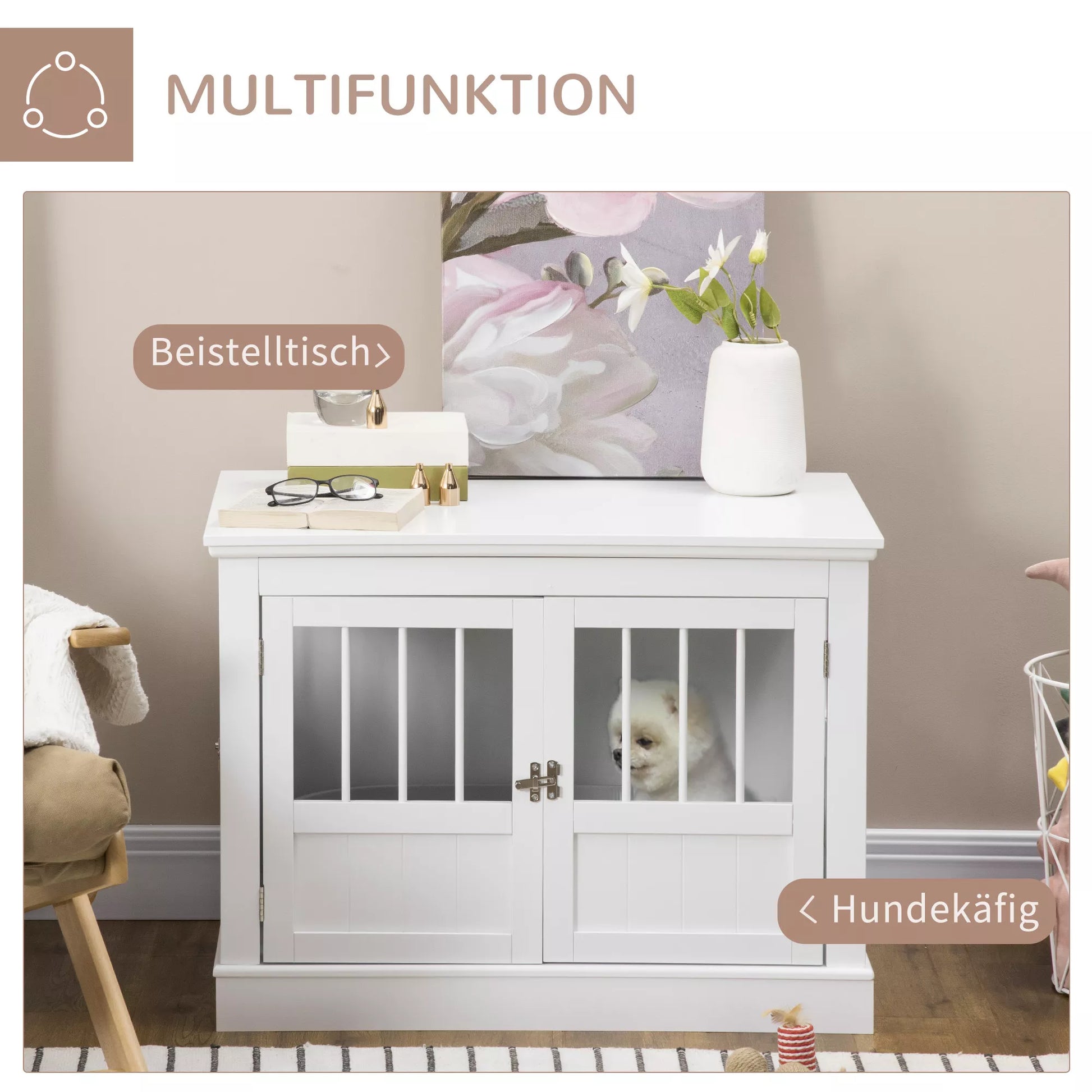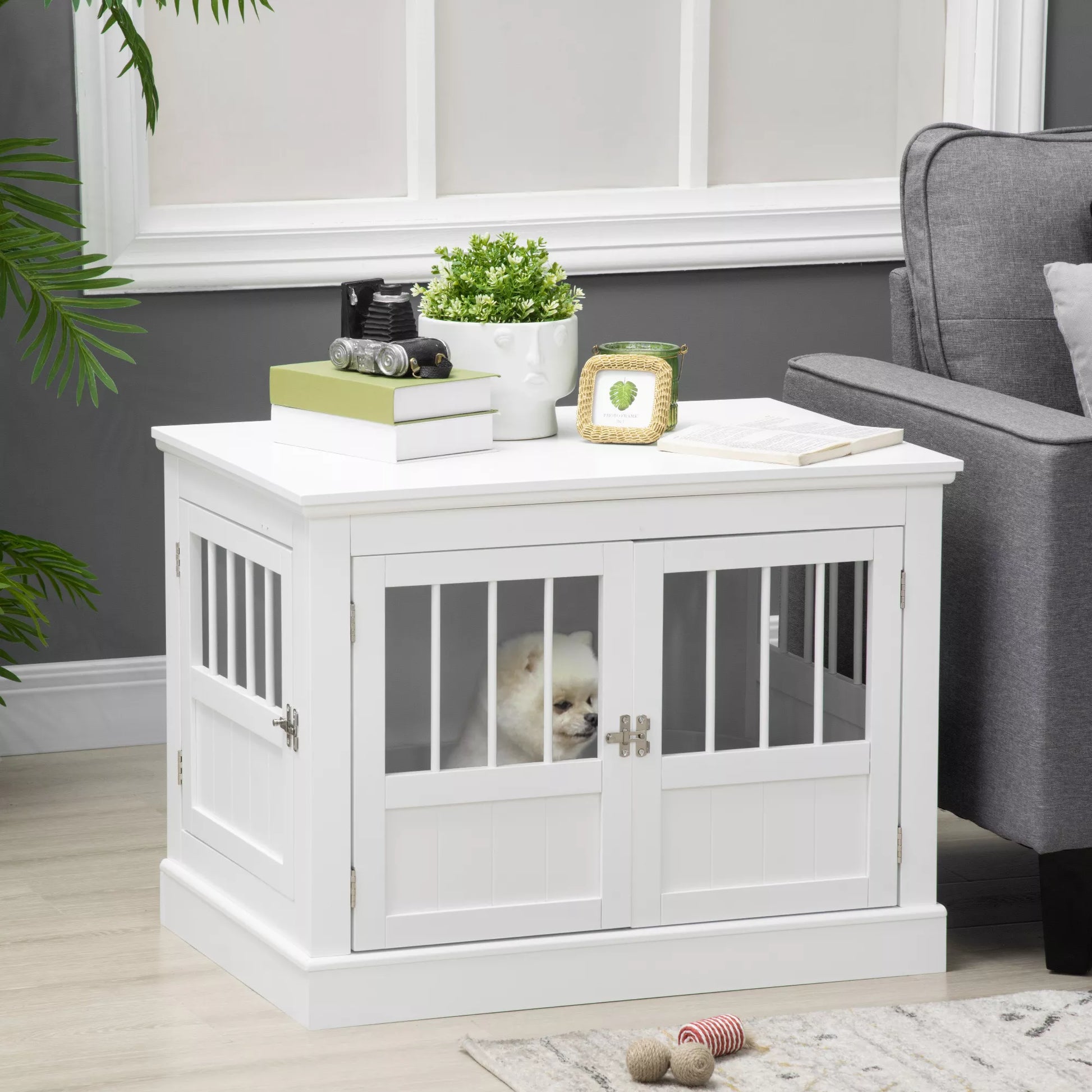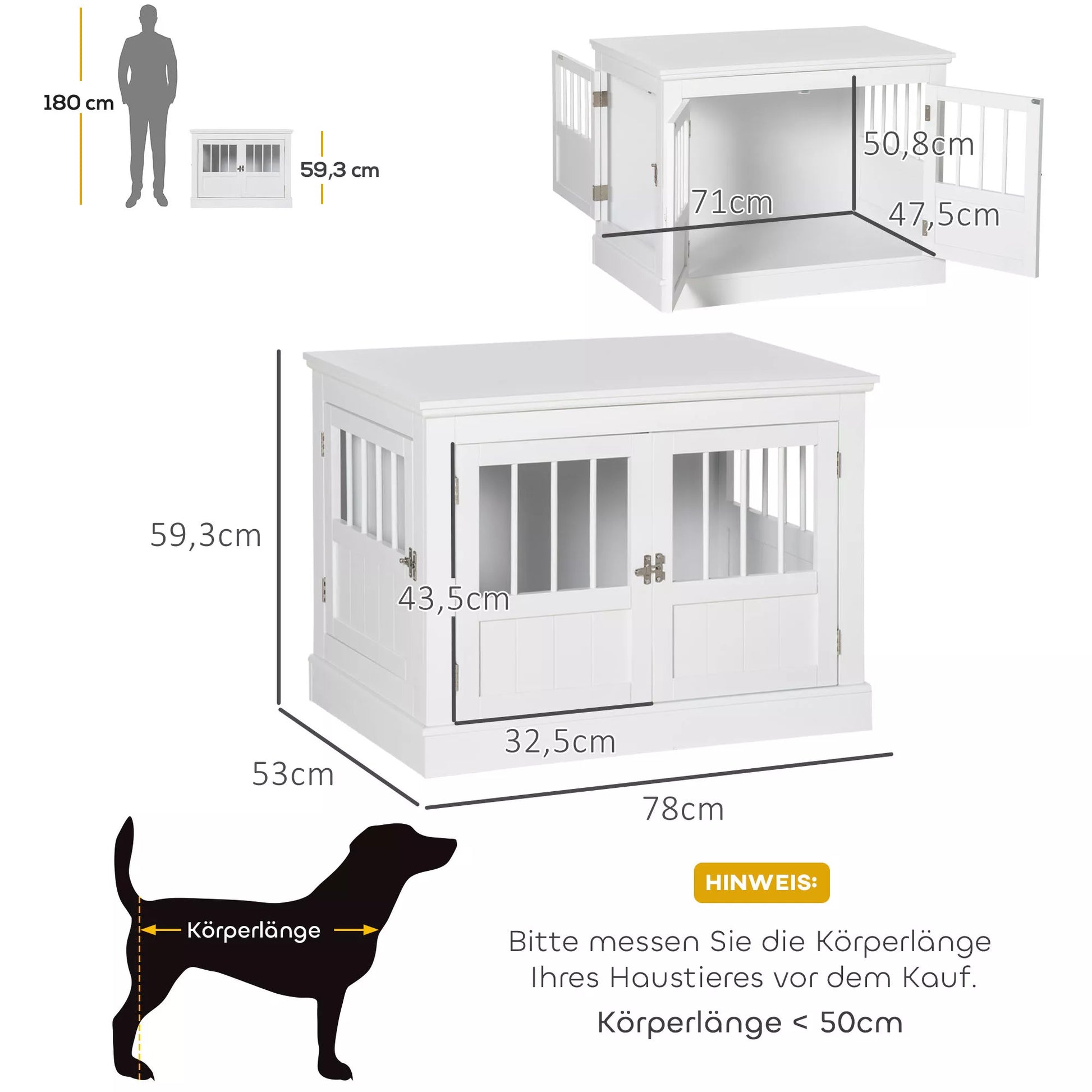 Šunų narvas, baldas su 3 durelėmis, šunų namelis, dėžė namams, 78 x 53 x 59,3 cm, Baltas