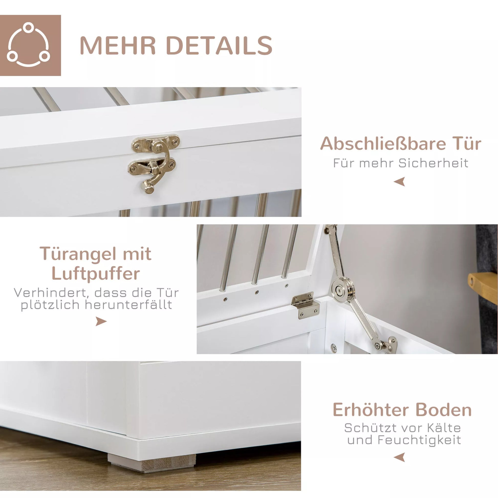 Ši moderni šunų būda suteikia jūsų šuniui saugią ir apsaugotą poilsio vietą. Pagaminta iš plieno ir MDF, ši būda tinka vidutinio dydžio šunims. Viršutines ir šonines duris galima užrakinti, jas galima naudoti trumpalaikiam apgyvendinimui. Modernus dizainas puikiai dera prie įvairių interjero stilių.