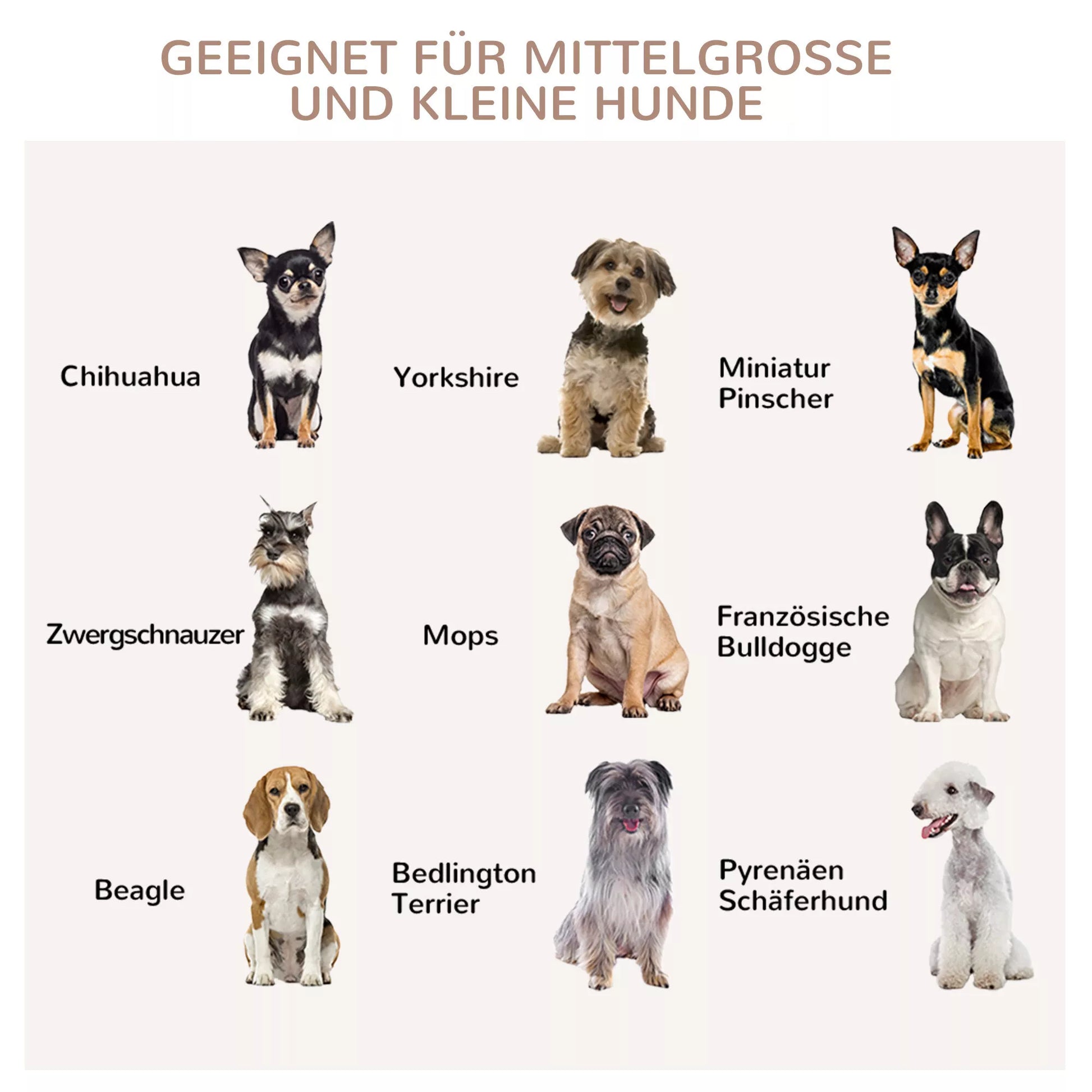 - ✔ Tinka vidutinio dydžio šunims iki 20 kg, rekomenduojama, kad šuo būtų trumpesnis nei 50 cm