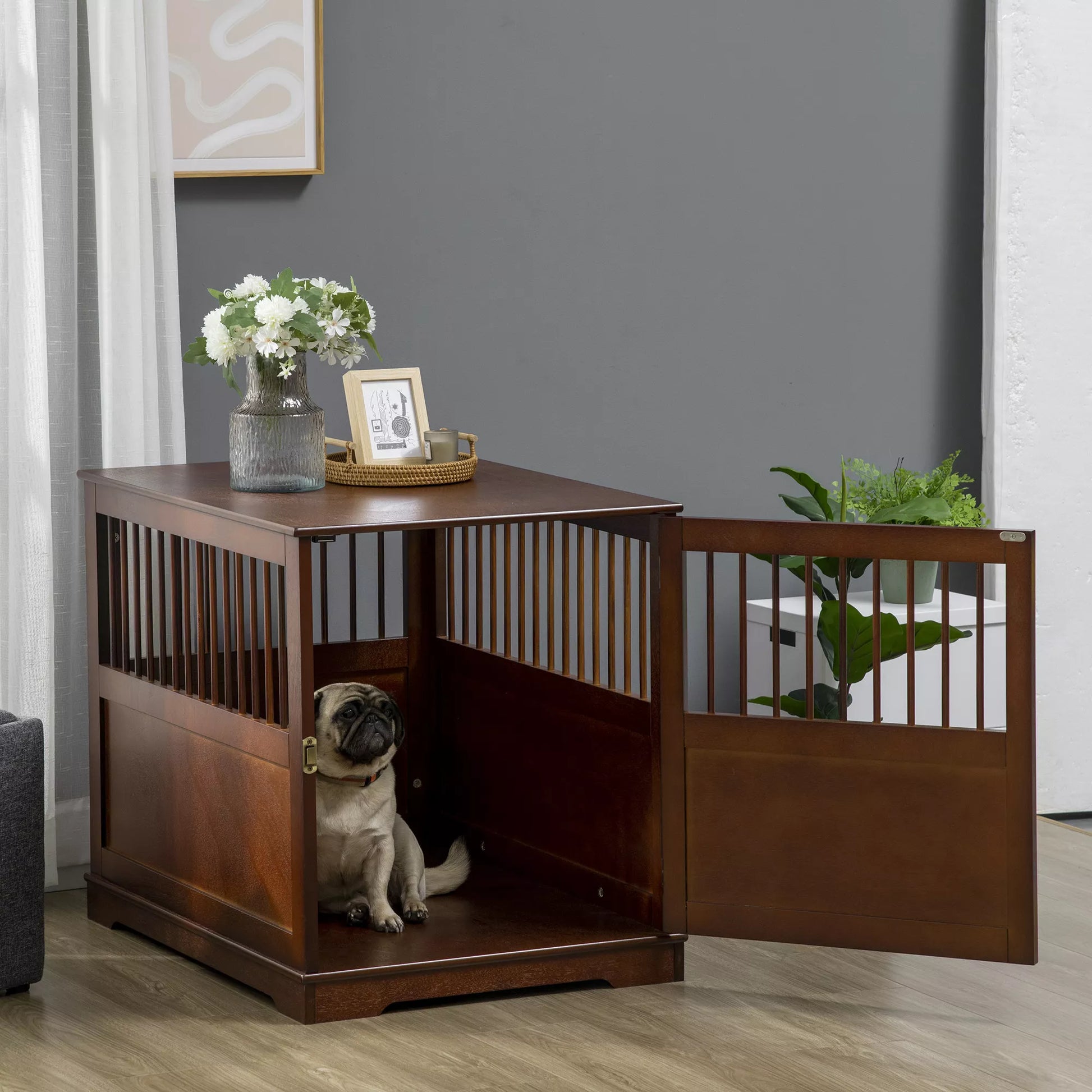 Saugus šunų narvas. Taip jūsų šuo turės patogią ir saugią vietą poilsiui. Priekyje esančios durys yra lengvai pasiekiamos ir užrakinamos – grotelės užtikrina saugumą ir suteikia 360° matomumą, kad galėtumėte viską stebėti. Tvirtas dizainas išliks nepakitęs ilgus metus, jei šią išskirtinę šunų būdą integruosite į savo namus.