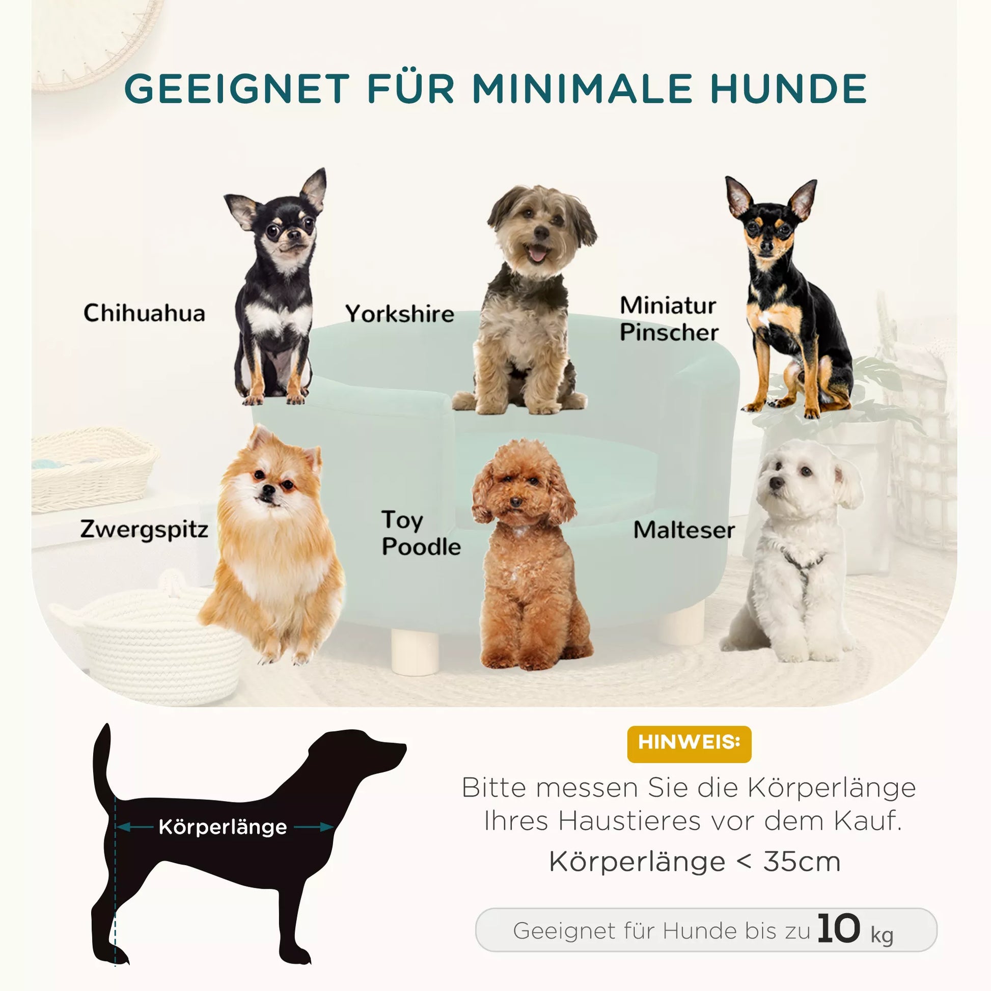 Šunų sofa, šunų kušetė, su skalbiamu užvalkalu, gyvūnėlių sofa su atlošu ir medinėmis kojelėmis, kačių sofa, mažiems šunims iki 4,5 kg, žalia