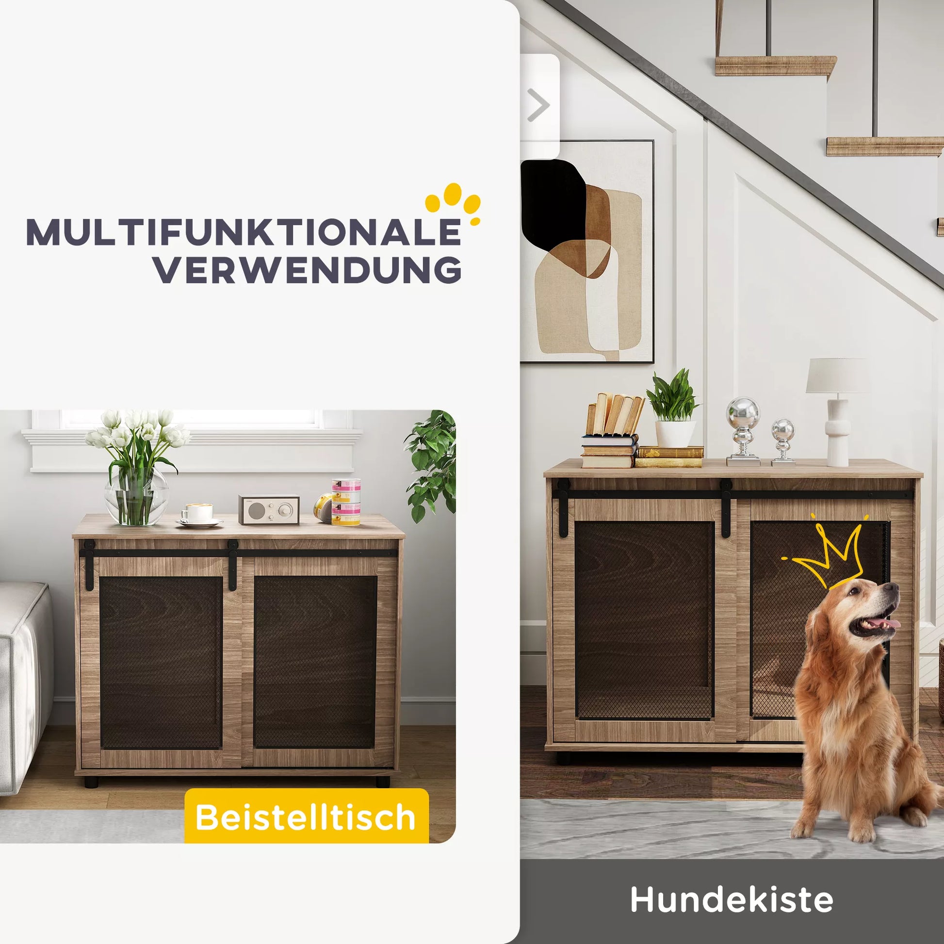 Patirkite namų šunų narvo privalumus: stilingas ir saugus. Viršutinis šunų narvo atidarymas palengvina jūsų šuns nuraminimą kelionės metu, o kelios angos su saugiais užraktais ir vėdinimu iš trijų pusių užtikrina komfortą ir gerą prieinamumą. Idealiai tinka dideliems šunims kaip poilsio vieta namuose arba kaip transportavimo dėžė kelionėse.