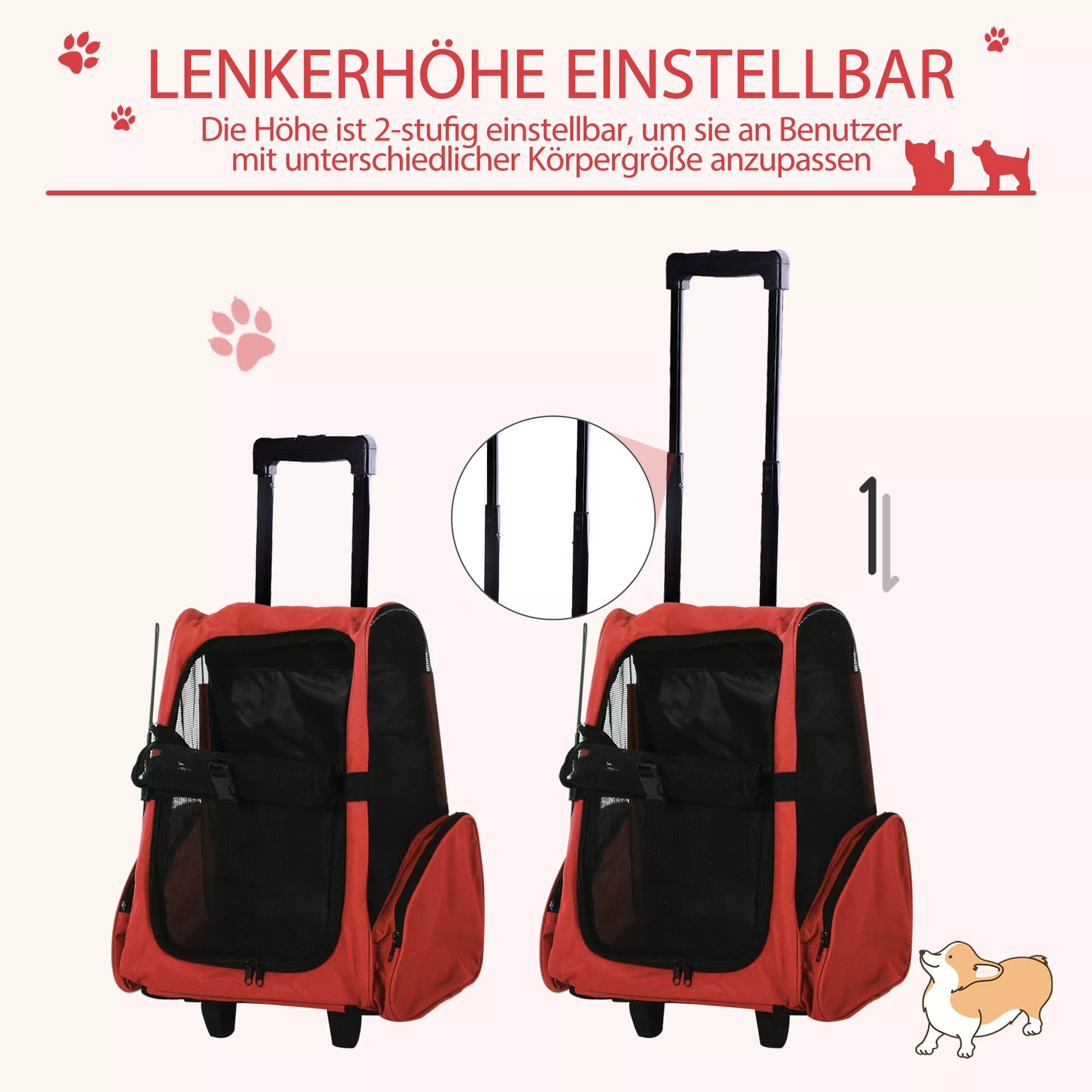 Pawhut Šunų transportavimo krepšys, Gyvūnų kuprinė, 2-in-1 dizainas, ištraukiama rankena, šoninės kišenės, Raudona, 42 x 25 x 55cm