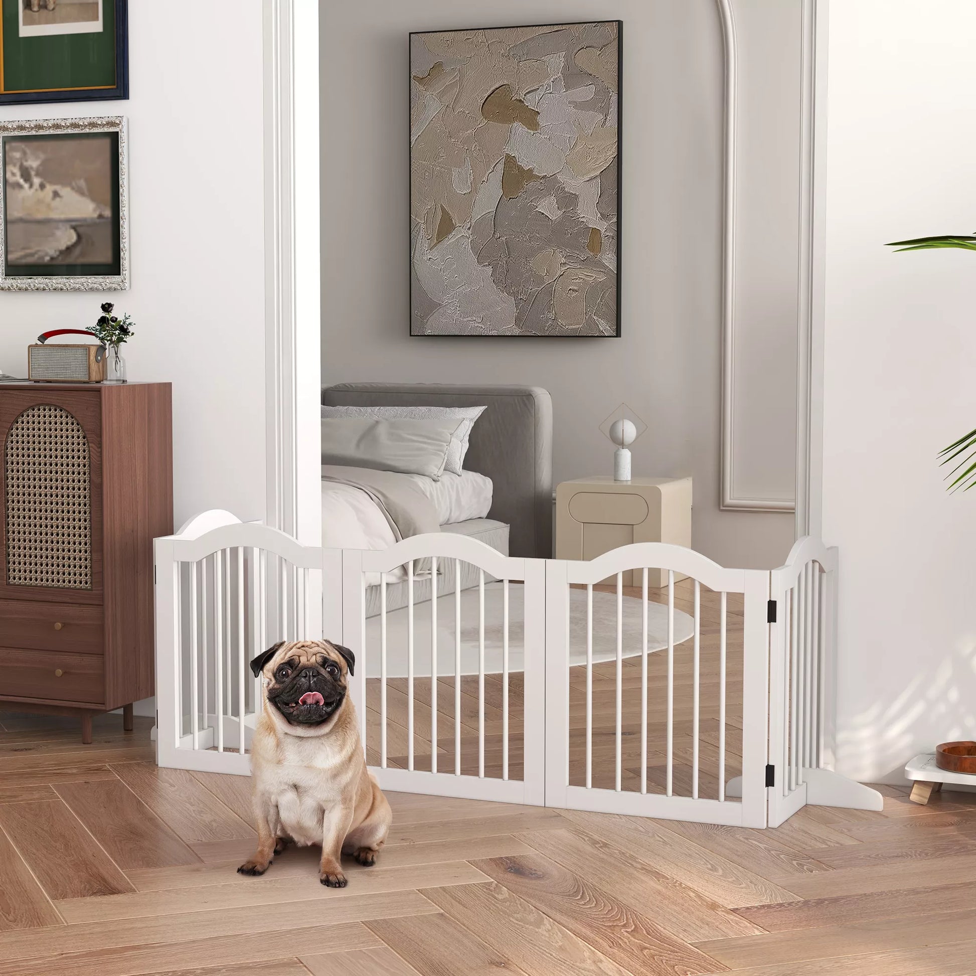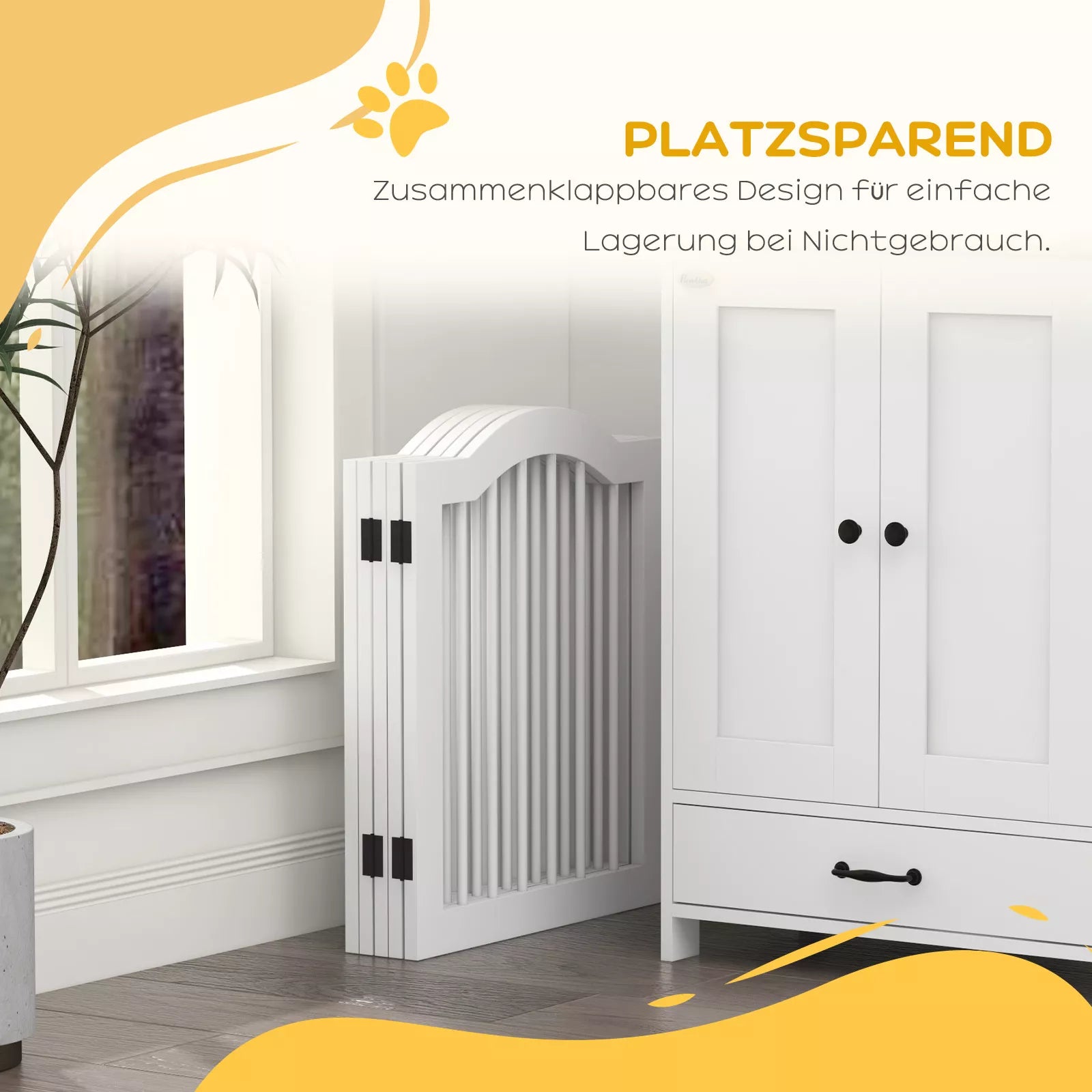 Sulankstomi, lankstūs, 5 sekcijų šunų aptvaro varteliai, masyvmedis/MDF, 254,5x29,5x61 cm, balti