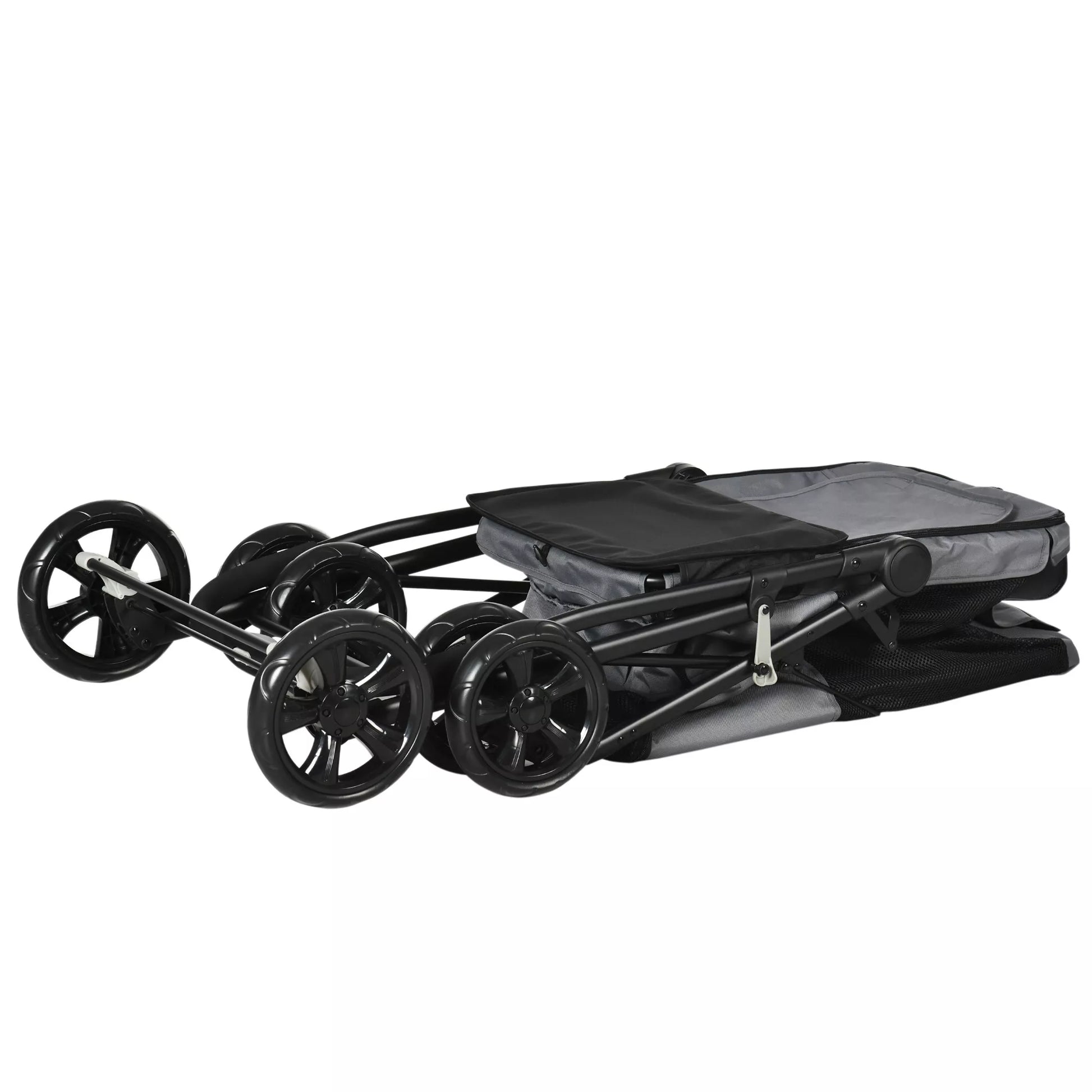 Šunų vežimėlis, sulankstomas, iki 20 kg, 3 šoninės kišenės, 102 cm x 62 cm x 105 cm, pilkos spalvos.
