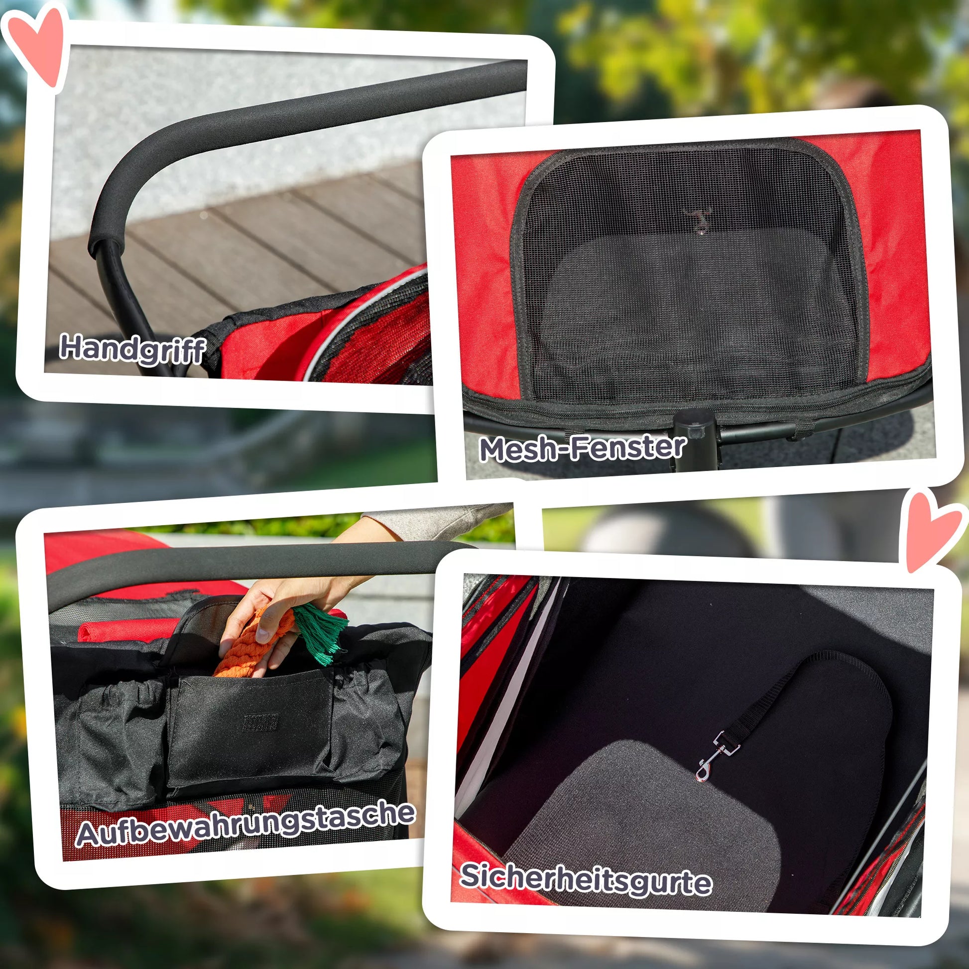 Šunų vežimėlis, sulankstomas, atidaromas, su miegojimo pagalvėle, plieninis rėmas, Raudona/Juoda