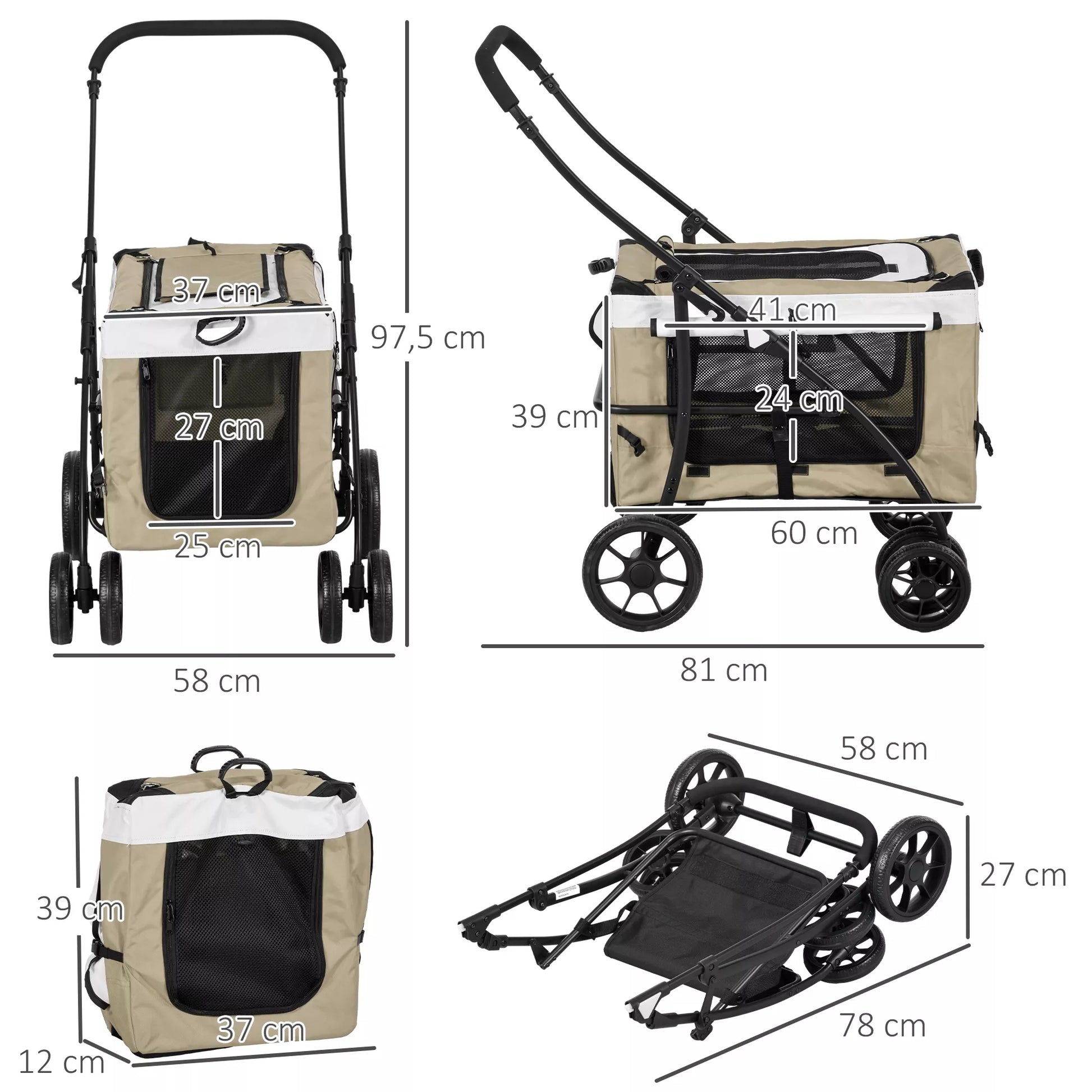 Šunų vežimėlis augintiniams, sulankstomas, su nuimamu krepšiu, 81 x 58 x 97,5 cm, juoda+chaki+balta