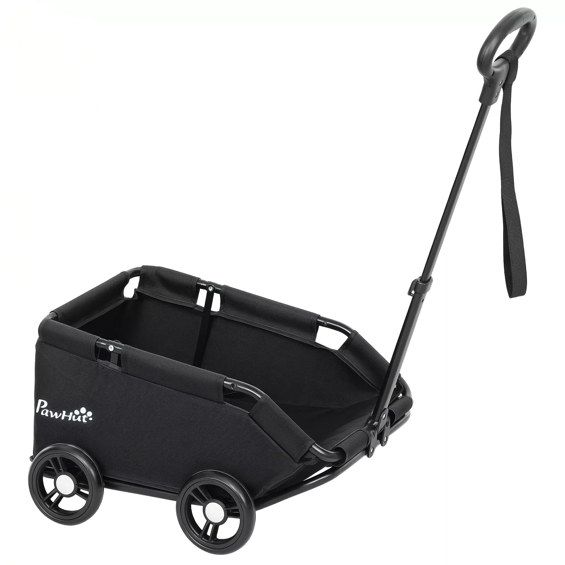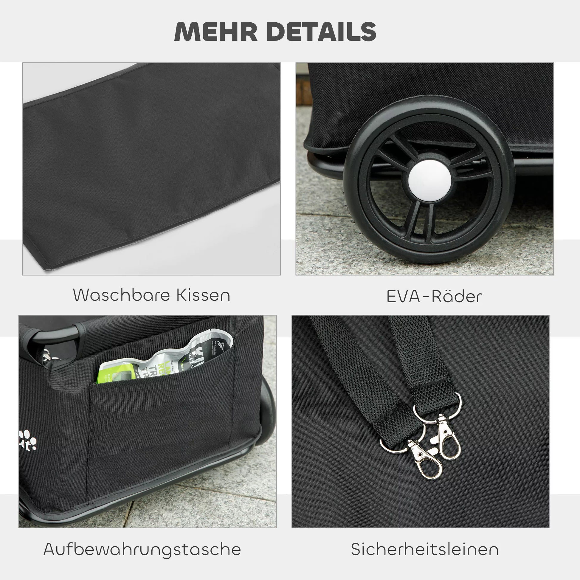 Vežimėlis šunims, sulankstomas šunų vežimėlis mažiesiems šunims iki 4 kg, sulankstomas kačių vežimėlis su rankena, plaunama pagalvėlė, saugos dirželiai, daiktadėžė, 4 ratai, juodas