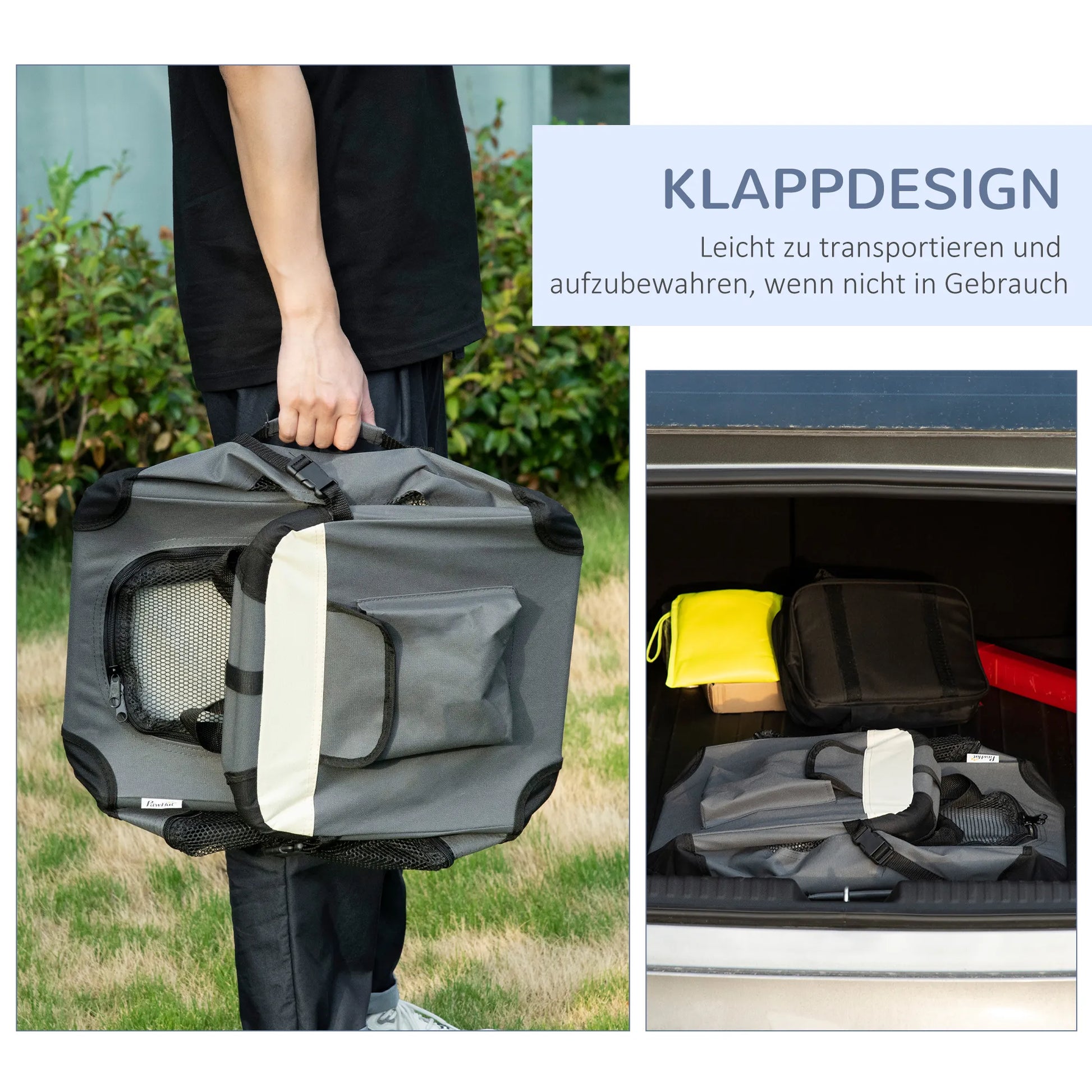 Transportavimo krepšys, transportavimo dėžė, katėms ir mažiems šunims, sulankstomas, su 3 durelėmis, pilkos spalvos, 50,5 x 33,5 x 35 cm