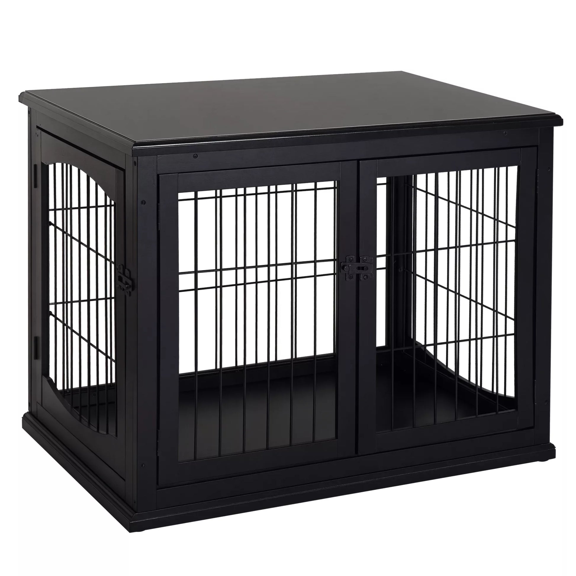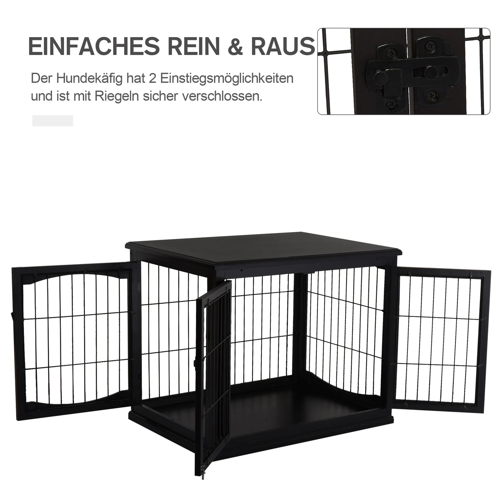 - ✔ Modernus šunų narvo dizainas: juodi užraktai ir arkos formos langai šoninėse sienelėse