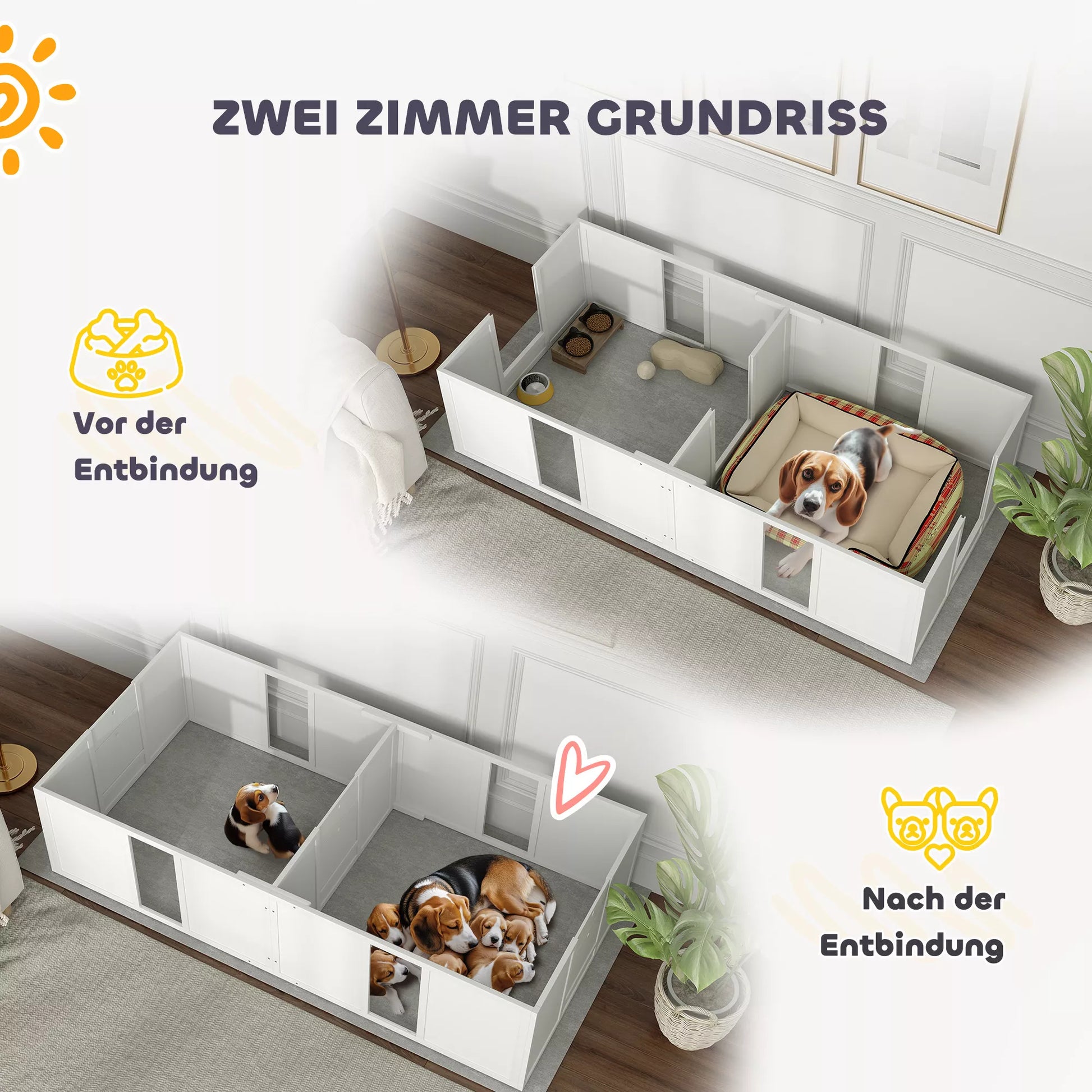 - ✔ Lengvas surinkimas su dviejų zonų išdėstymu atskiria motiną nuo šuniukų
