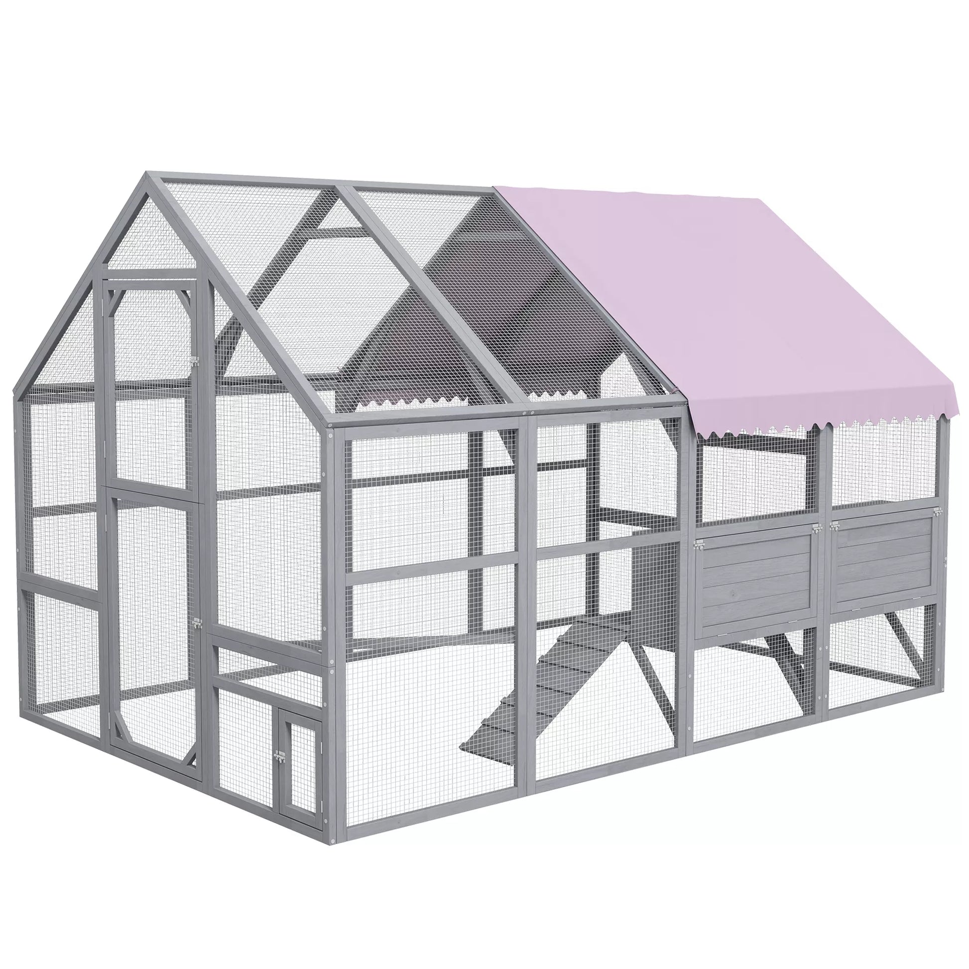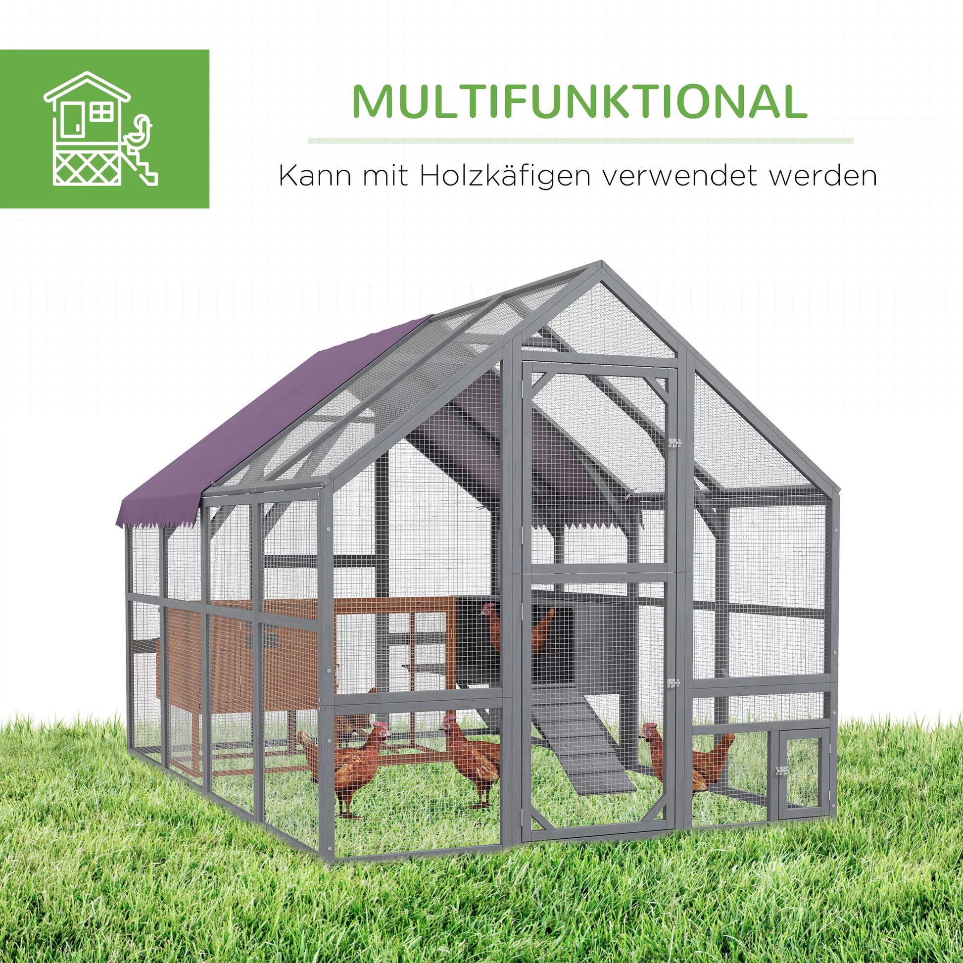 Vištidės aptvaras suteikia erdvią erdvę 8–12 vištoms ir leidžia joms laisvai judėti. Uždarotas dizainas užtikrina pavėsį ir apsaugą nuo lietaus, o atsparios oro sąlygoms medžiagos garantuoja gyvūnų ir aplinkos gerovę. Su inkilėliu lauko voljeras taip pat siūlo praktišką vietą kiaušiniams laikyti. Didelės priekinės ir mažos įėjimo durys leidžia lengvai patekti jums ir jūsų gyvūnams.
