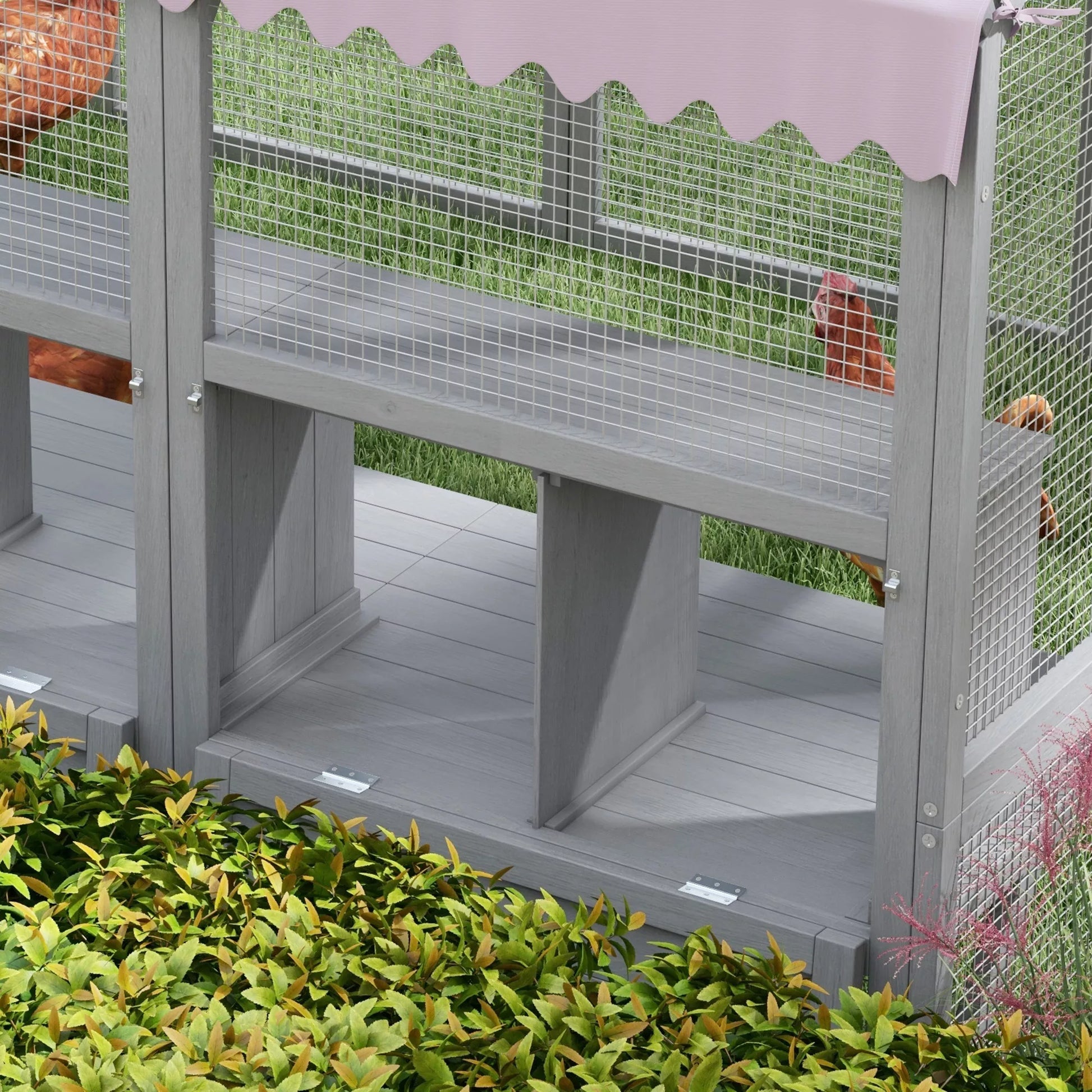Vištidė Vištų namelis Vištų būdelė, sueigiamas, atsparus oro sąlygoms, 280 x 185,5 x 188 cm, pilkas