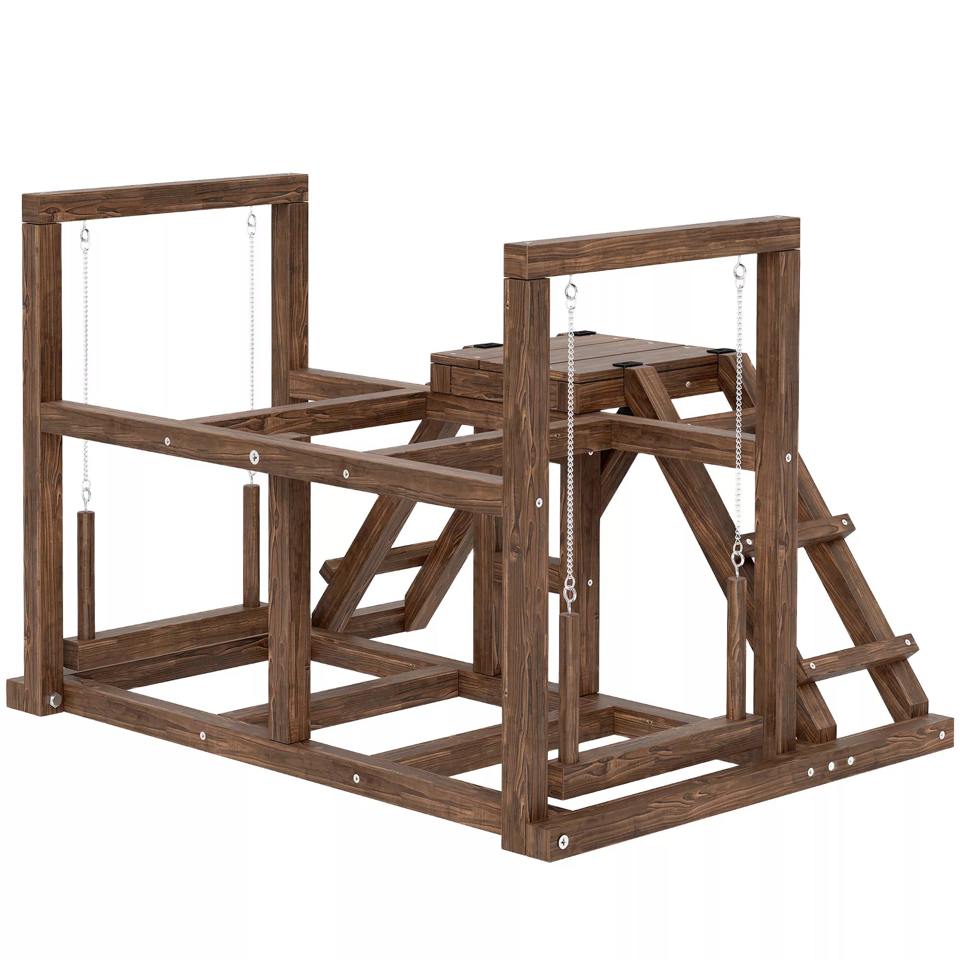 Padidinkite savo vištų gerovę su vištų aktyvumo lentyna! Ji siūlo dviejų pakopų rampos kojų mankštai, sėdėjimo vietos apžvalgai ir supynes, kurios skatina koordinaciją bei pusiausvyrą. Pagaminta iš poliruotos medienos masyvo, ji sukuria natūralią ir saugią aplinką. Idealiai tinka vištidėms, kad 2-3 paukščiai būtų užimti ir sveiki.