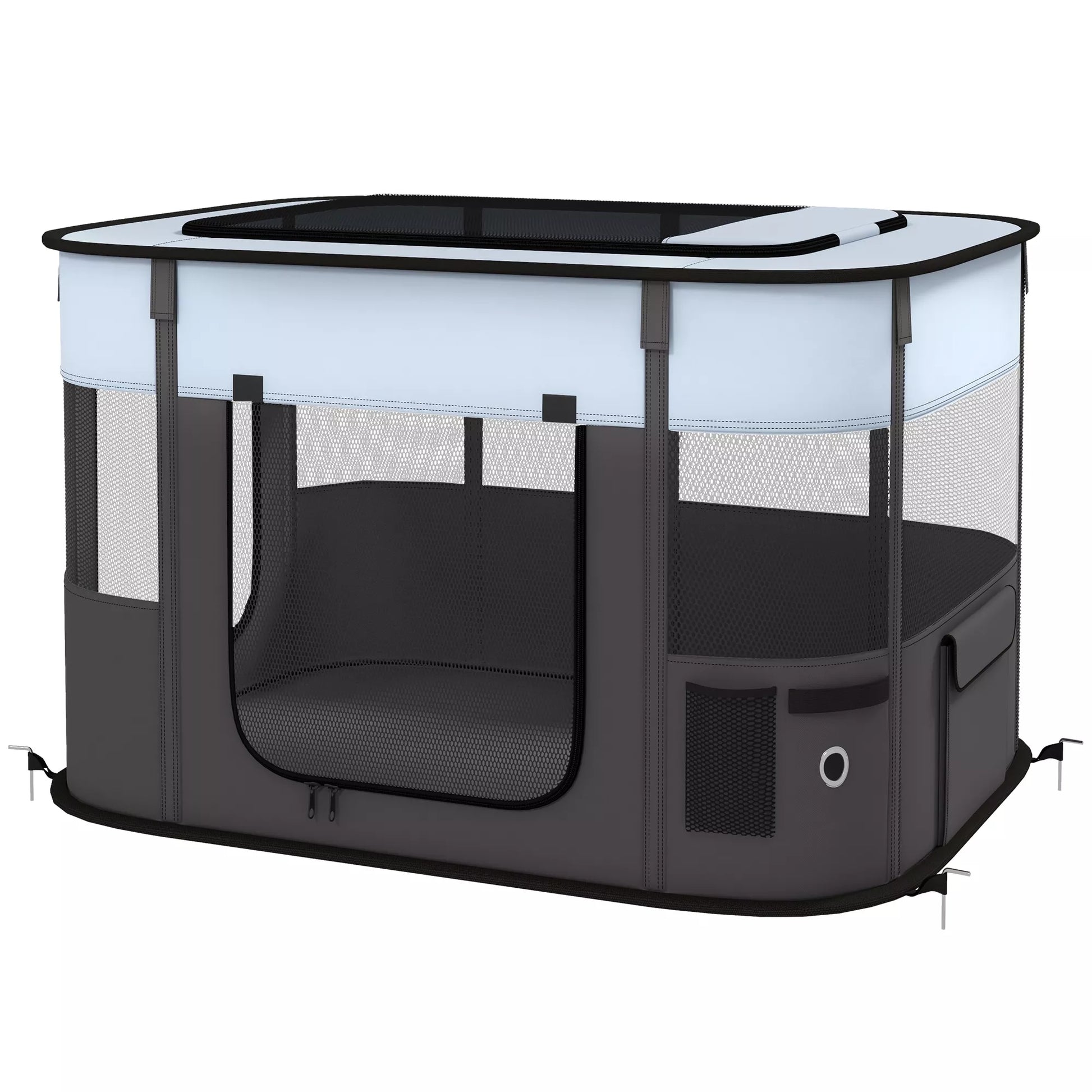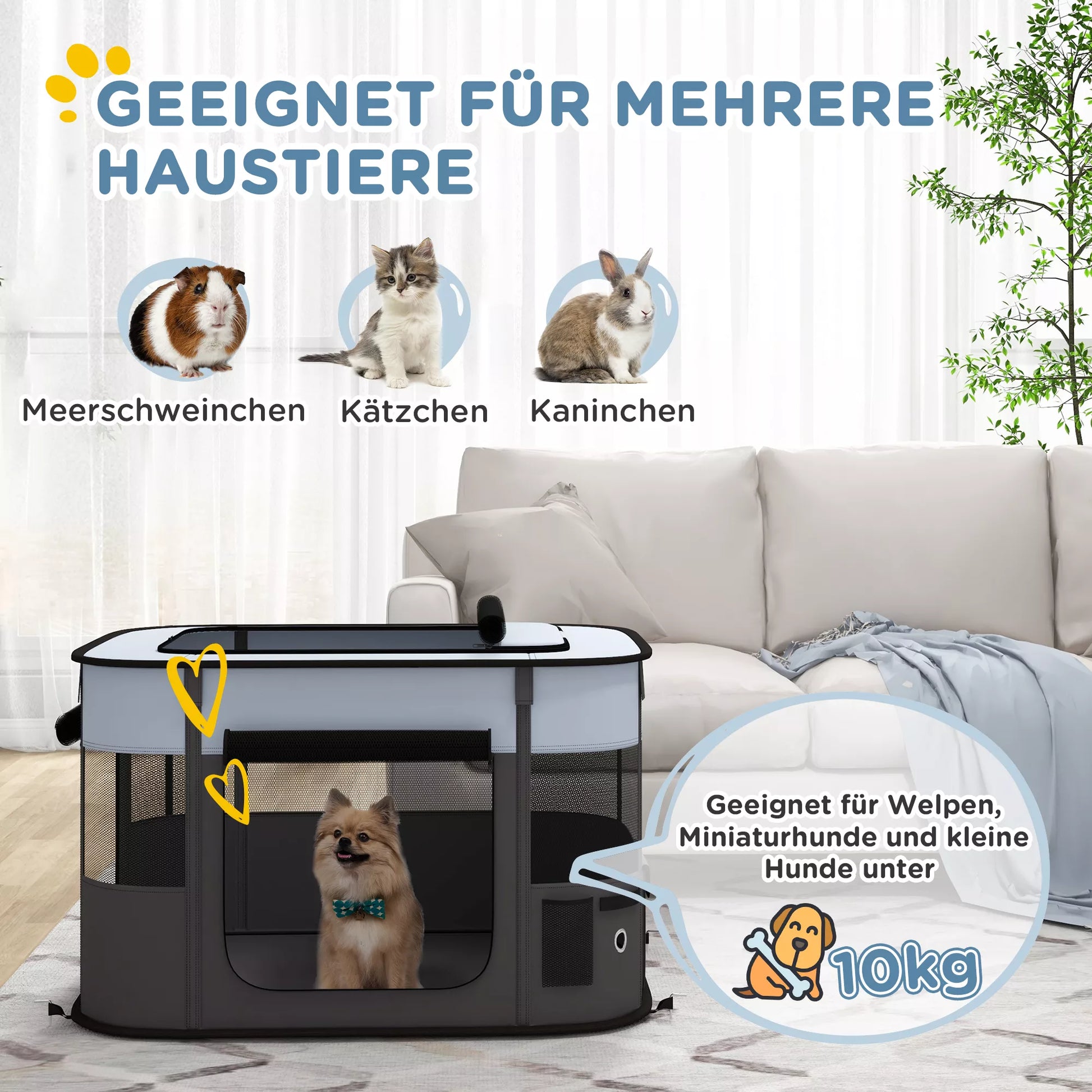 Sulankstomas žaidimų aptvaras naminiams gyvūnams su laikymo krepšiu, skirtas šuniukams ir kačiukams, naudoti lauke ir viduje, pilkos spalvos