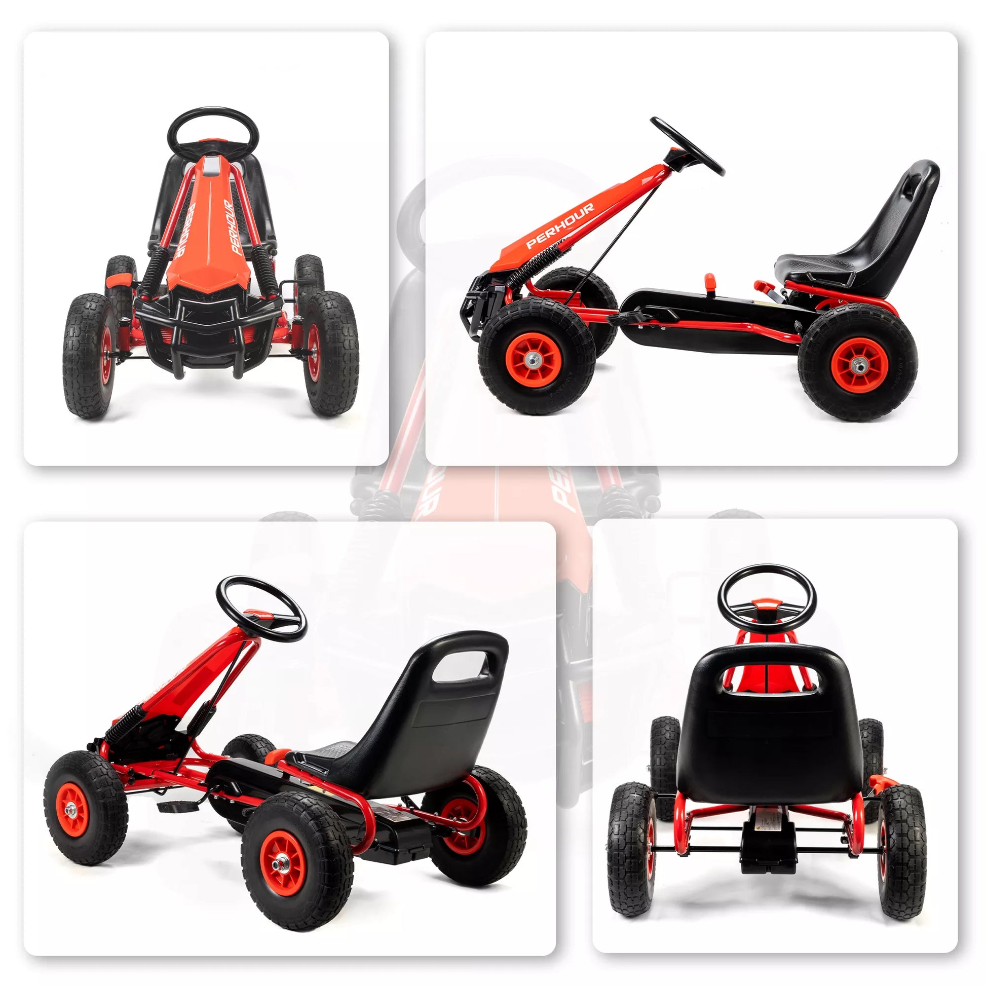 Pedalinis kartingas vaikams, reguliuojamo aukščio sėdynė, EVA ratai, stabdys, sankaba, 3-8 metai, raudonas.