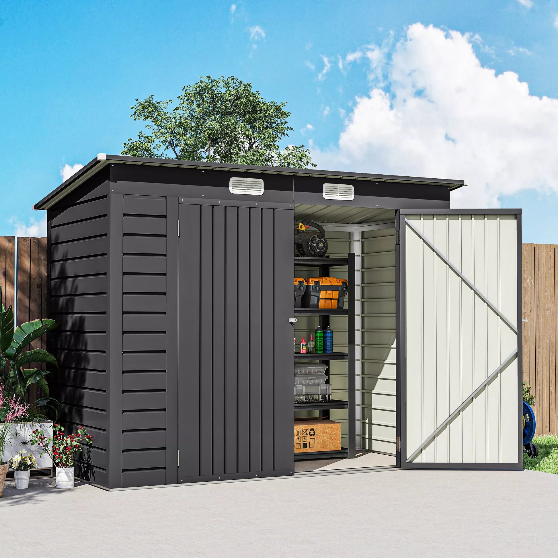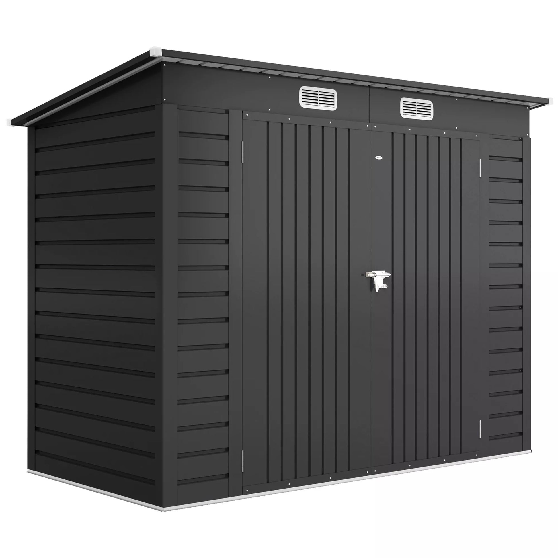 Plieninis sodo namelis, įrankių namelis, dvigubos durys, 249P x 121G x 166/183A cm, pilka