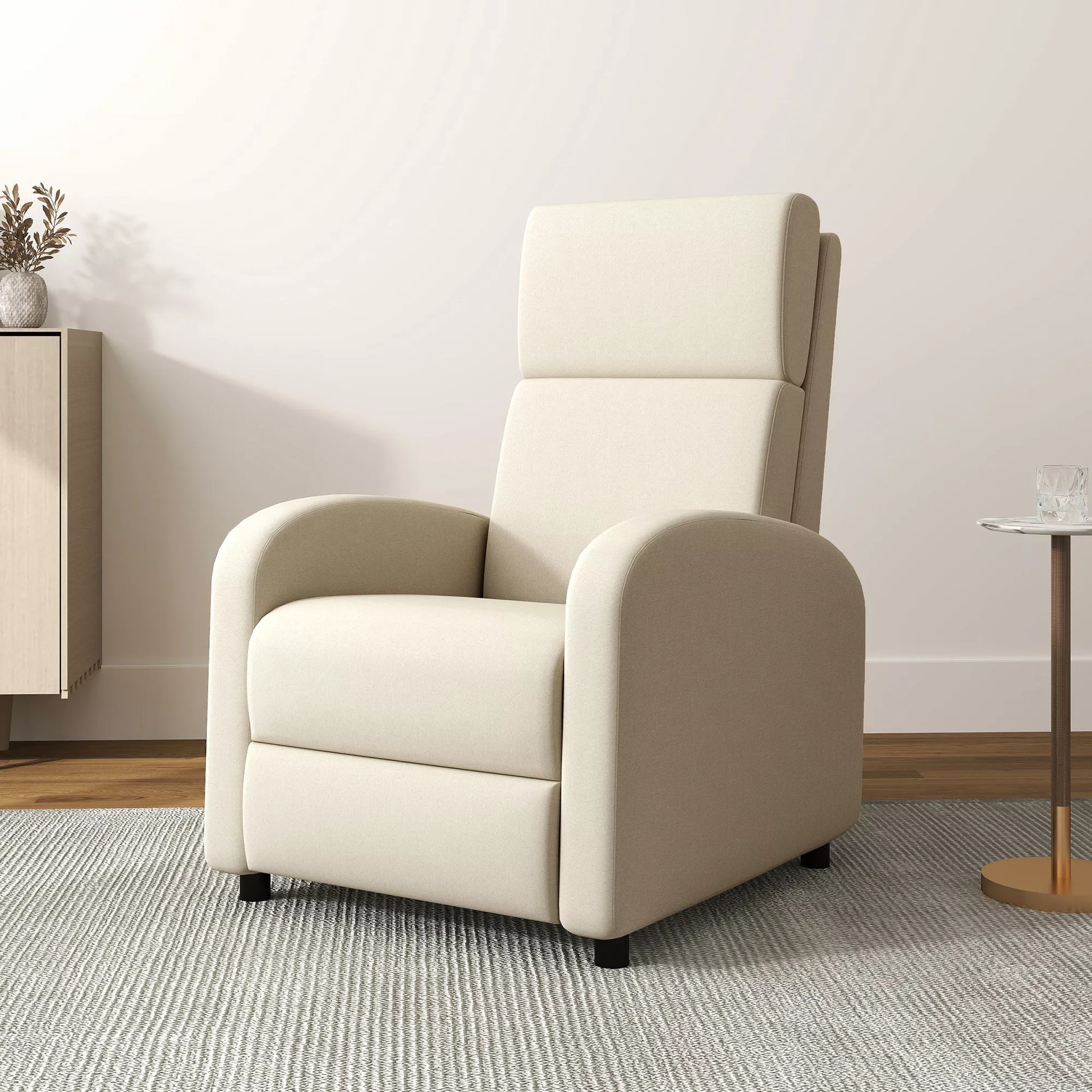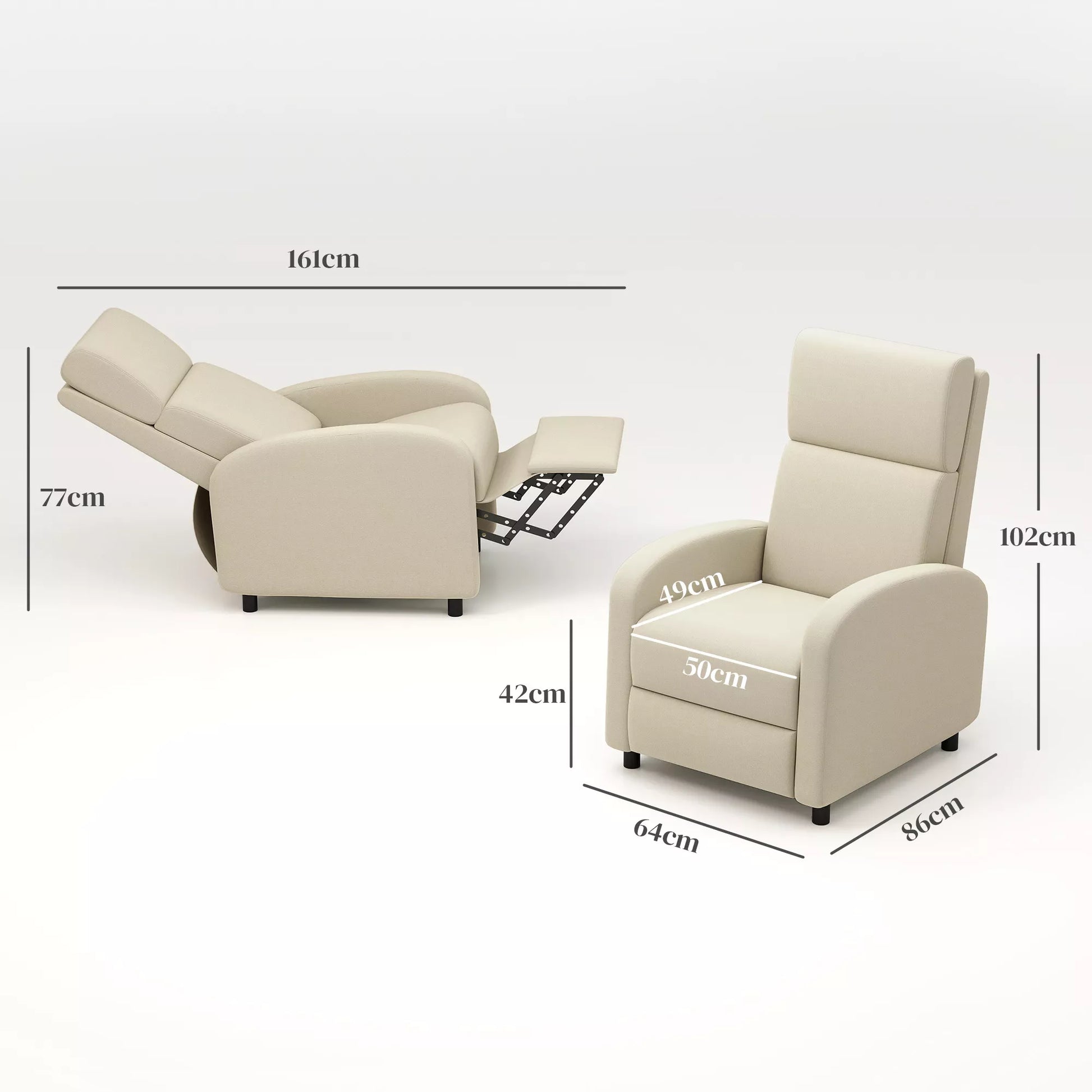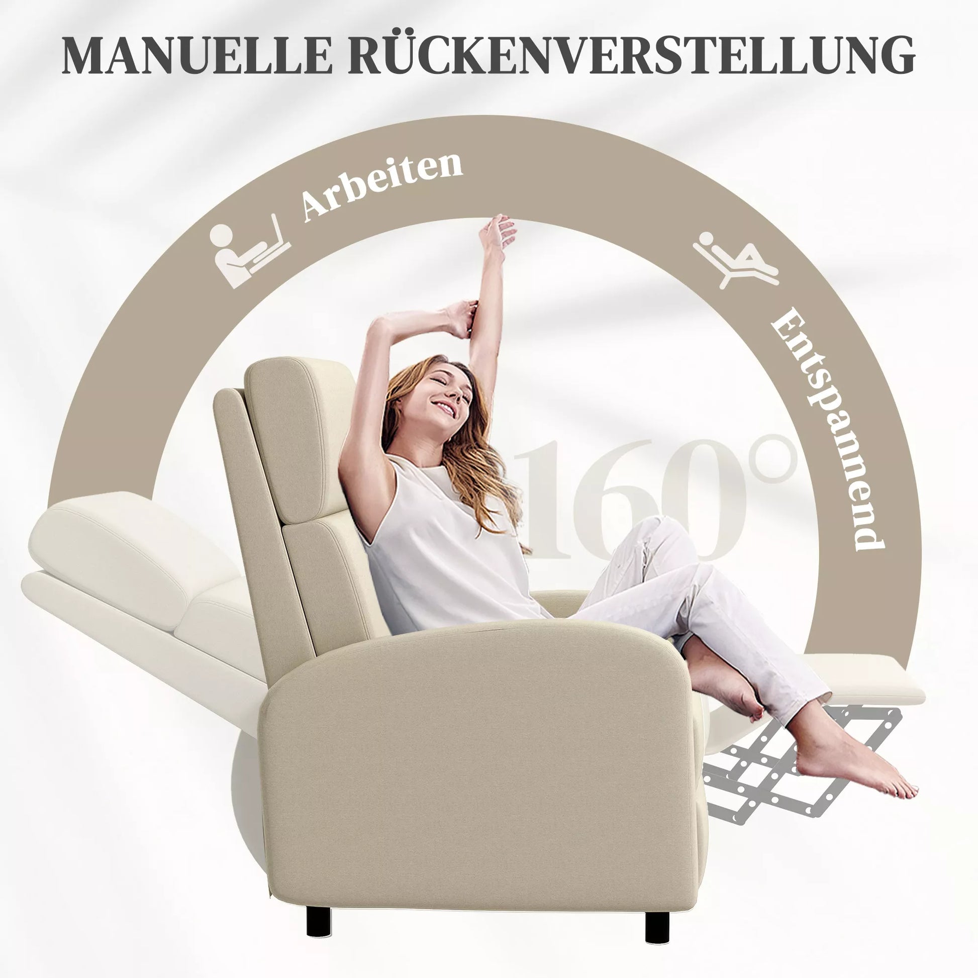 Fotelis poilsiui ir televizijai, išskleidžiama pakoja, atlošiamas iki 160°, 64 x 86 x 102 cm, kreminės spalvos