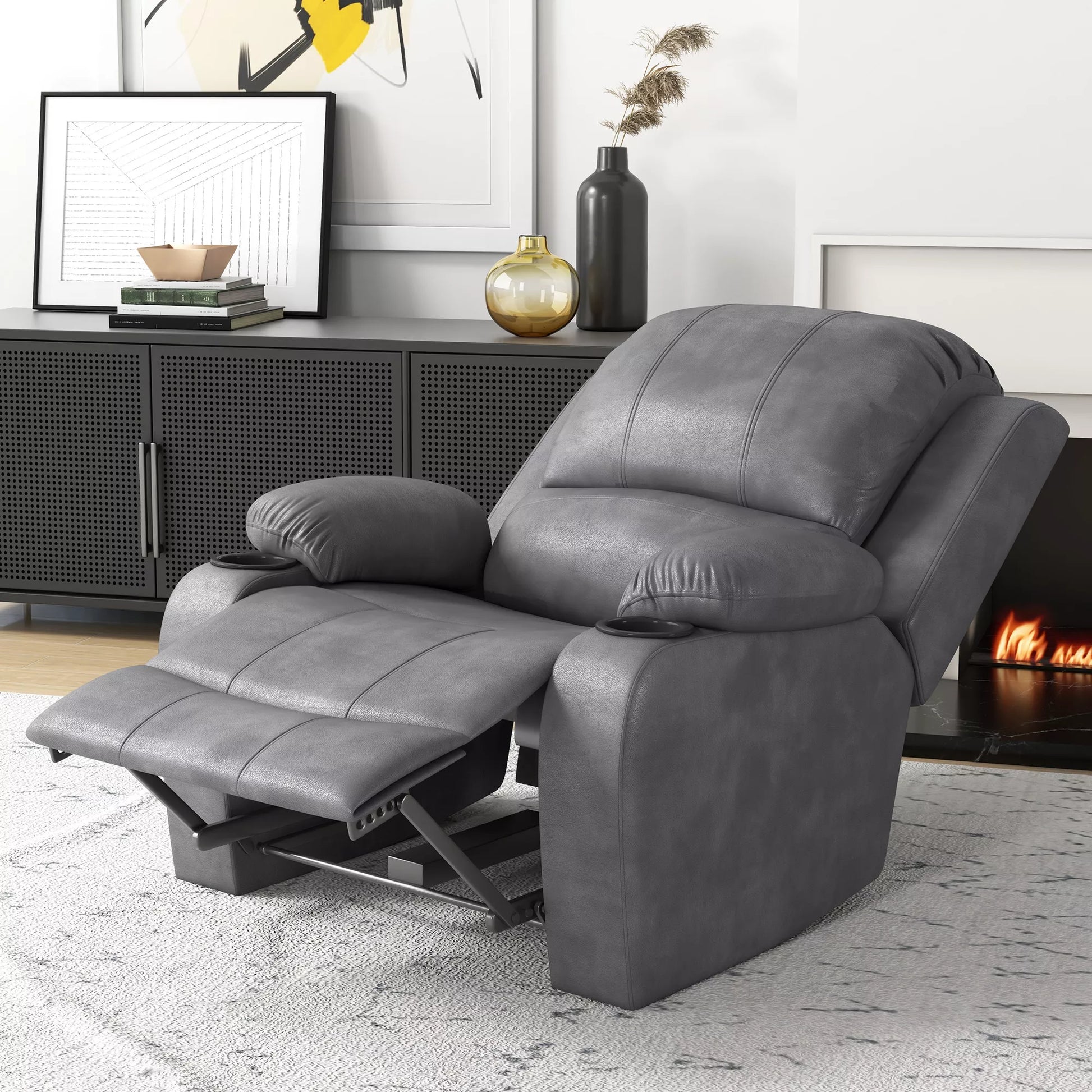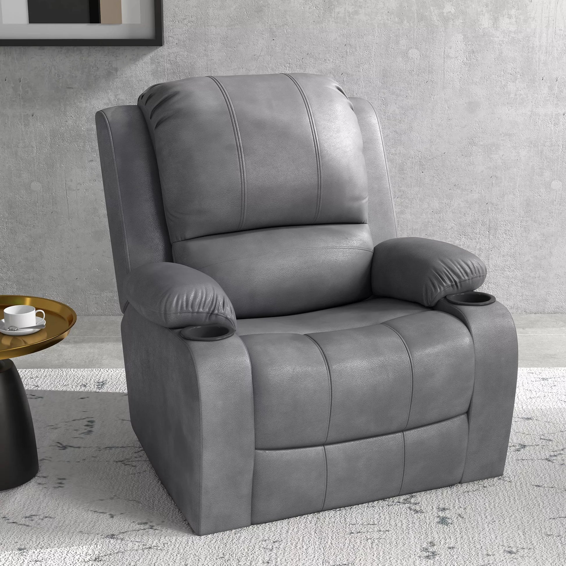 - ✔ Du patogūs gulimo krėslo puodelių laikikliai leis mėgstamą gėrimą laikyti lengvai pasiekiamą