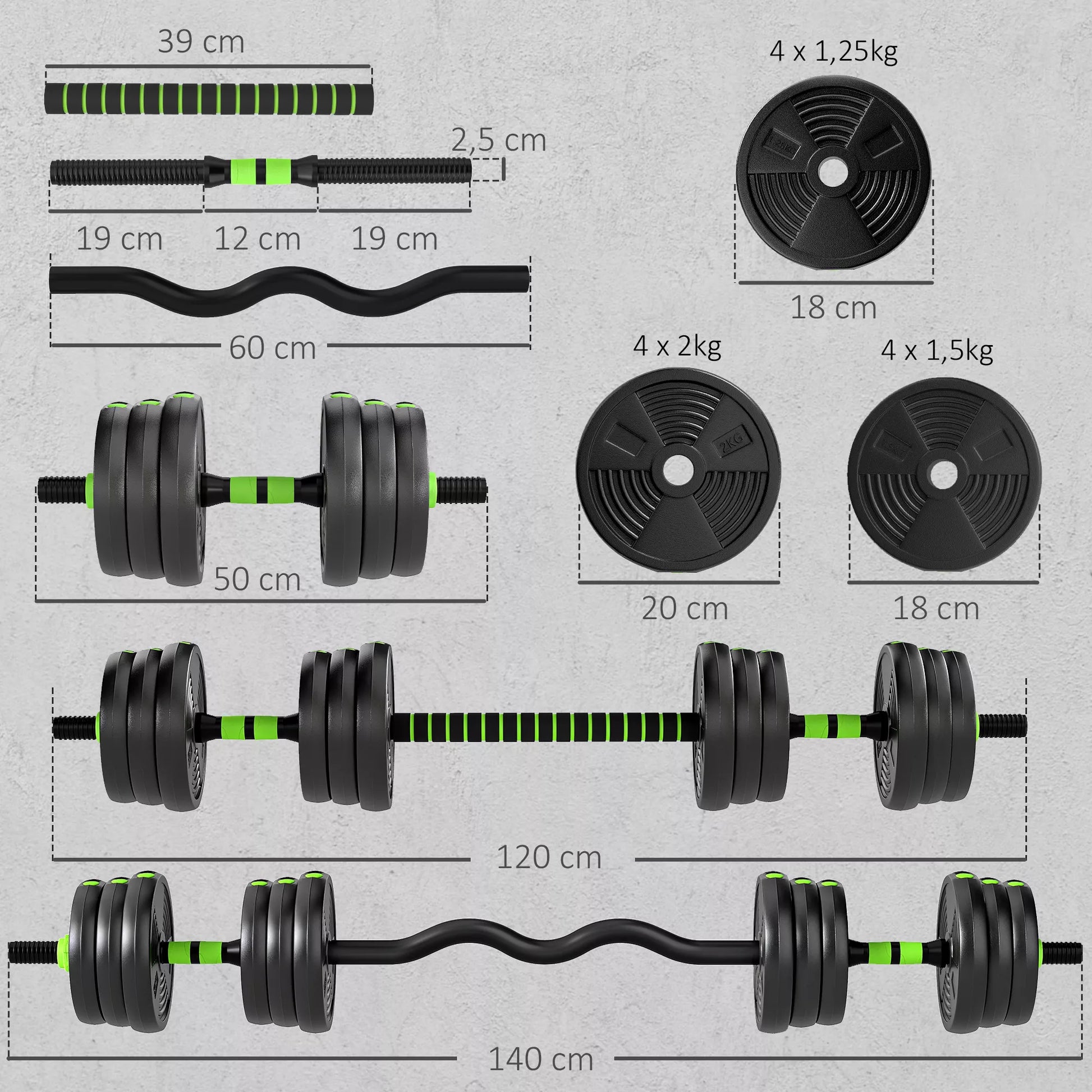 - ✔ 4 x 1,25 kg diskai
