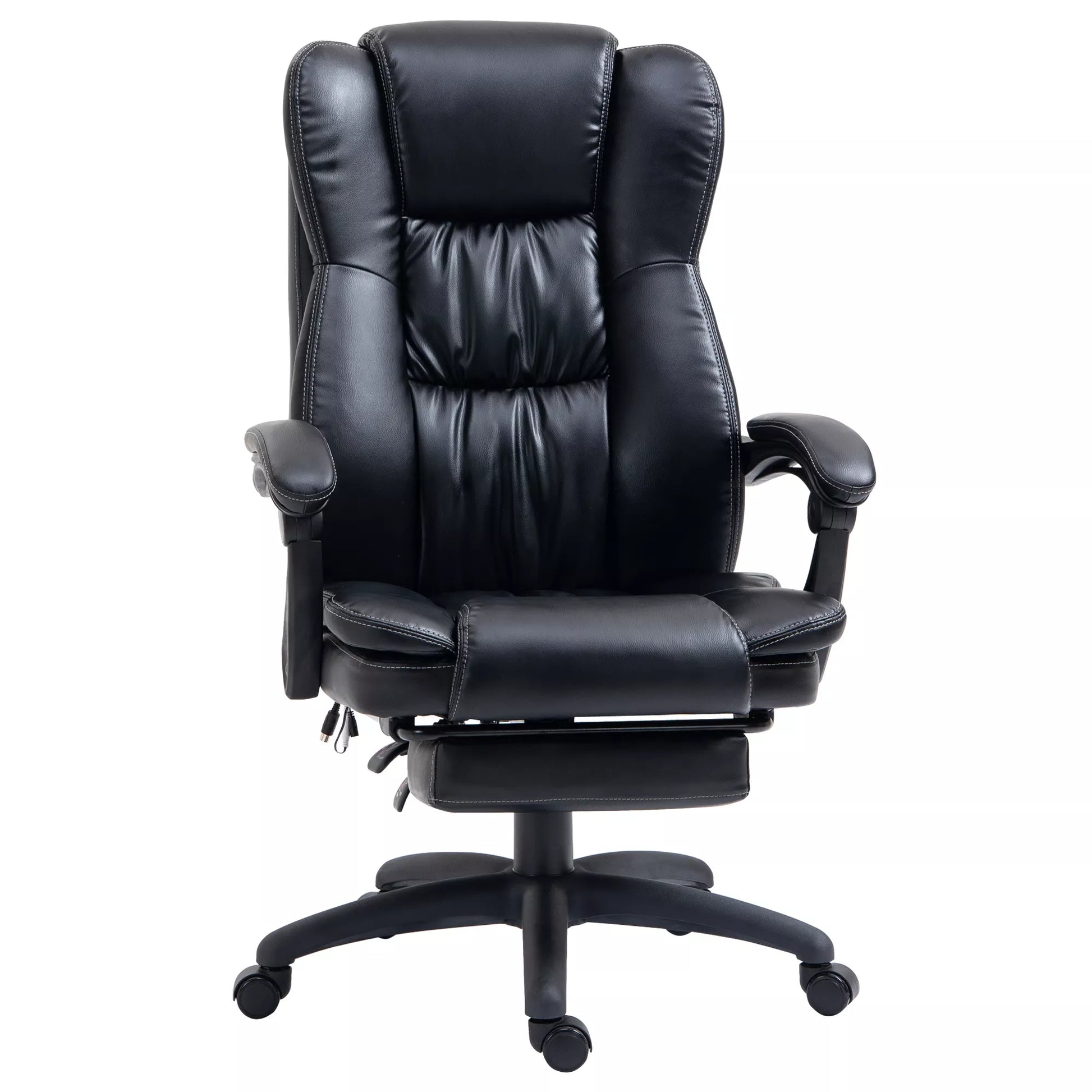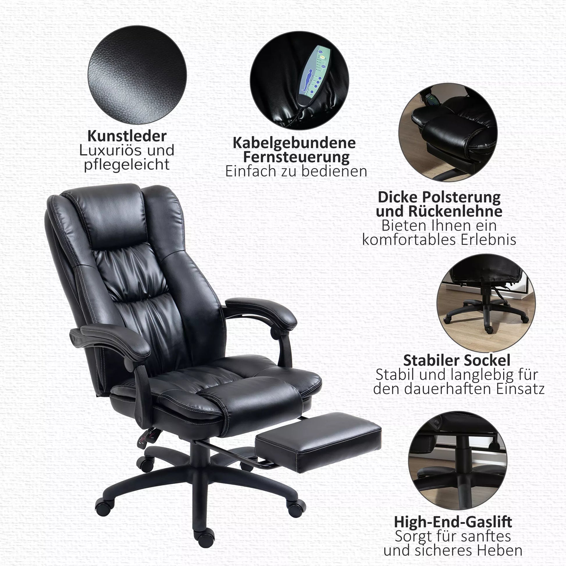 Reguliuojamas sūkamasis krėslas su kojų atrama, galvos atrama, masažo funkcija, dirbtine oda, 68,5x68,5x113-121cm, juodas