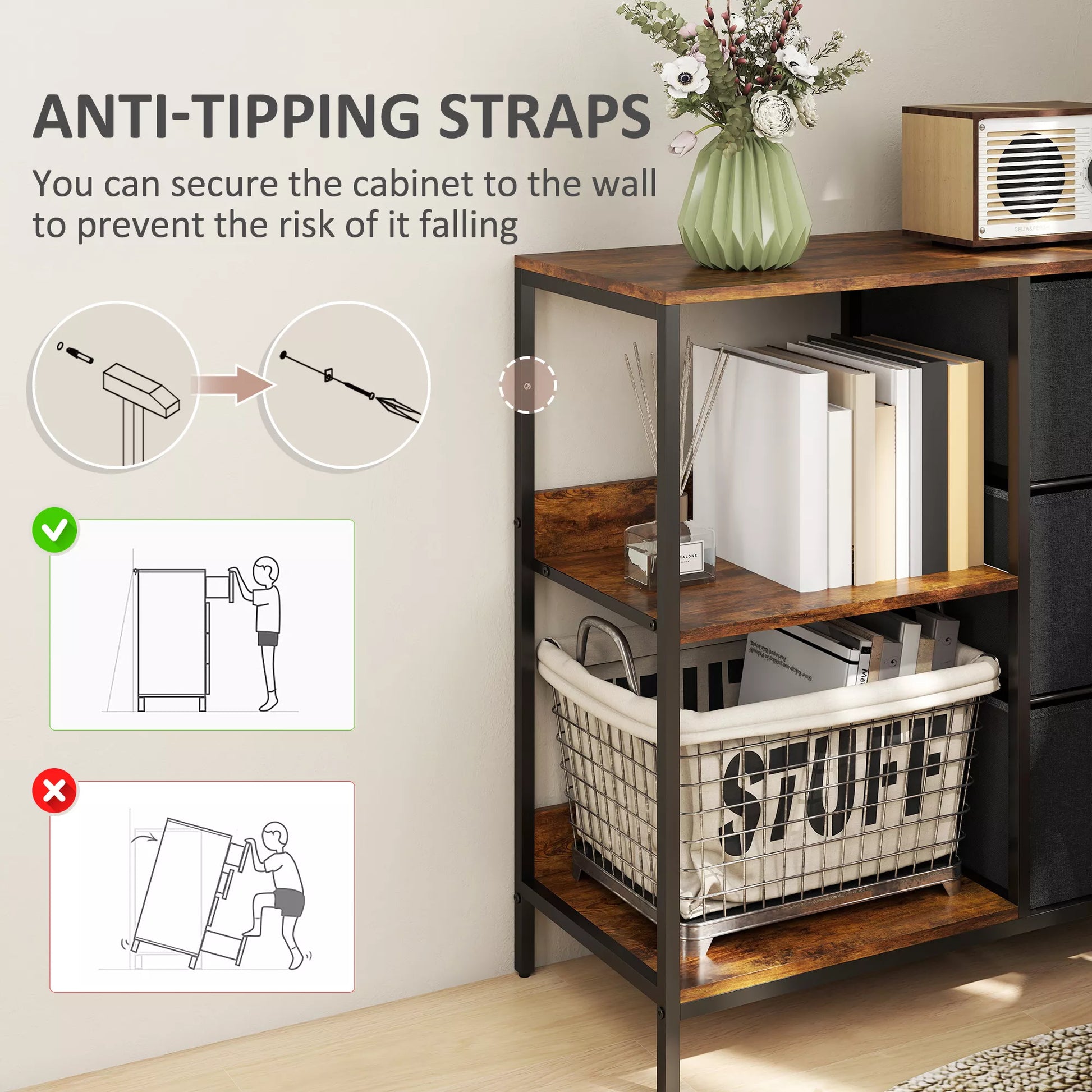 Rinkitės subtilius namų laikymo sprendimus su šia audinio stalčių spinta iš . Ji turi tris mažas stalčius diskretiškam daiktų laikymui ir lentynas, kuriose telpa įvairūs daiktai. Metalinis rėmas užtikrina stabilumą, o reguliuojamos kojelės garantuoja saugų stovėjimą bet kokiame paviršiuje. Stalčiai turi medžio imitacijos rankenėles, kurios leidžia lengvai atidaryti ir uždaryti.