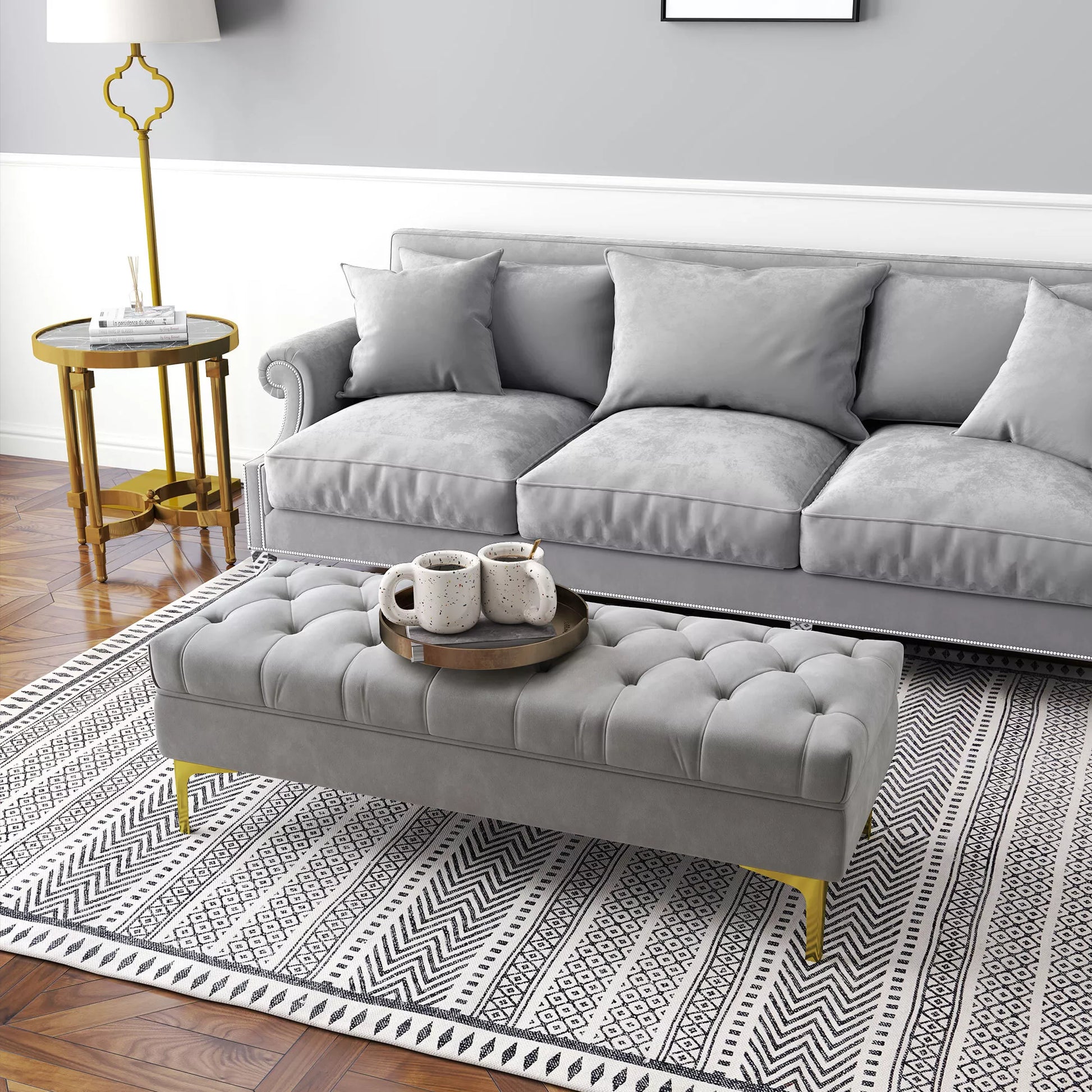 Suteikite savo namams gryno prabangos. Mūsų pufas yra idealus jūsų svetainei, miegamajam, koridoriui ir kt. Elegantiška forma ir aksomo detalės kartu su keturiomis auksinėmis kojomis paverčia šį pufą tikru traukos centru. Jis tinka kaip sėdimoji taburetė arba minkštas staliukas. Pasimėgaukite prabanga, kurios nusipelnėte.